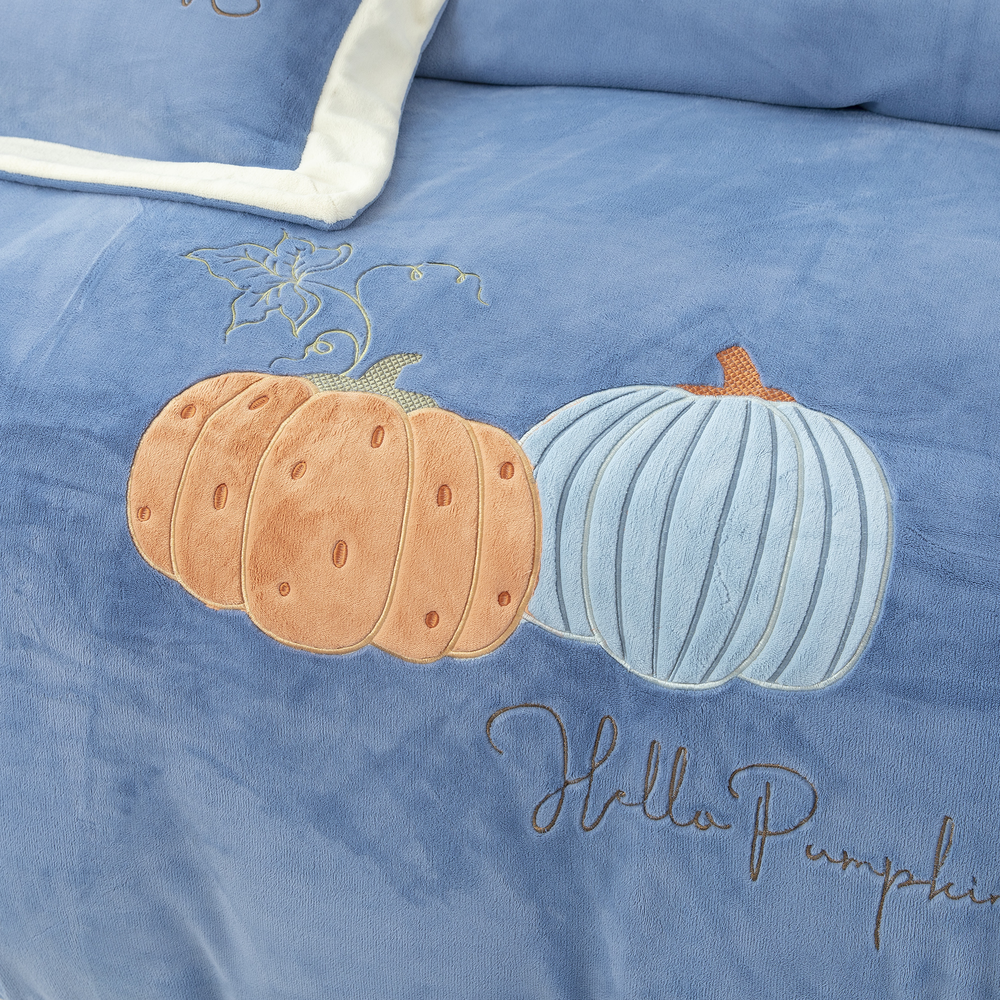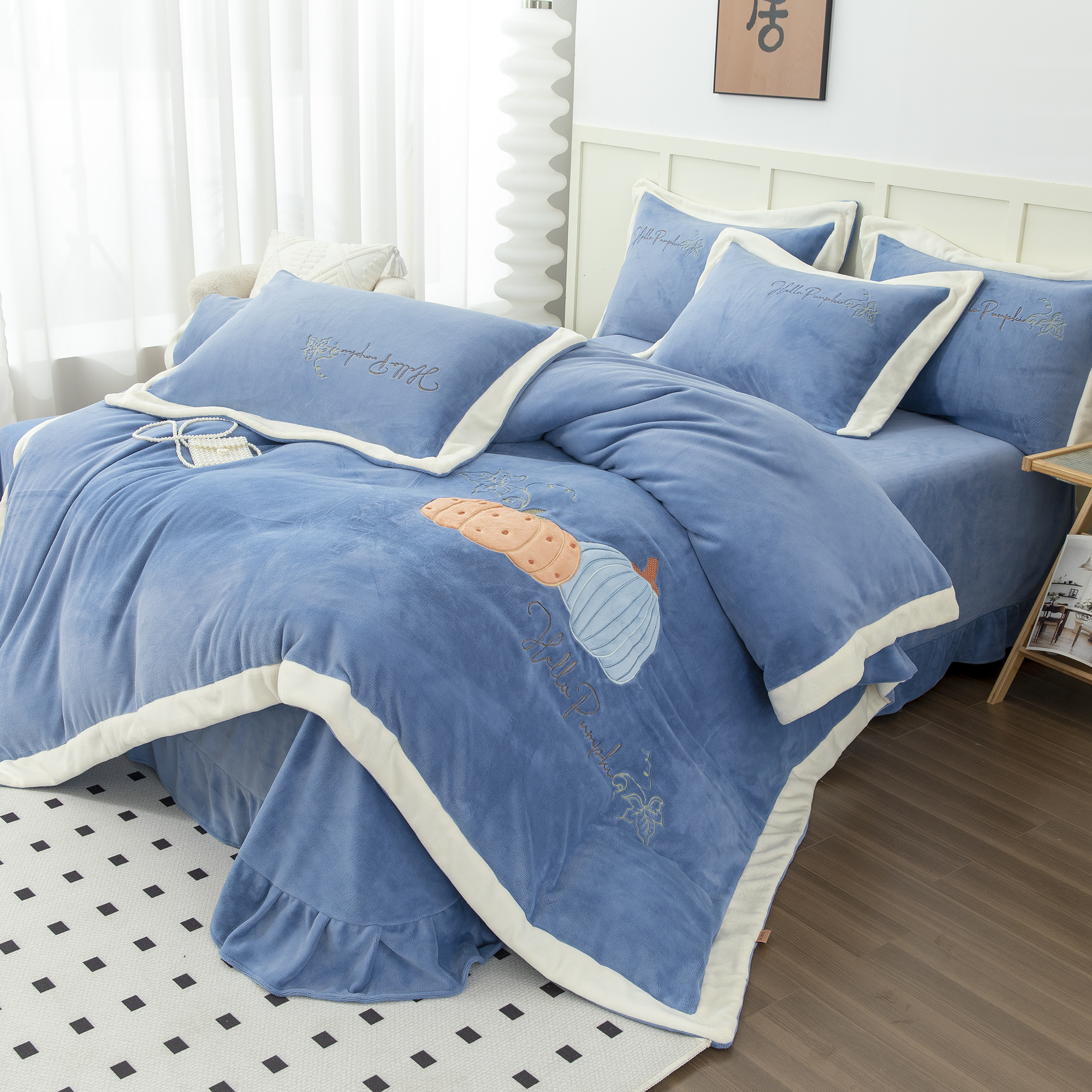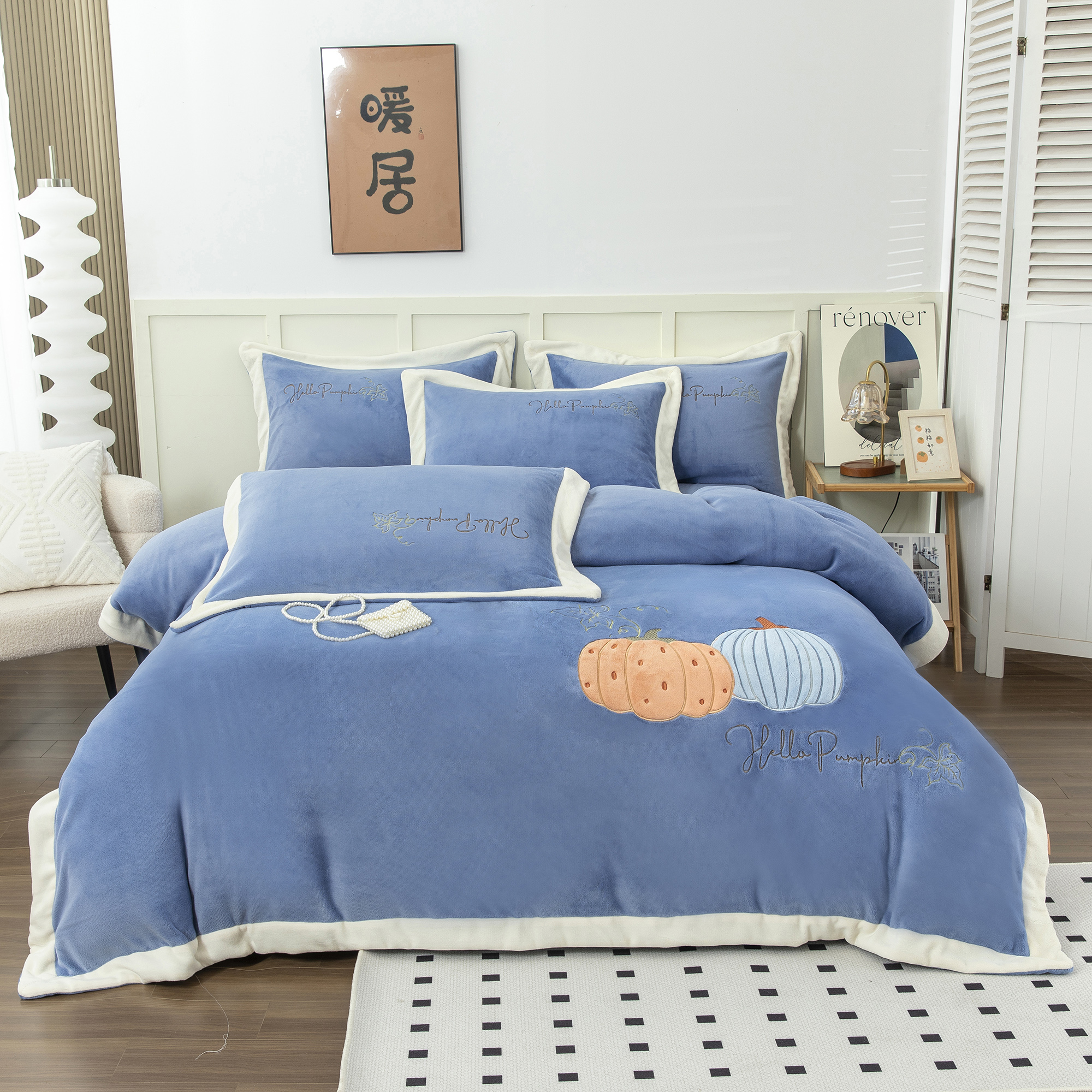 商品名称:贝尔 2025新款南瓜派-全消光拼角刺绣四件套 兰色