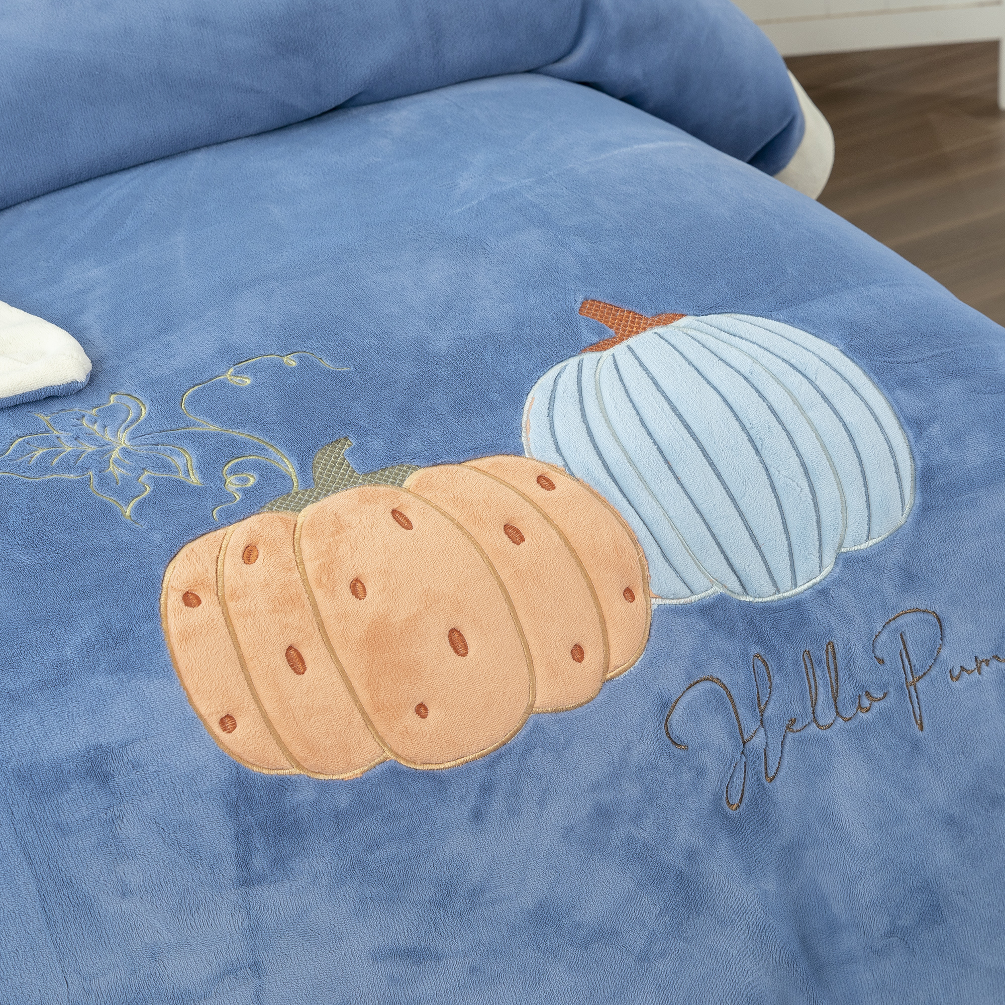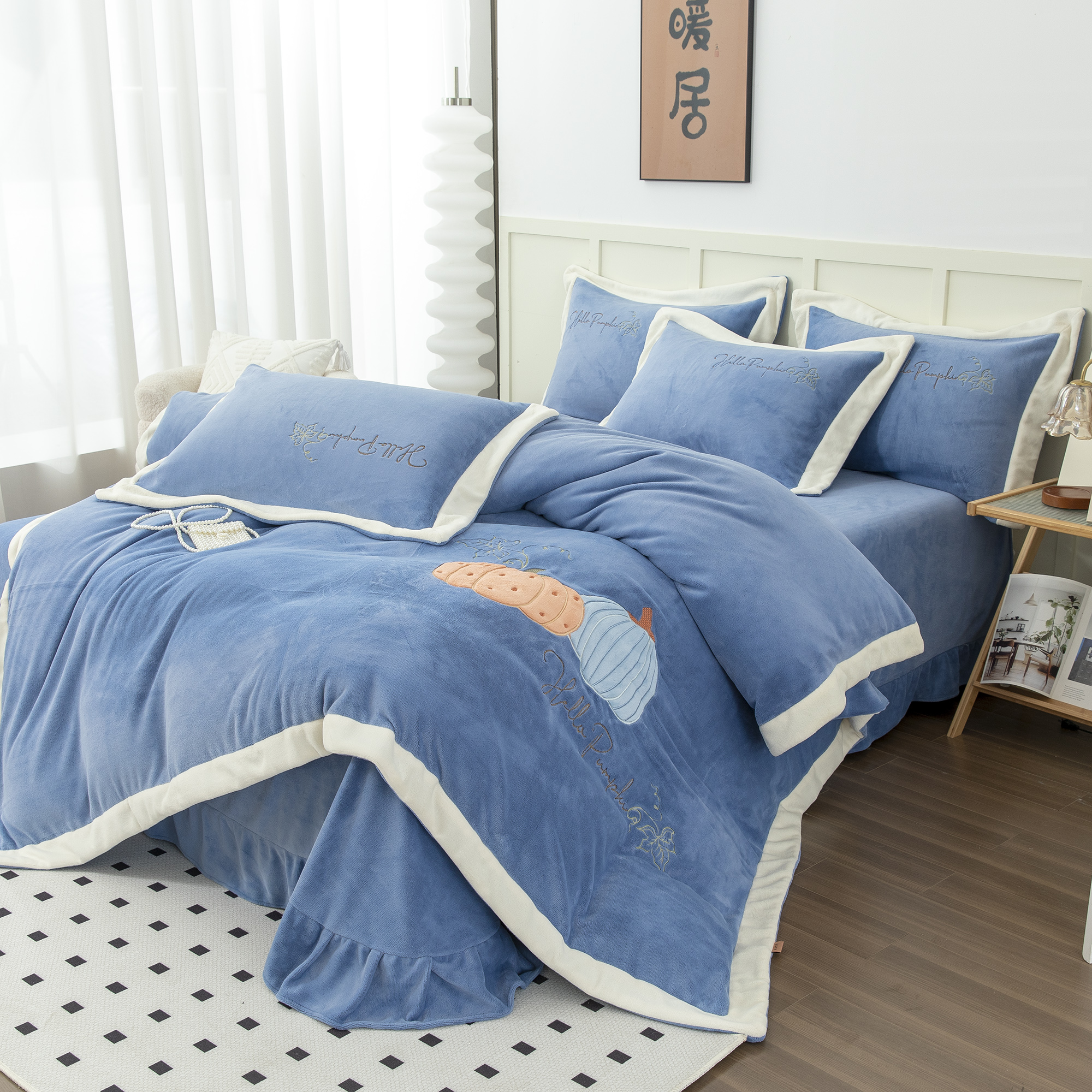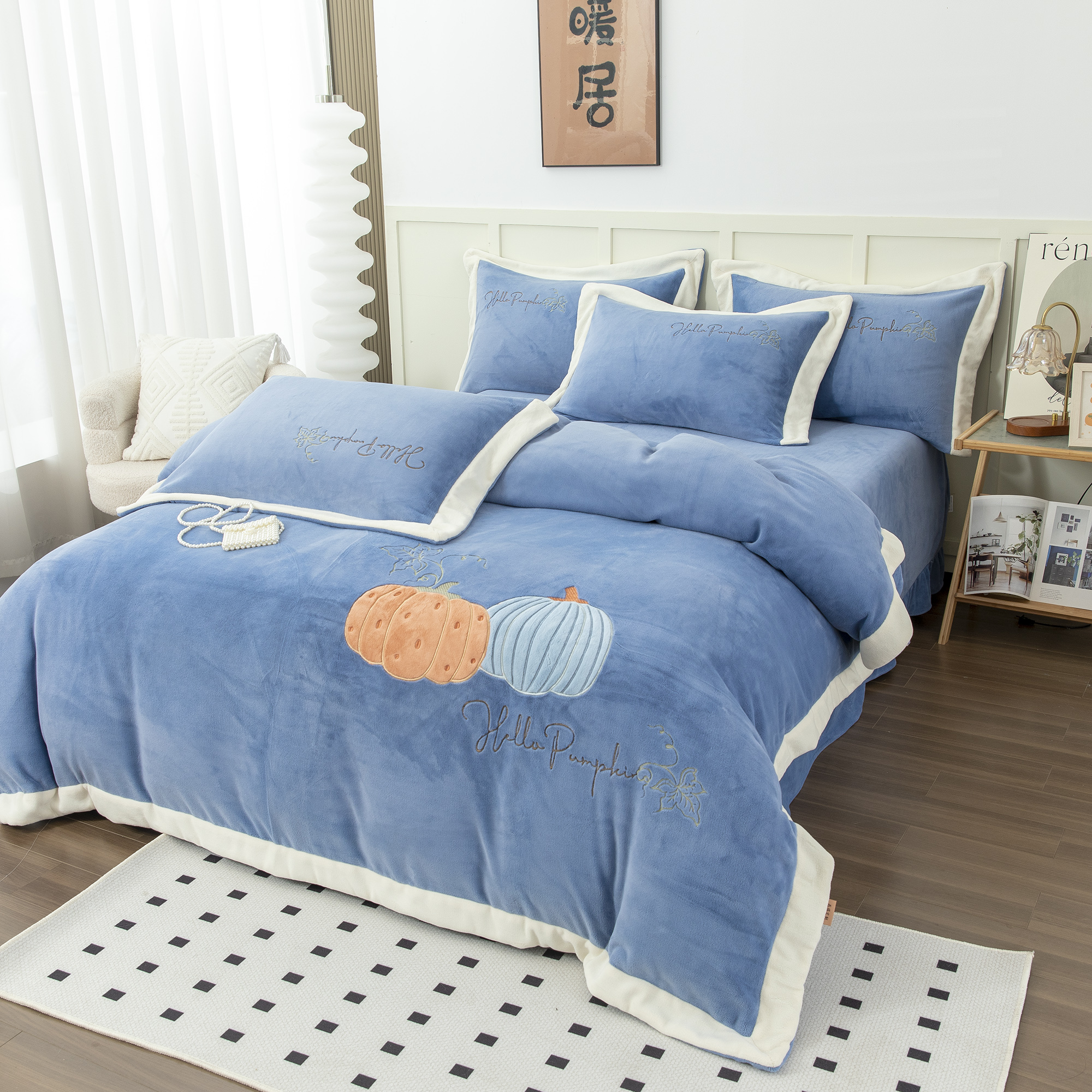商品名称:贝尔 2025新款南瓜派-全消光拼角刺绣四件套 兰色