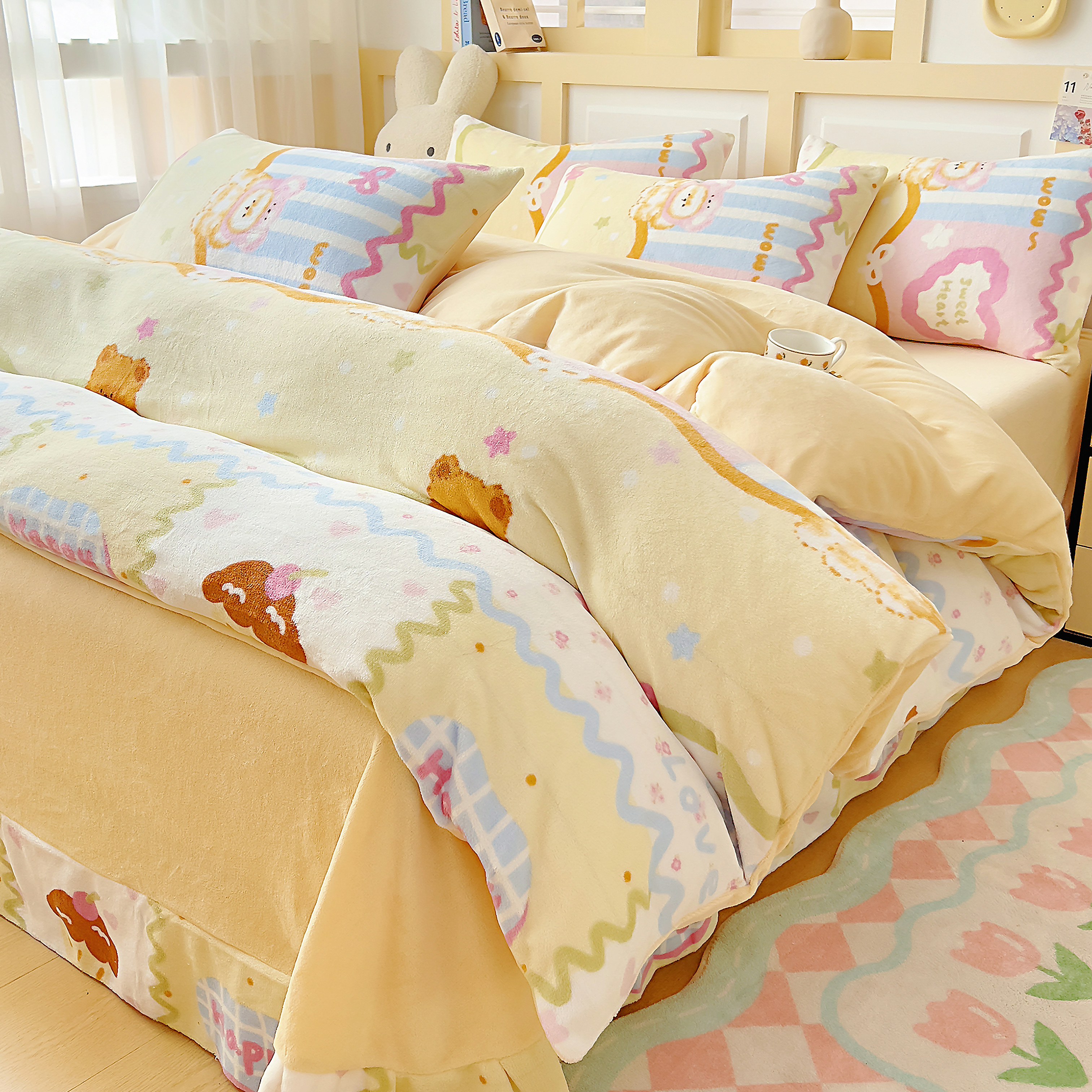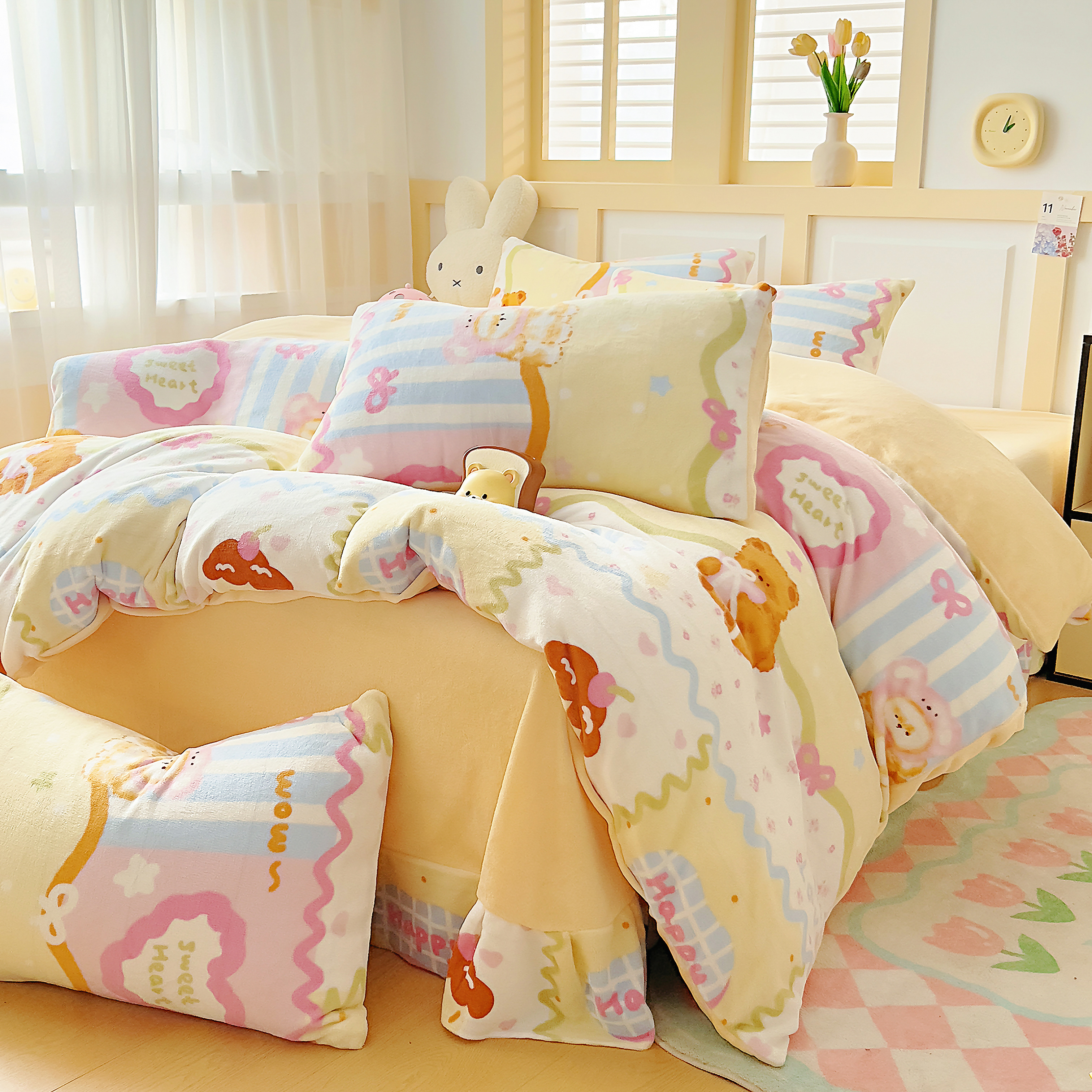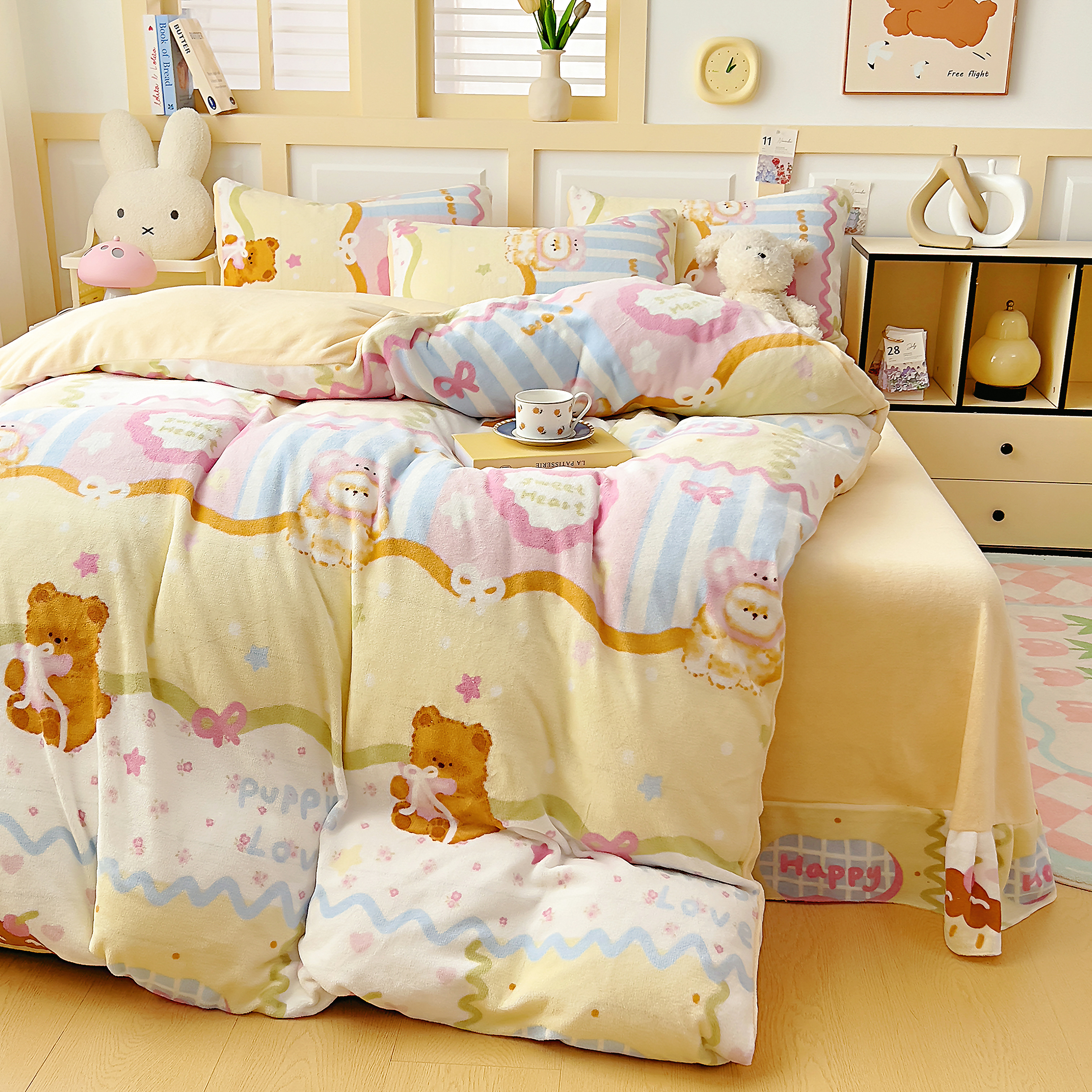 商品名称:找底底家纺 2025新款牛奶绒四件套(日发50套优惠8元一套) 甜熊波点梦