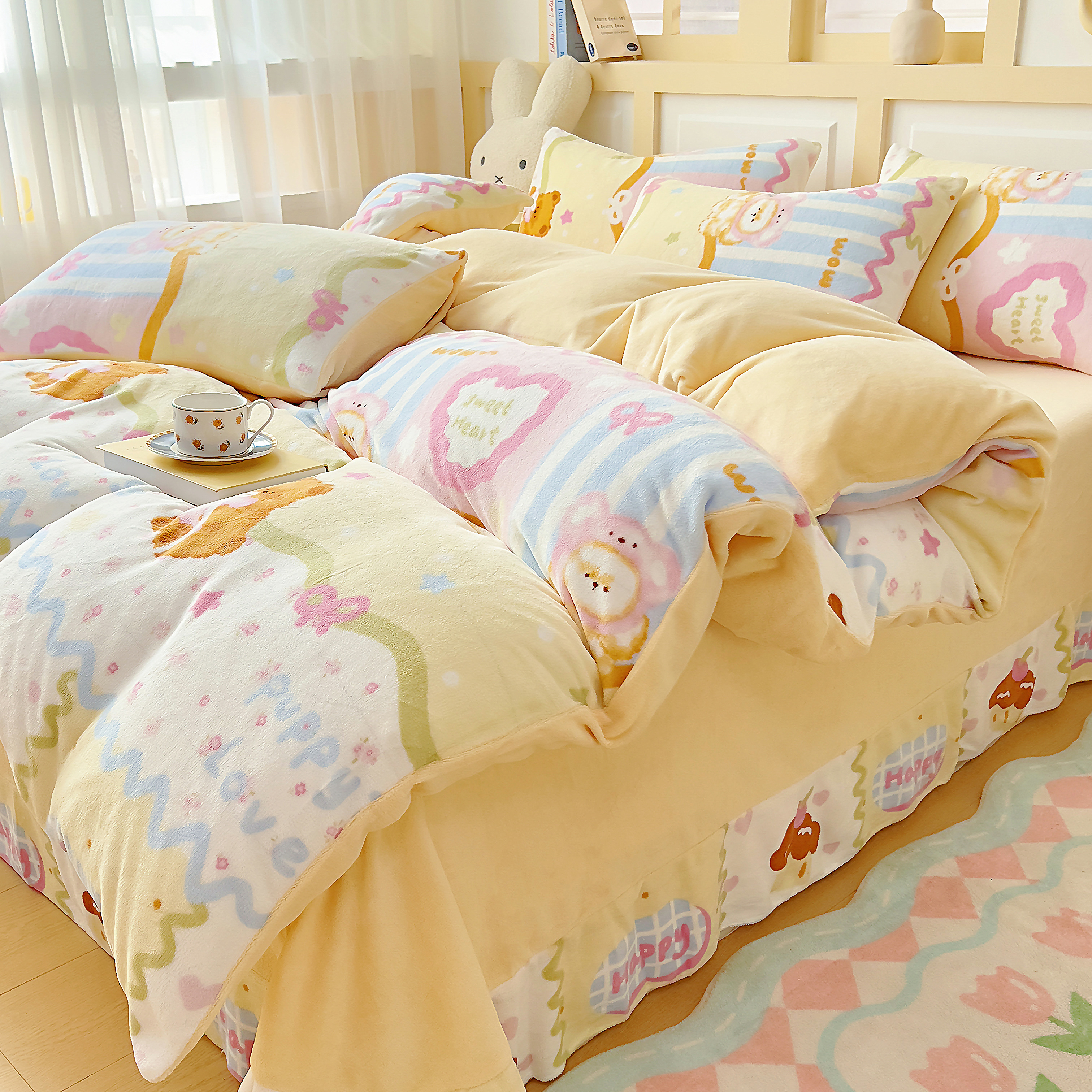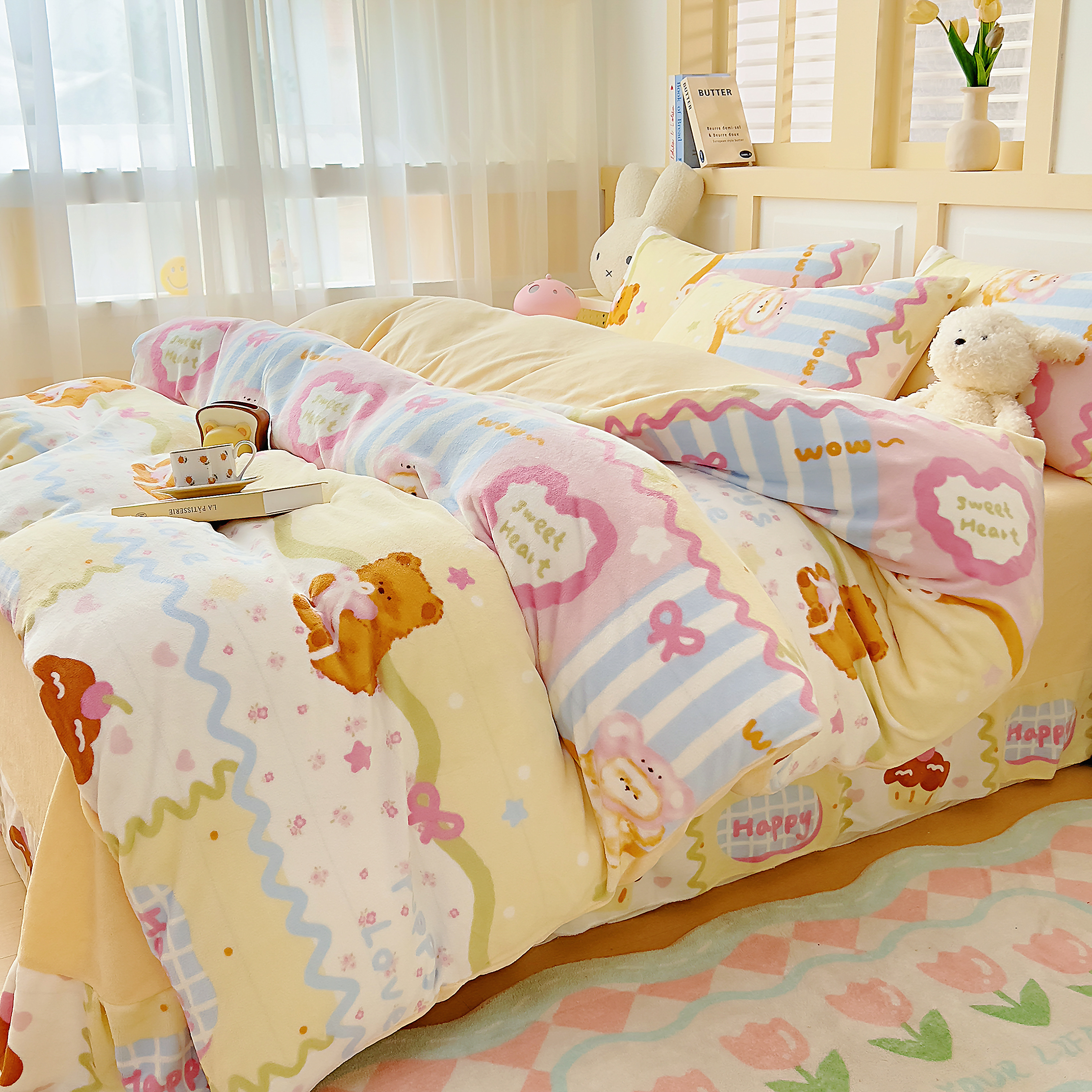 (总)找底底家纺 2025新款牛奶绒四件套(日发50套优惠8元一套),爱心熊,格子熊,奶糖波点熊,美乐蒂,蓝格猫,奶糖小镇,可可奶格,奶杏猫,焦糖布丁熊,花田薰衣草,巧克力布丁,海盐汽车,圣诞派对,奶黄小狗,草莓熊,复古格纹,甜熊波点梦,豹纹狗,小狗巴士,樱桃兔,芋泥兔,小樱桃,几何条纹,梨花落,花妖