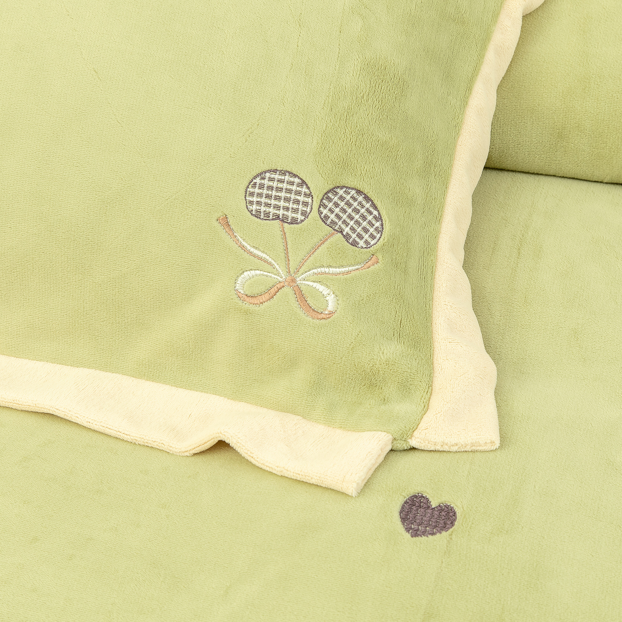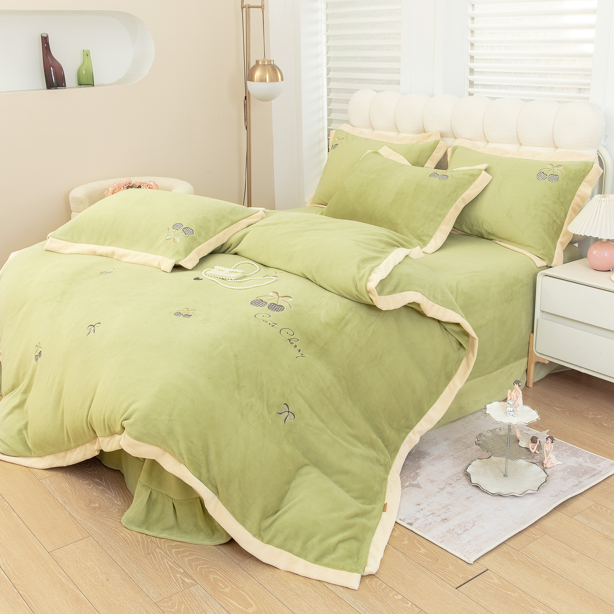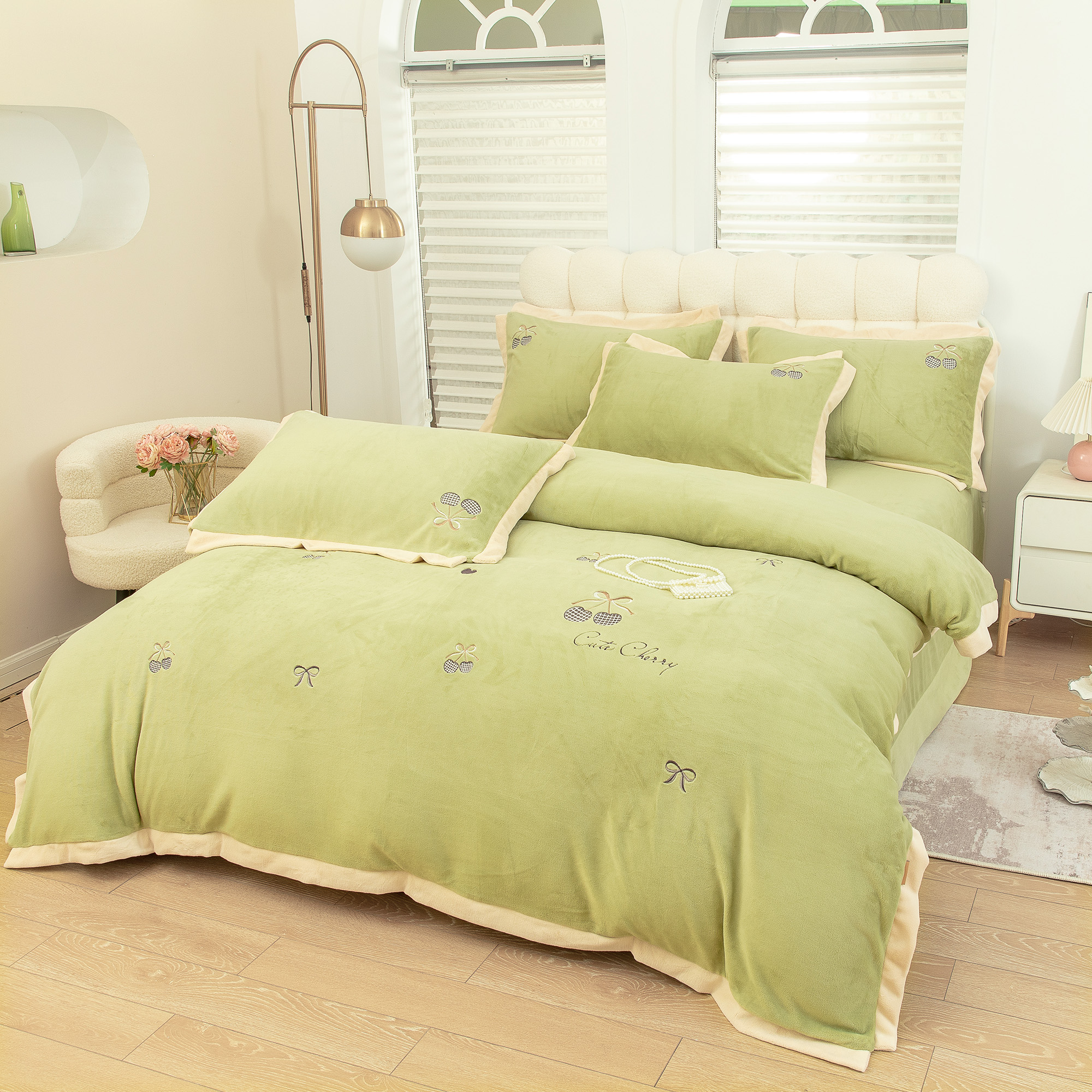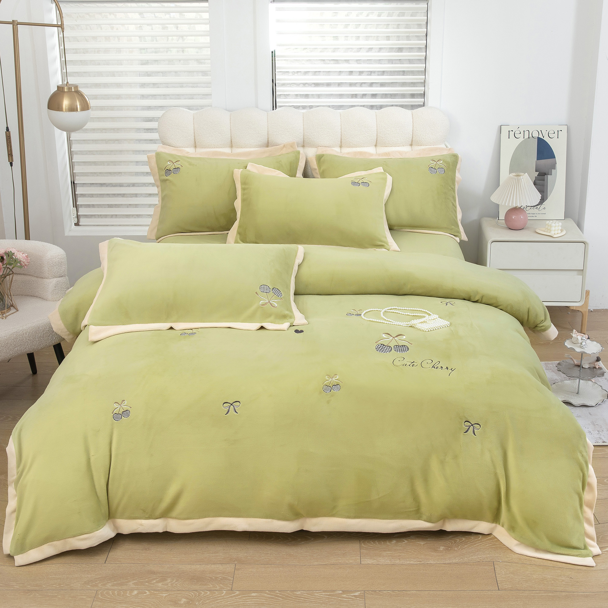 贝尔 2025新款纯色高克重牛奶绒刺绣四件套-羽魅 羽魅-浅绿,羽魅-浅绿