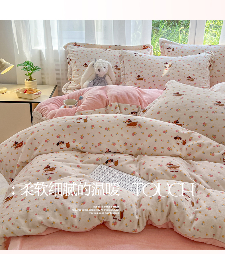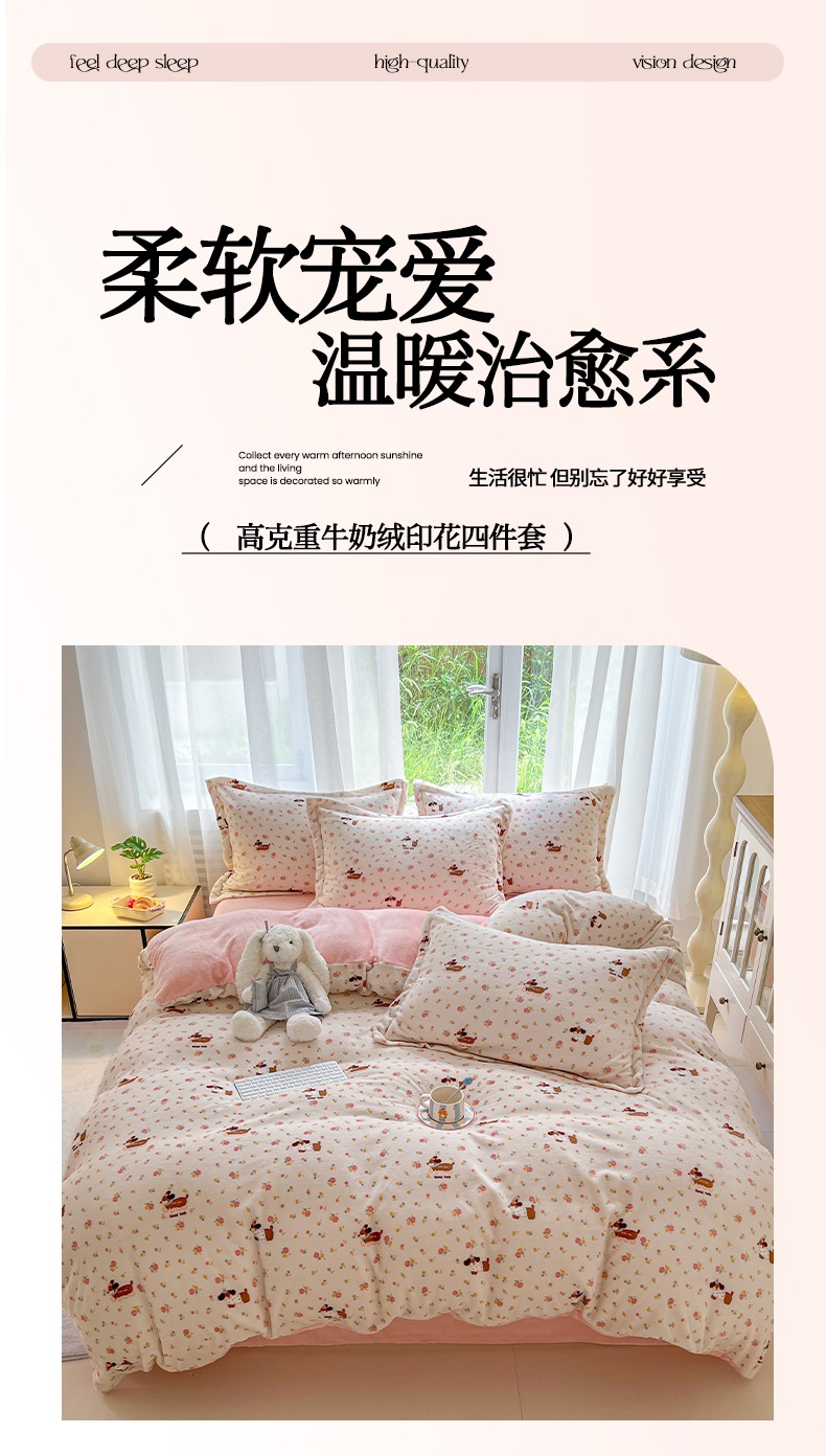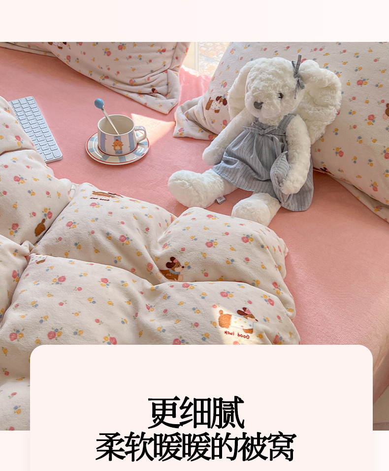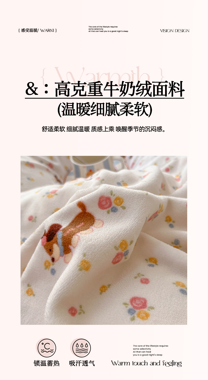 当前位置: 91家纺网 > 商品网购 > 床品套件 > 四件套 > 牛奶绒四件套 > 妖妖家纺 2025新款高克重200克牛奶绒印花四件套 萌宠花笺