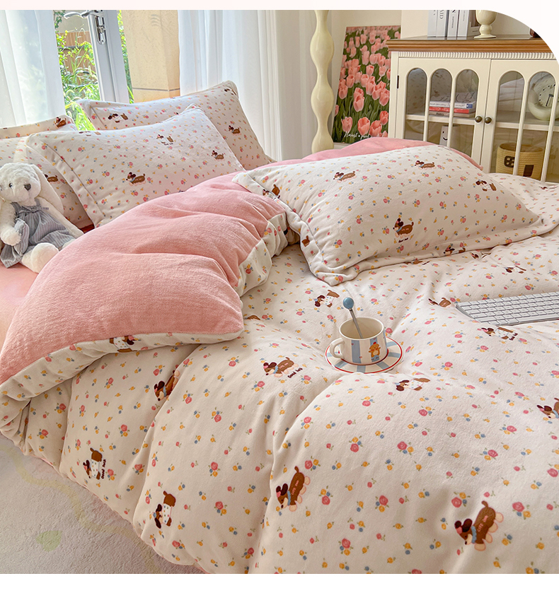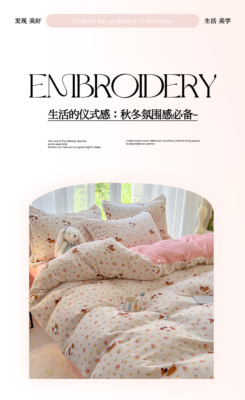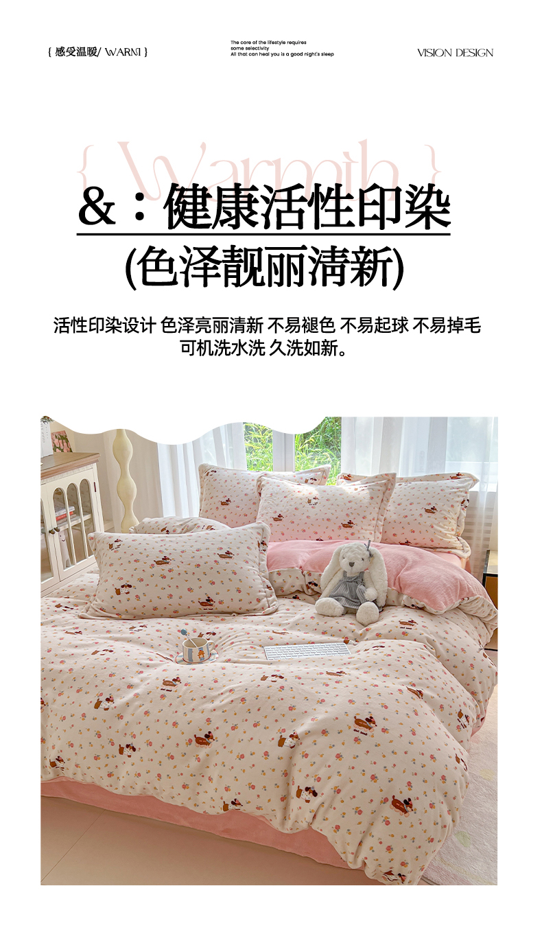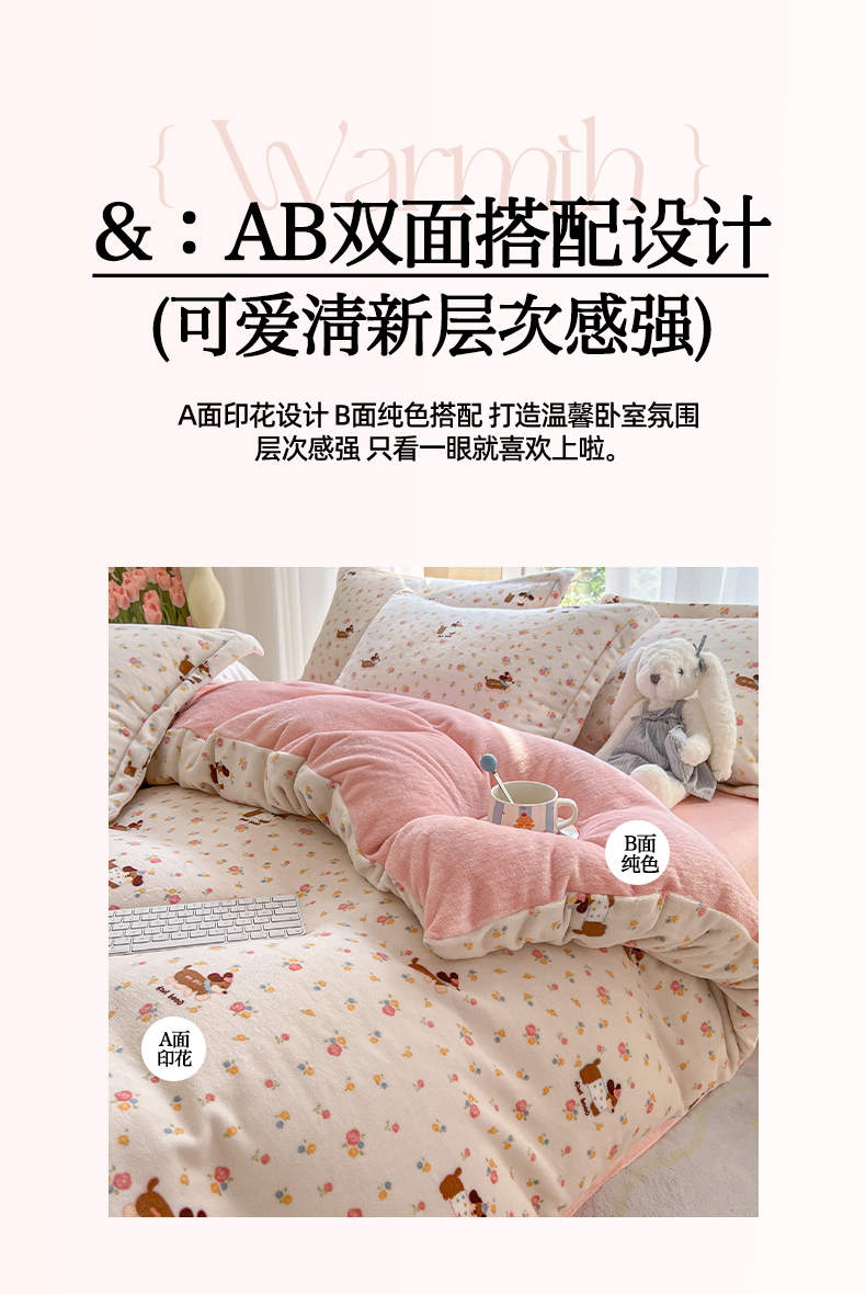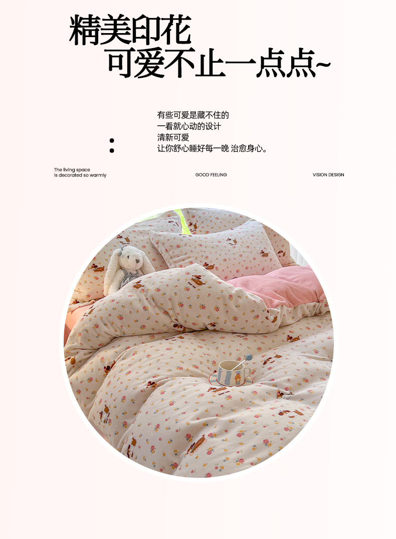 当前位置: 91家纺网 > 商品网购 > 床品套件 > 四件套 > 牛奶绒四件套 > 妖妖家纺 2025新款高克重200克牛奶绒印花四件套 萌宠花笺