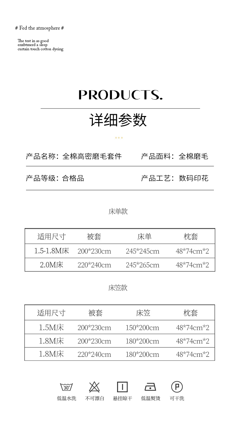【床笠款】1.5四件套-被套200x230 | ¥190.00 |