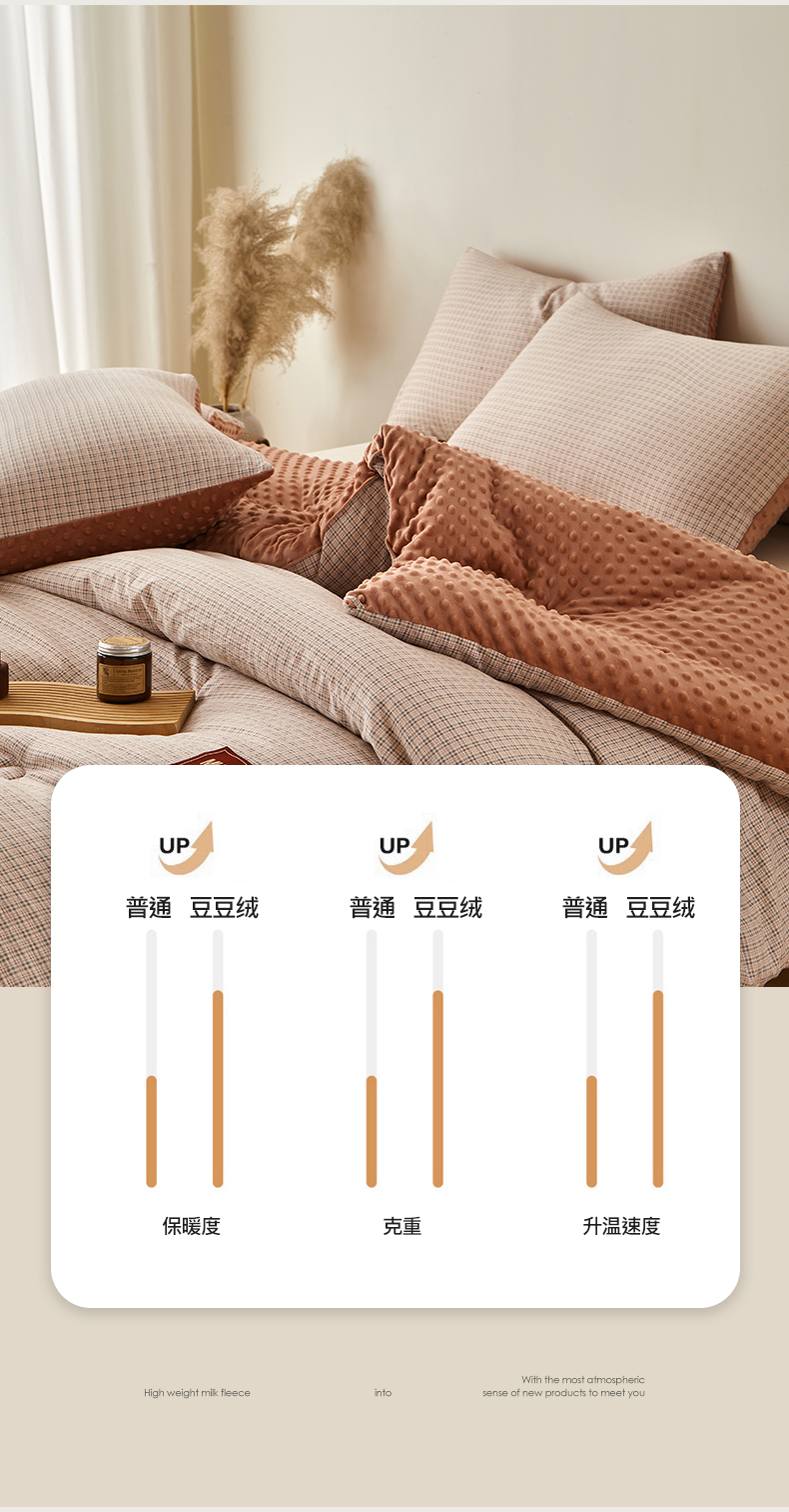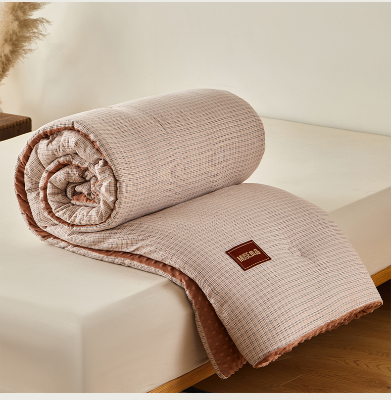 商品名称:玛德琳 2025新款美拉德条格抗菌豆豆绒抗菌被被子被芯 美拉德-藕粉色