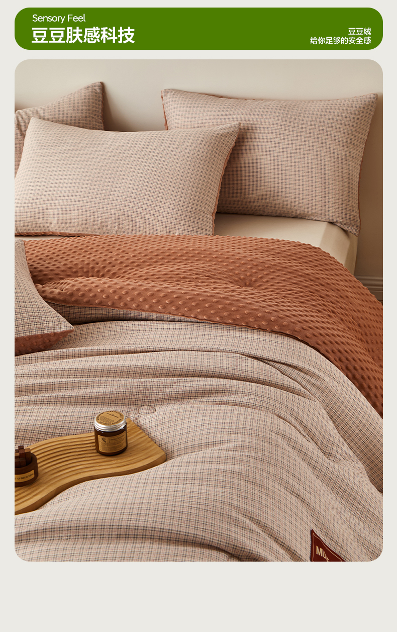 (总)玛德琳 2025新款美拉德条格抗菌豆豆绒抗菌被被子被芯,美拉德-灰,美拉德-藕粉色,美拉德-浅咖,美拉德-棕咖