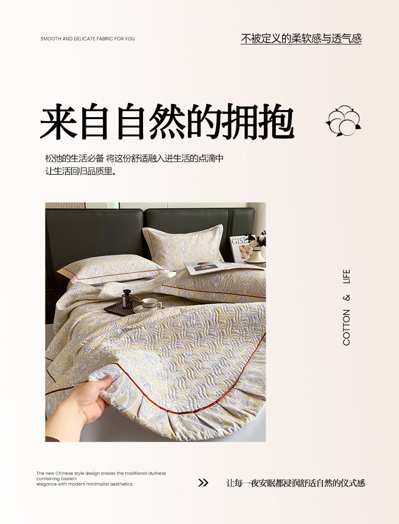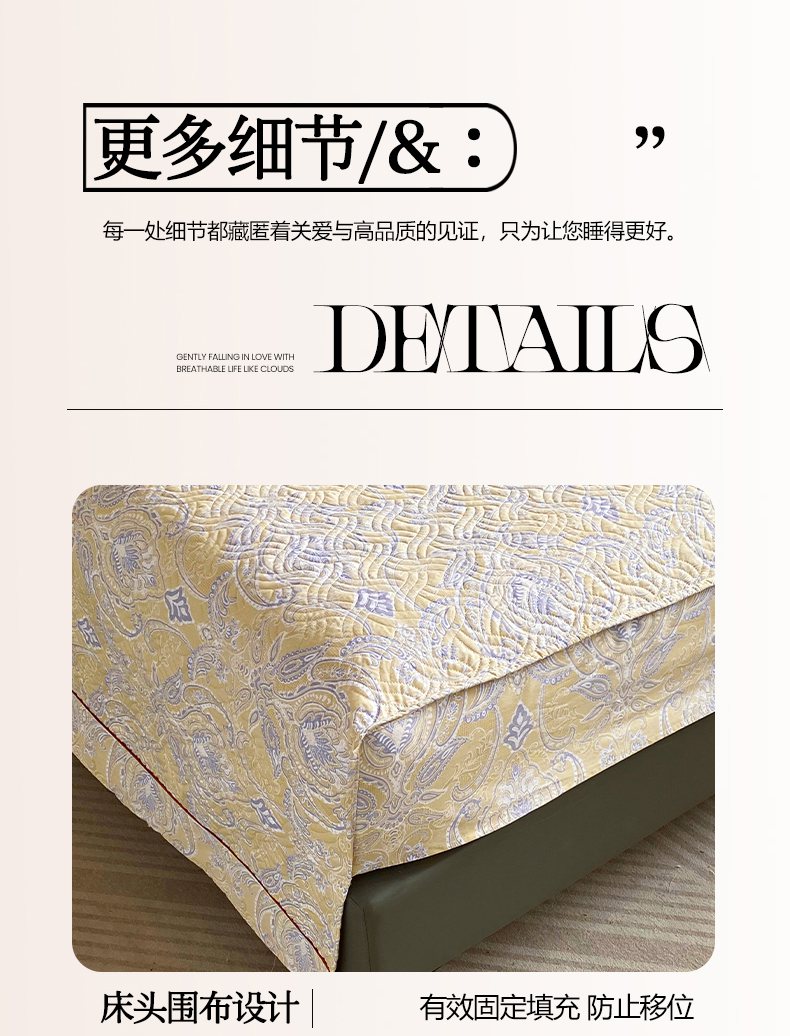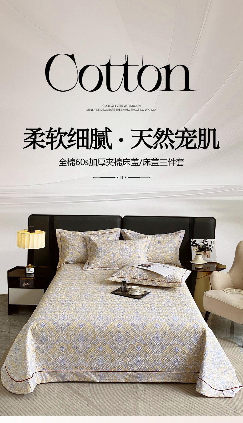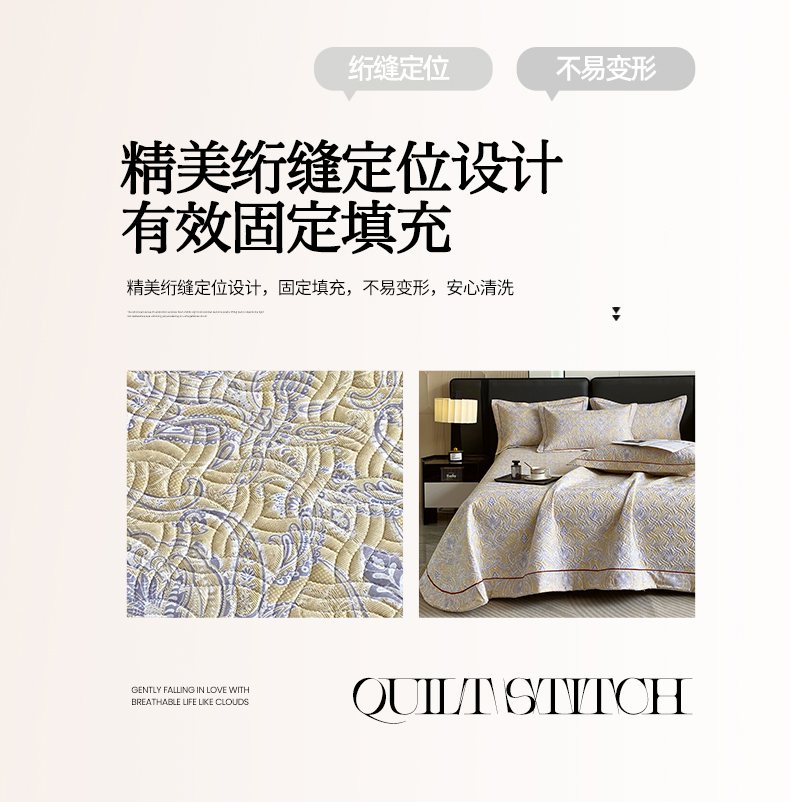 • 91家纺网 家纺一手货源 找家纺 畅畅家纺 2025春夏款13372全棉纯棉活性印花床盖夹棉加厚绗缝防滑床罩 米拉