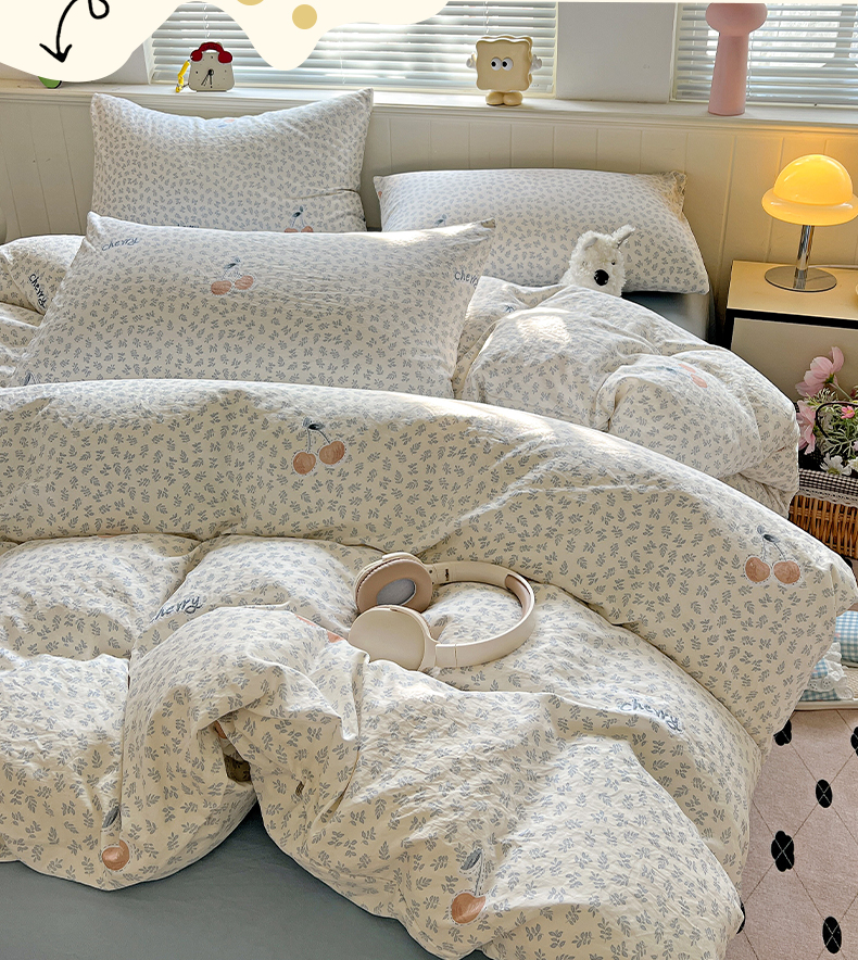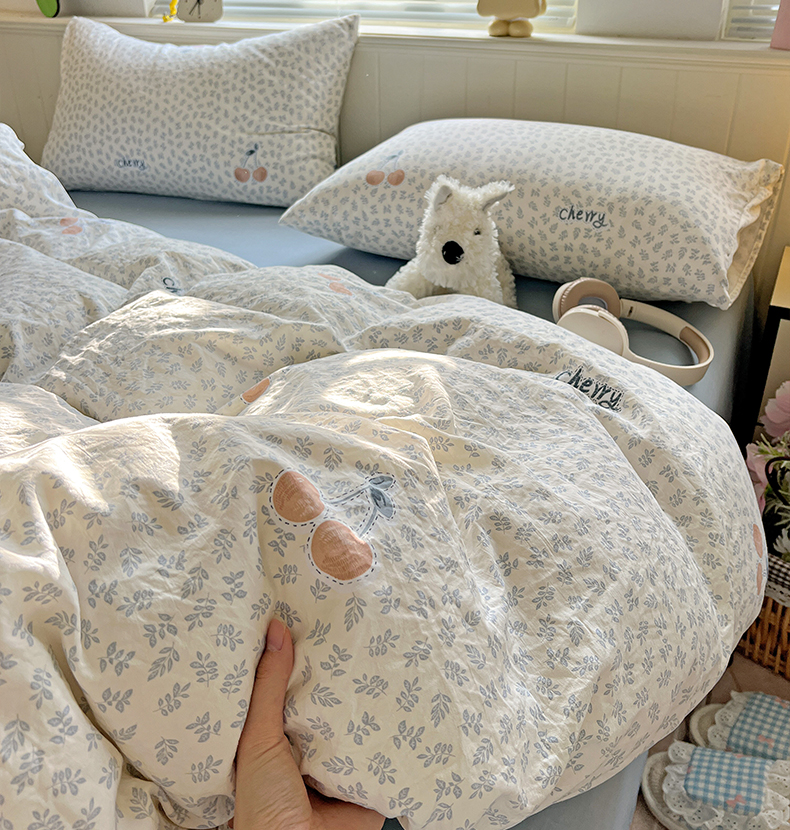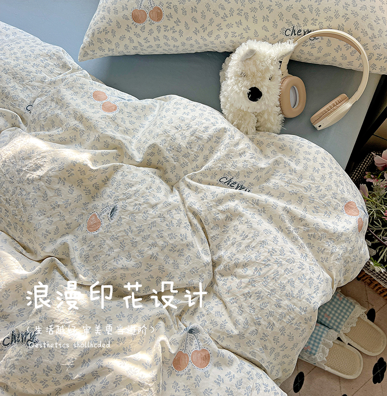 当前位置: 91家纺网 > 商品网购 > 床品套件 > 四件套 > 水洗棉四件套 > 暖芯优选 2025新款加厚爆款小布袋韩国古法水洗棉床单学生三件套床笠款四件套 蓝叶樱语