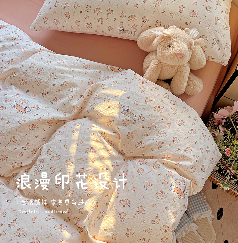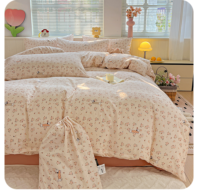 当前位置: 91家纺网 > 商品网购 > 床品套件 > 四件套 > 其它四件套 > 优选 2025新款加厚爆款小布袋韩国古法高克重水洗棉床单学生三件套床笠款四件套 花田汪语