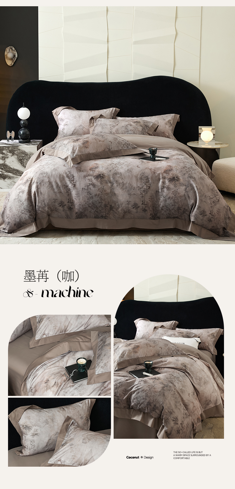 涵宸家纺 2025新款50S全棉磨毛拼角款四件套【更多花型 联系商家电话:17798859966 微信同号,网站:www.hanchenjf.com】 墨苒(咖)