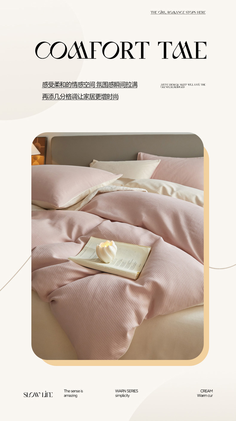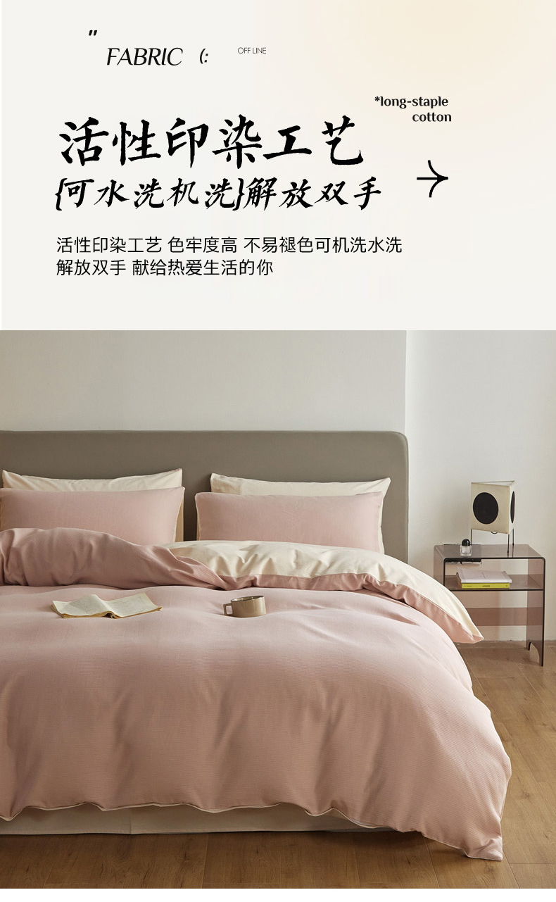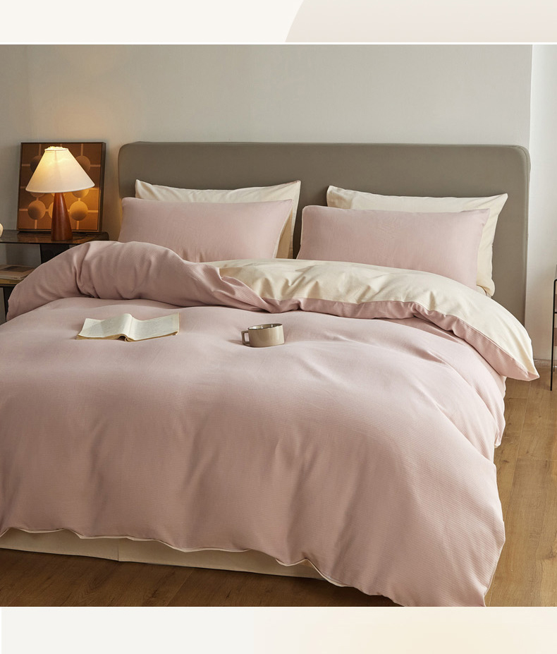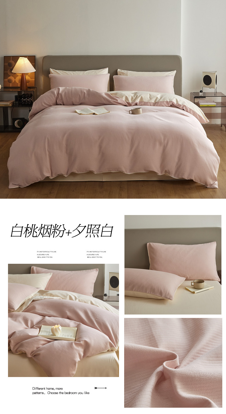 当前位置: 91家纺网 > 商品网购 > 床品套件 > 四件套 > 全棉活性四件套 > 慕尚家纺 2025新款100s全棉提花磨毛四件套 白桃烟粉+夕照白