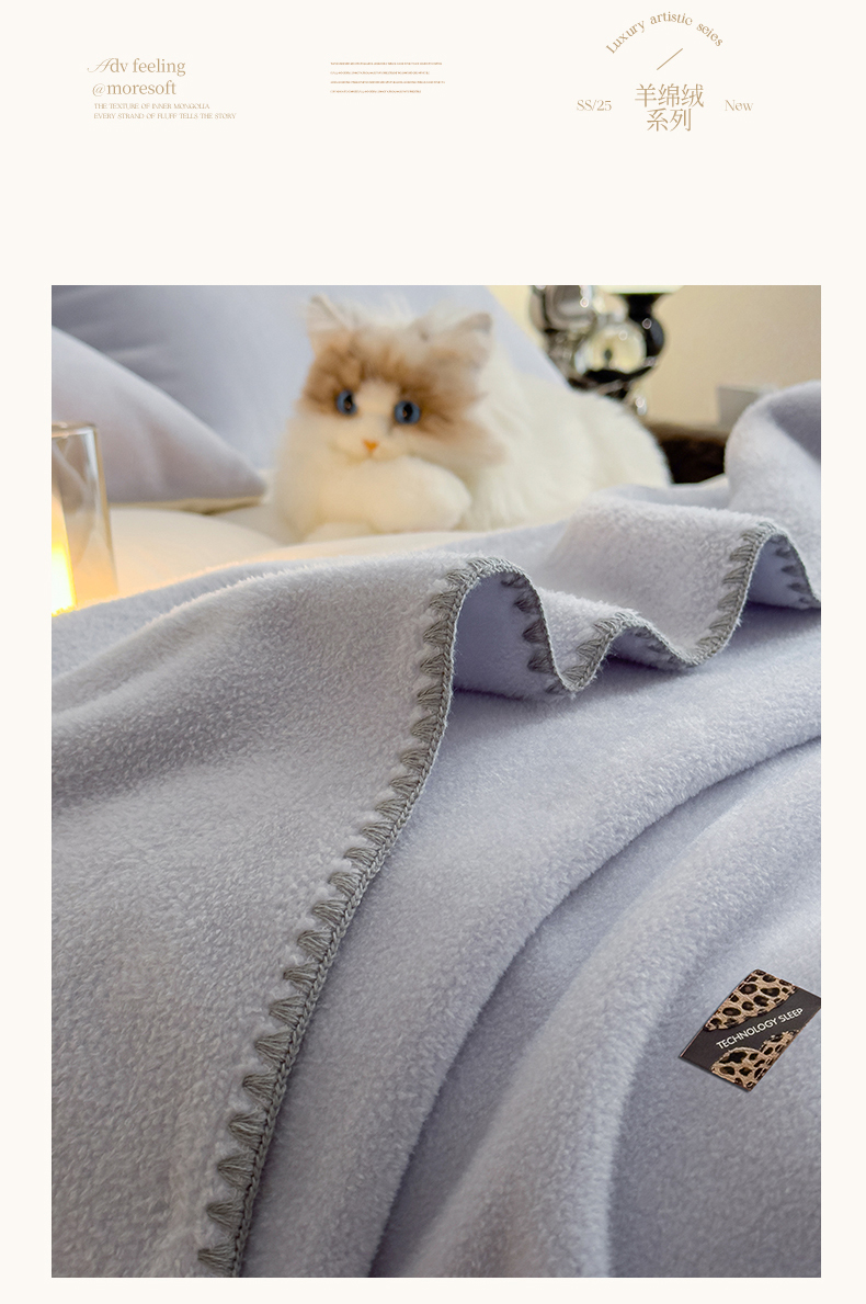 丝幔家纺 2025新款A类羊棉绒原创设计毛毯系列 天蓝