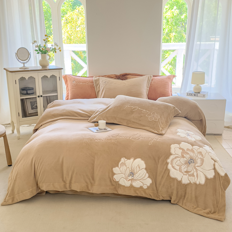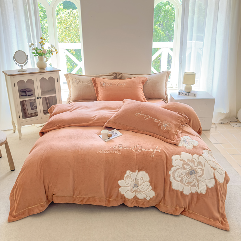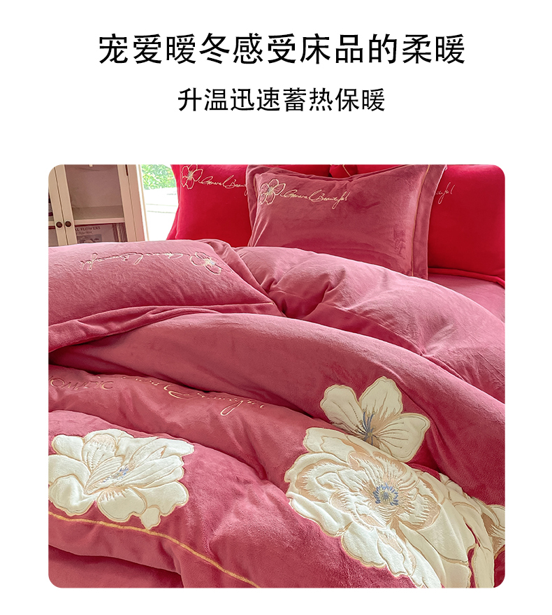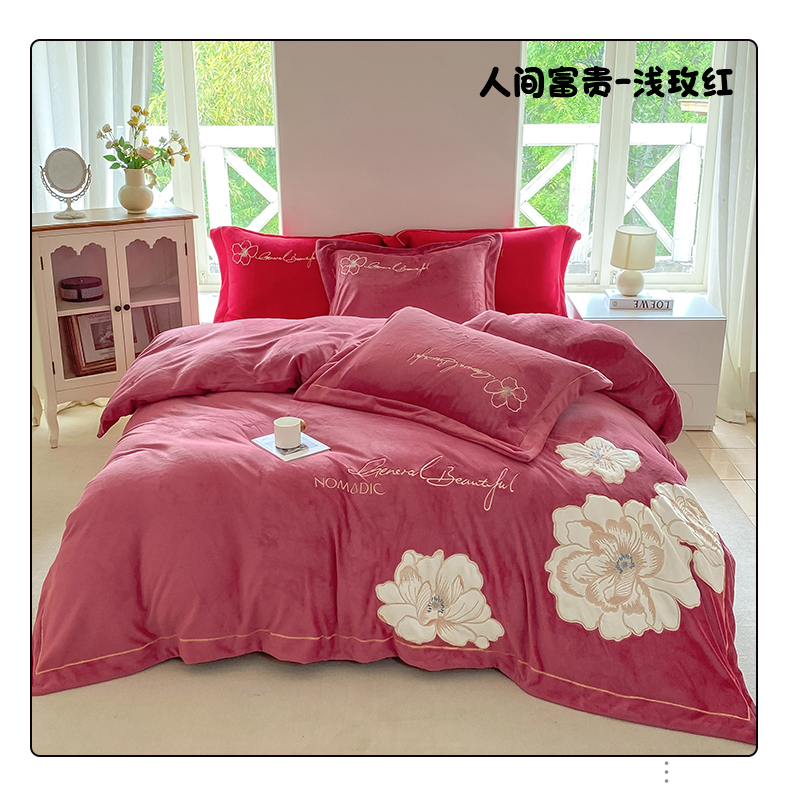 当前位置: 91家纺网 > 商品网购 > 床品套件 > 四件套 > 牛奶绒四件套 > 悦织湾家纺 2025新款9斤重牛奶绒四件套纯色贴布绣人件富贵系列240克重高密保暖轻奢时尚床上用品4件套 人间富贵-浅玫红