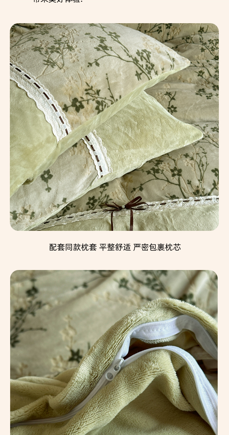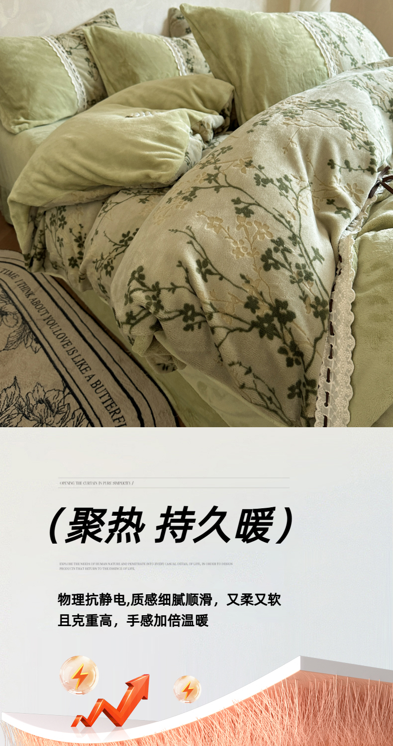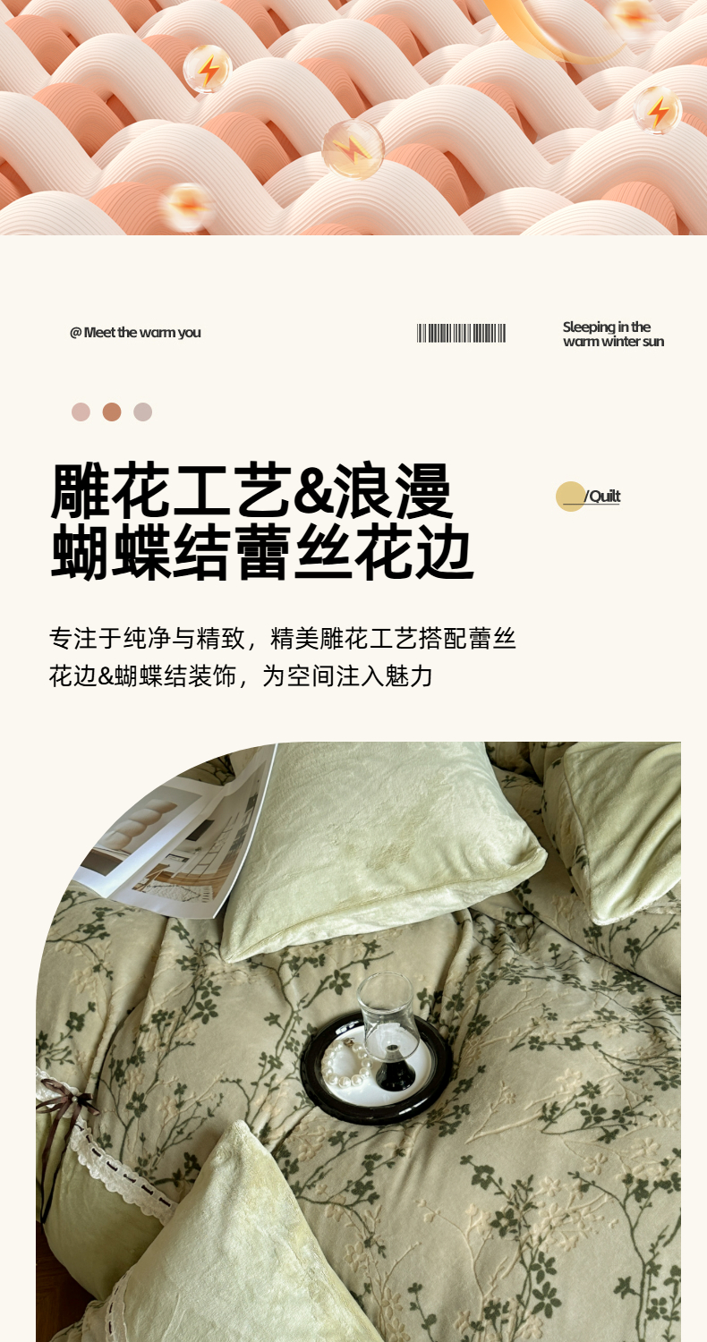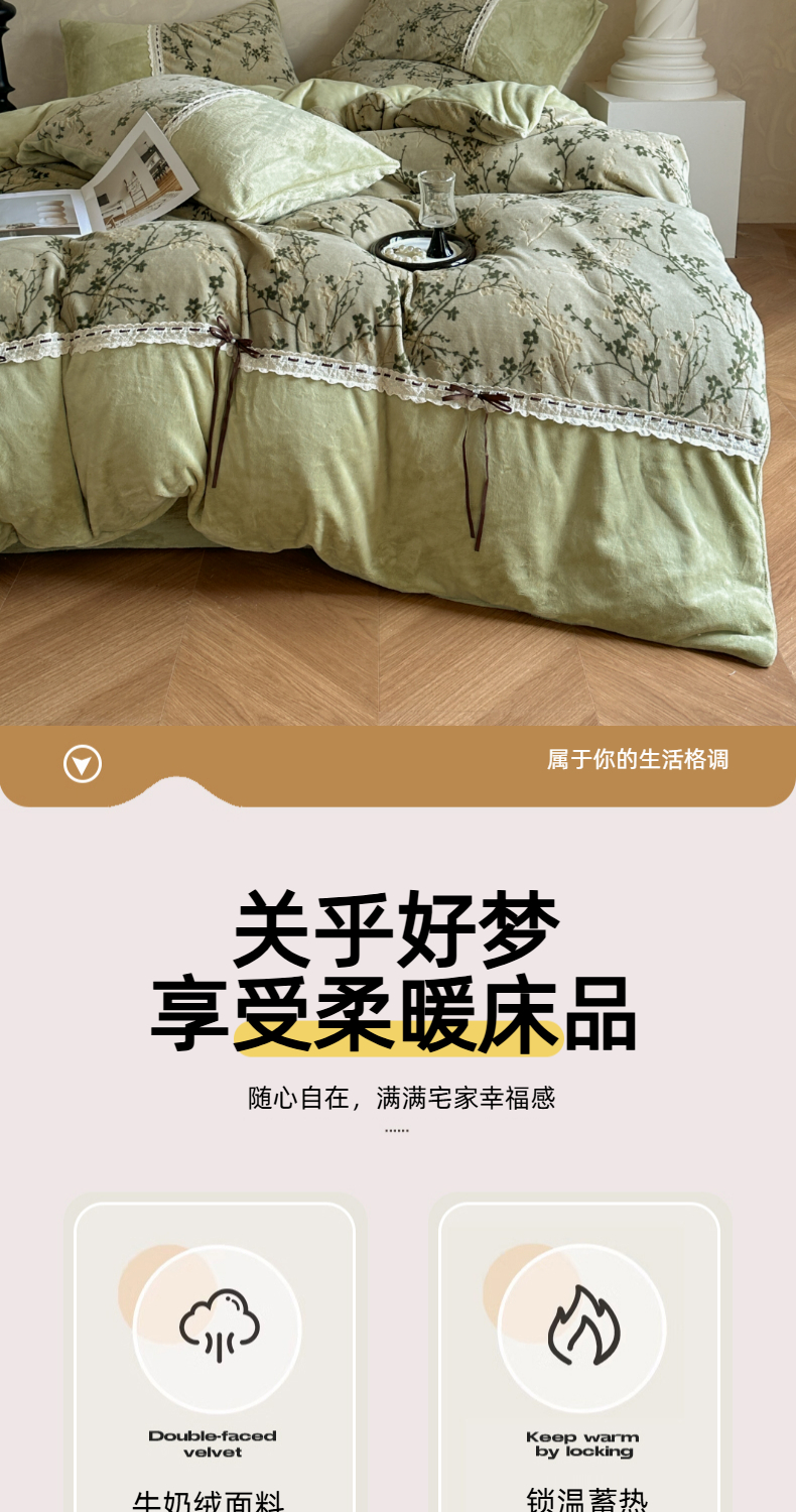 当前位置: 91家纺网 > 商品网购 > 床品套件 > 四件套 > 牛奶绒四件套 > 昊川家纺 2025新款牛奶绒雕花绒轻奢花边蝴蝶结拼接款四件套 浮影-绿
