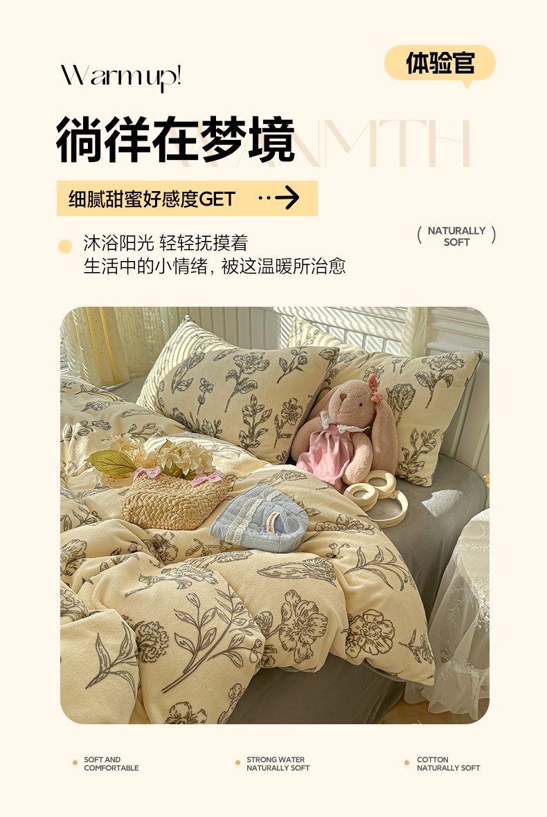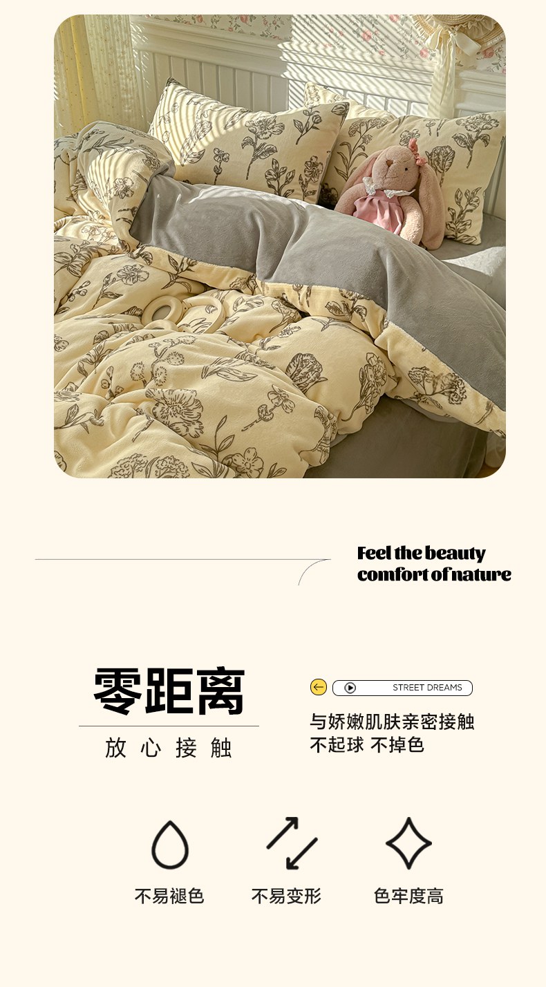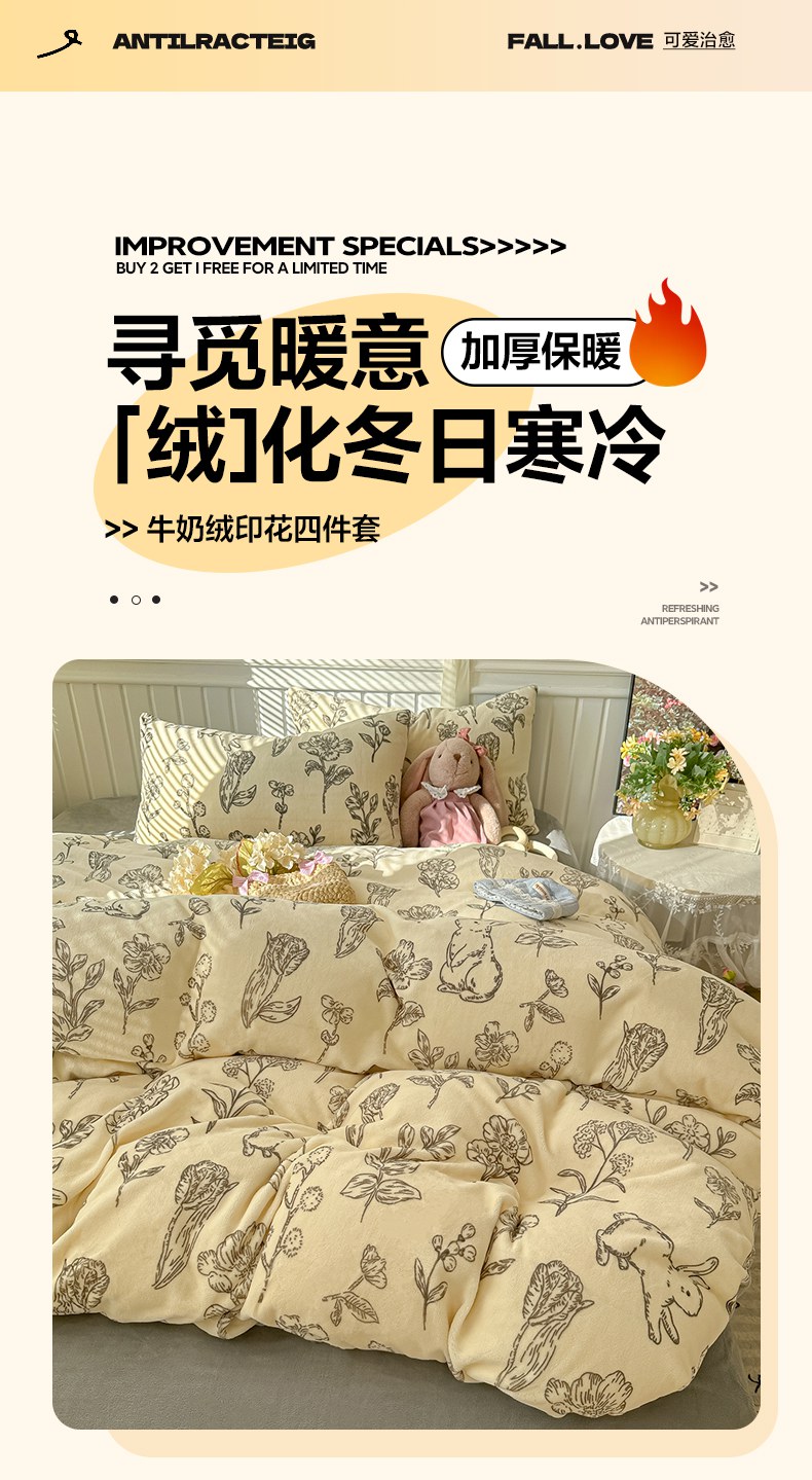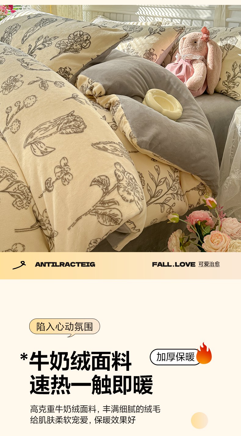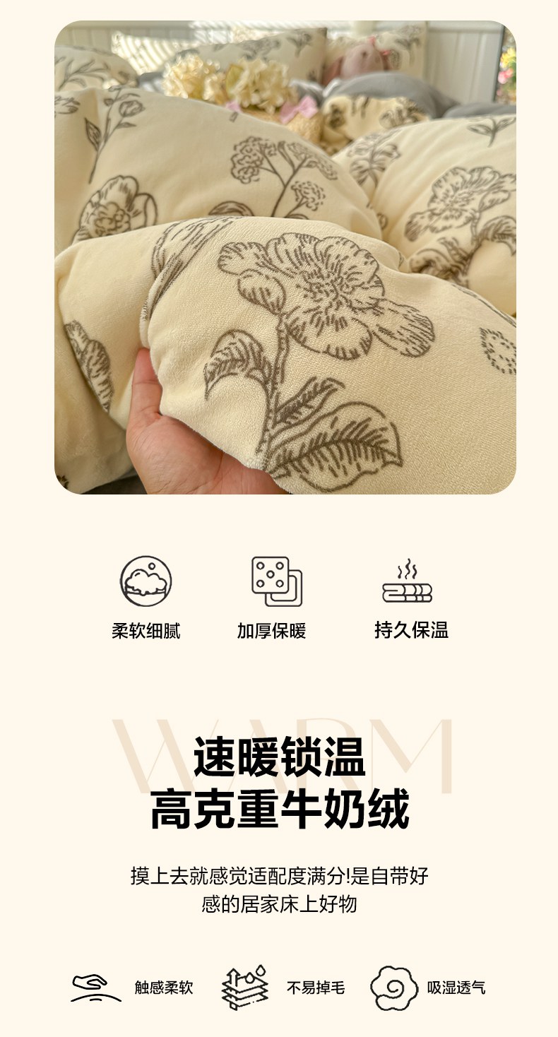 当前位置: 91家纺网 > 商品网购 > 床品套件 > 四件套 > 牛奶绒四件套 > 韩巢家纺 2025新款高克重印花牛奶绒床品四件套 免斯基