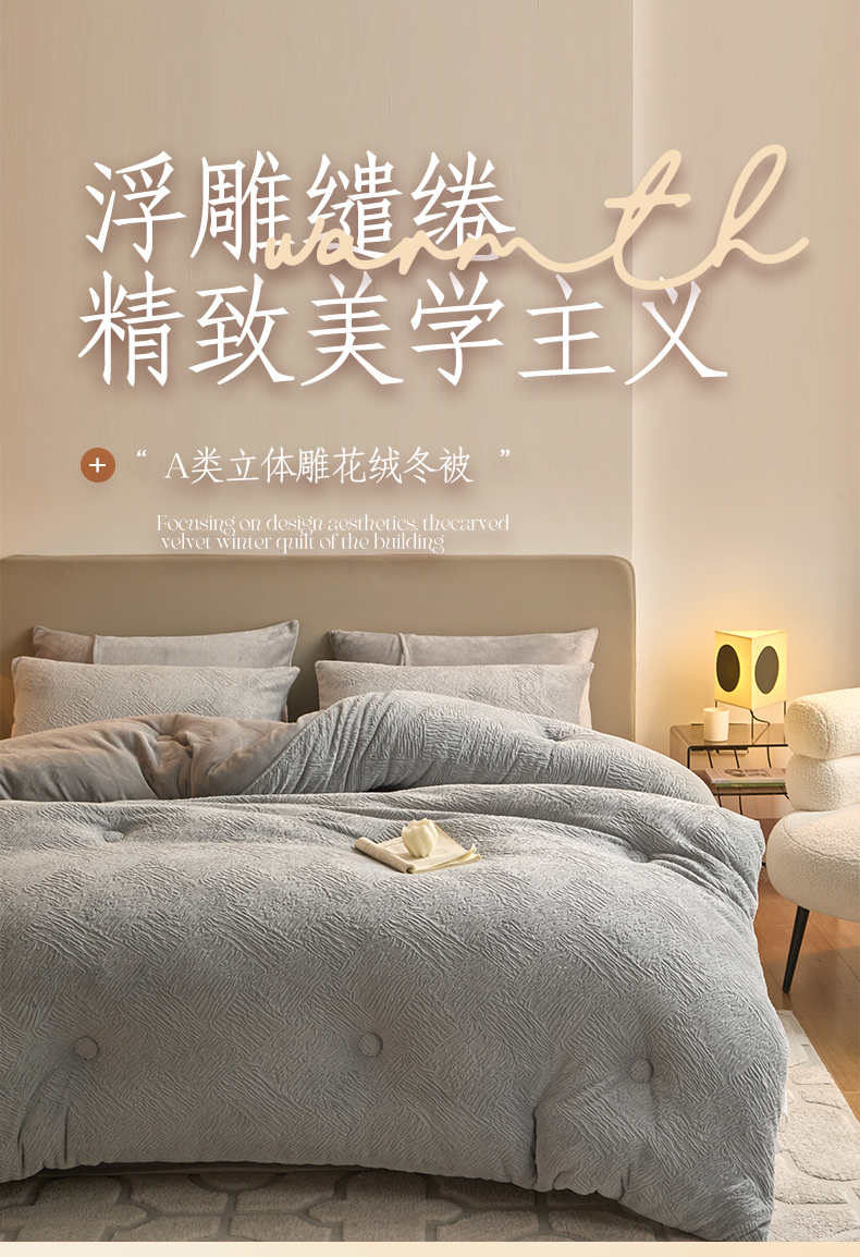 商品名称:换种生活 2025新款A类立体雕花绒冬被被子被芯 柔梦-浅灰色