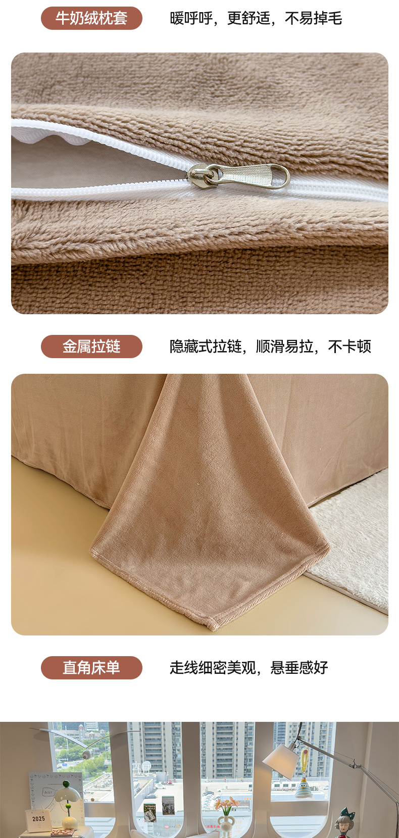 曲之慕 2025新款卡通消光牛奶绒贴布四件套 宠物旅行