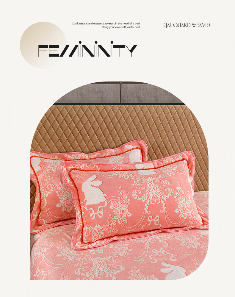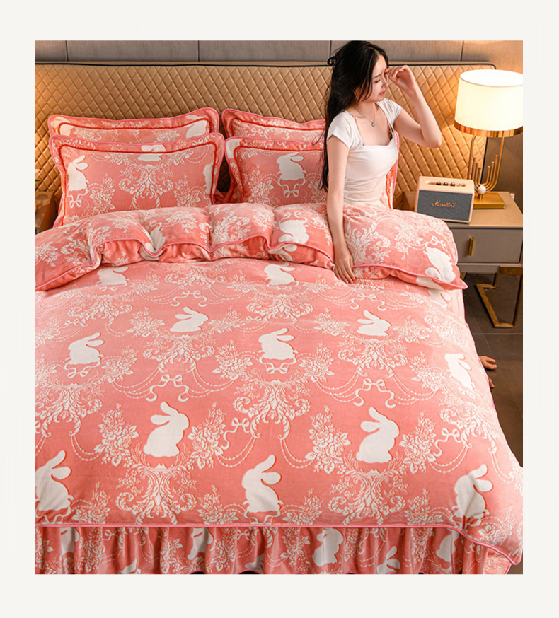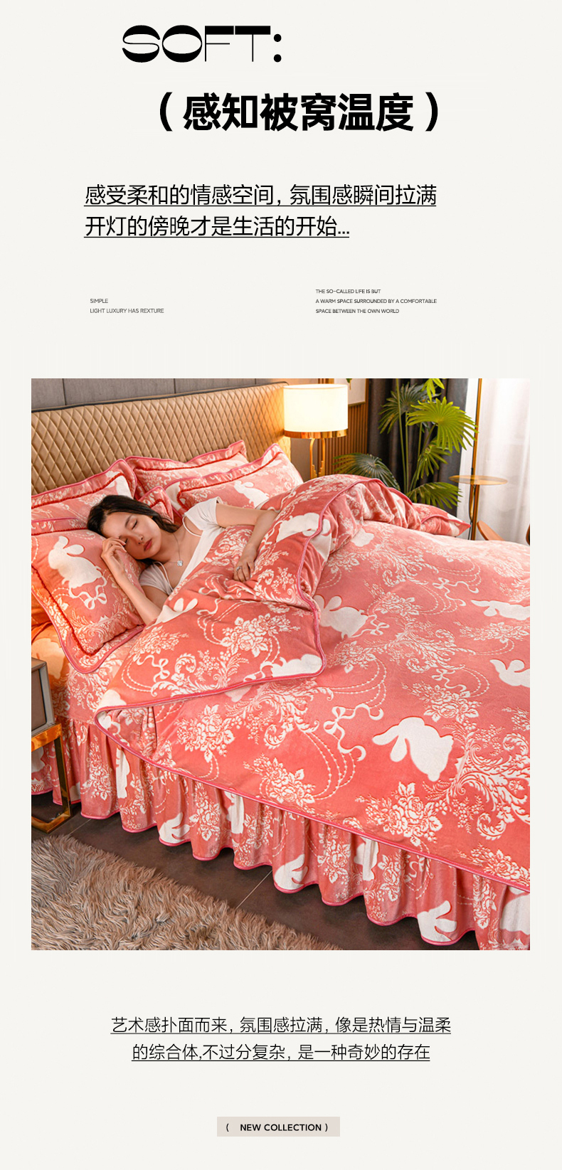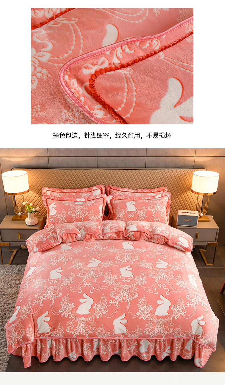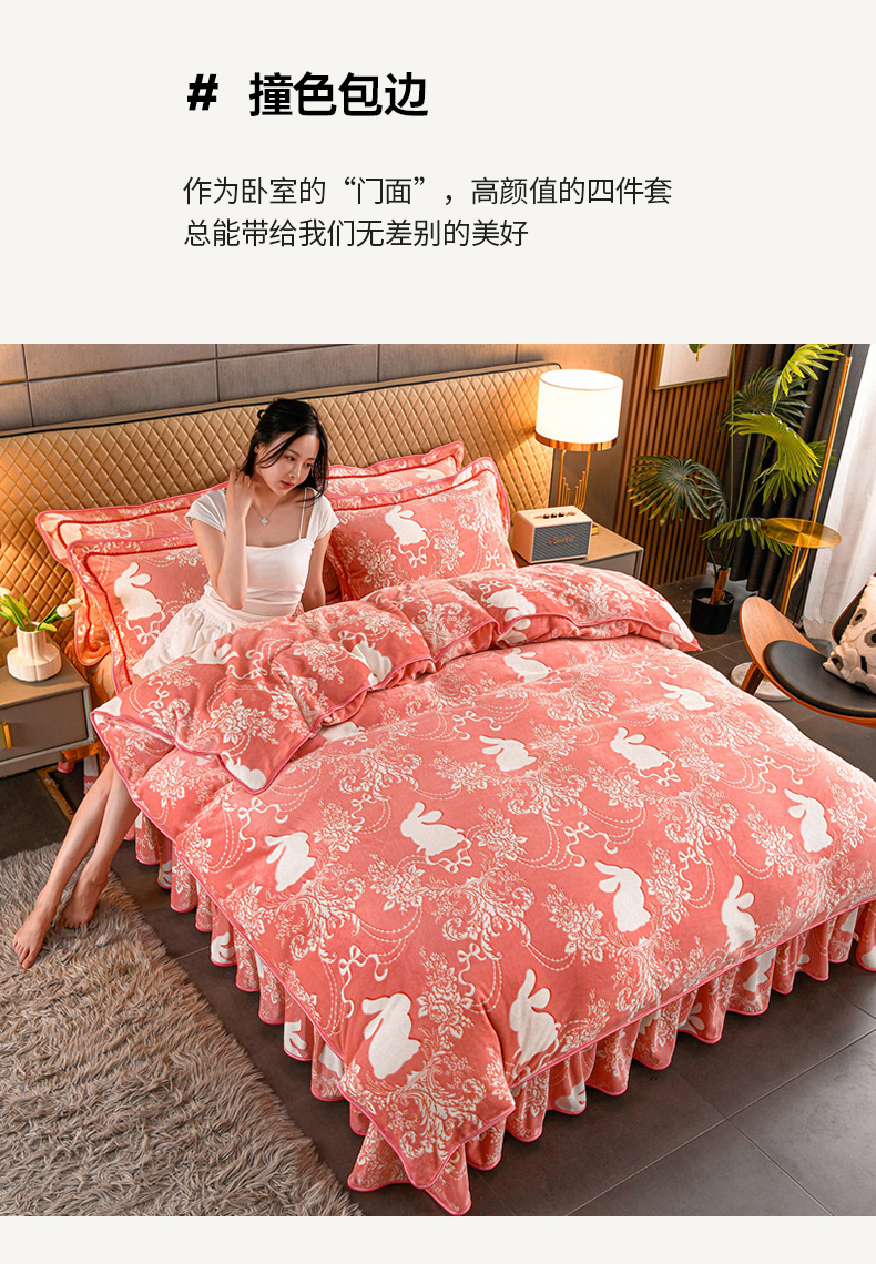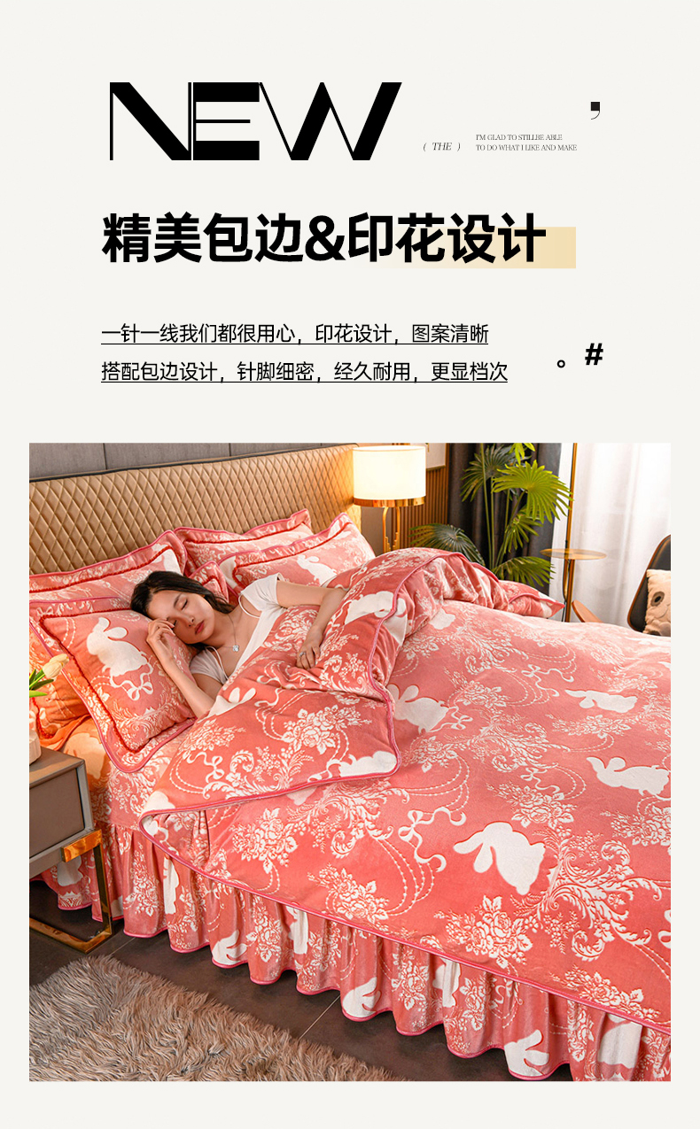 商品名称:牵依 2025新款牛奶绒小包边印花四件套 半夏时光-浅粉