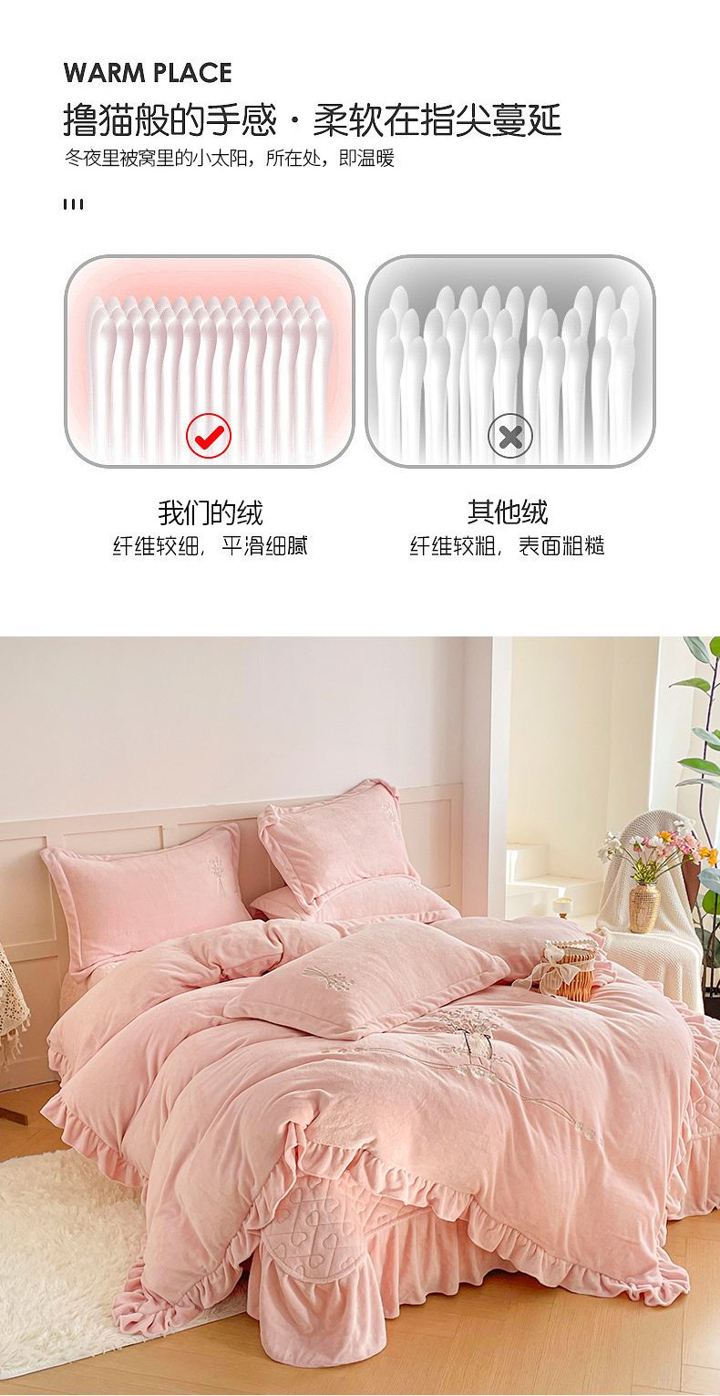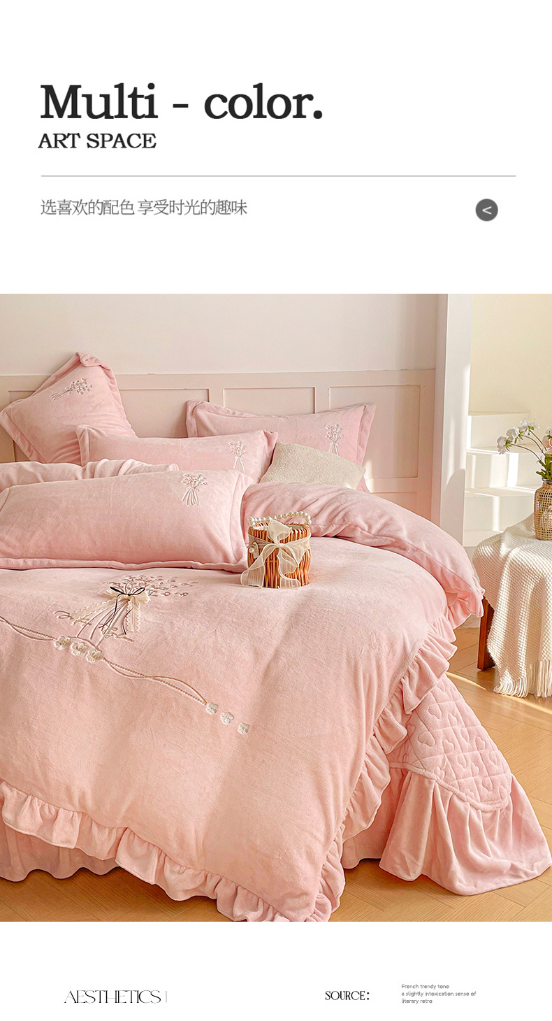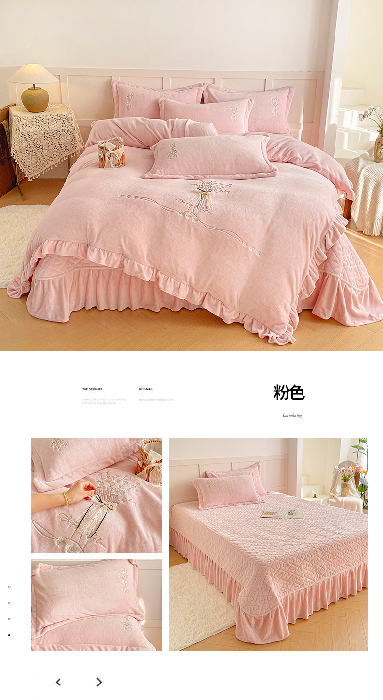(总)金绣美居 2025新款卡通贴布绣款牛奶绒四件套-公主,公主粉,公主蓝