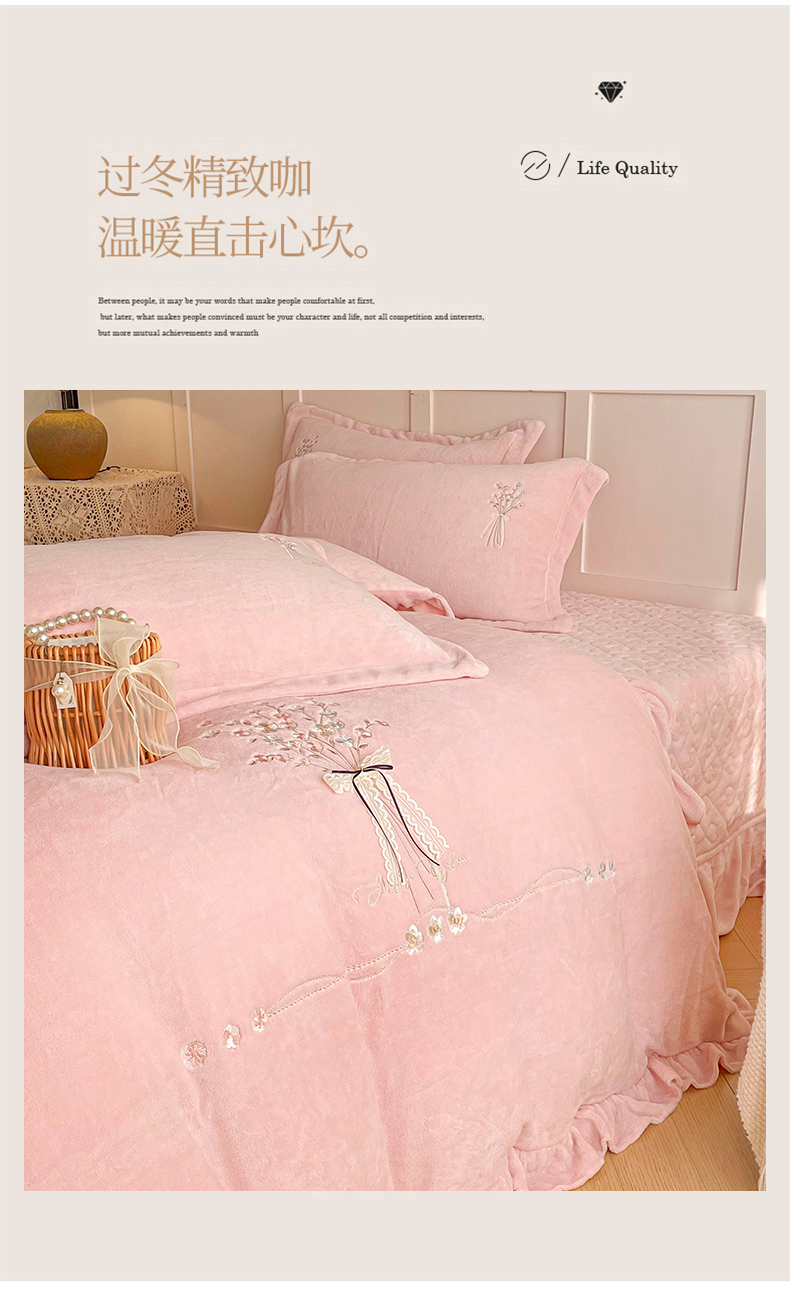 (总)金绣美居 2025新款加厚牛奶绒韩版床盖款绣花手工花保暖四件套-花弄影,花弄影-牛奶粉,花弄影-浅湖蓝,花弄影-新媚紫,花弄影-奶昔色
