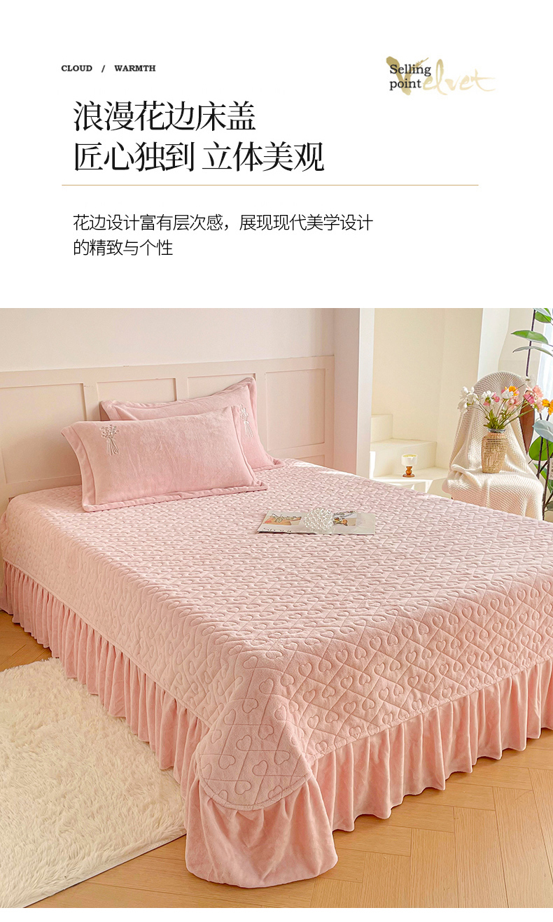 (总)金绣美居 2025新款加厚牛奶绒韩版床盖款绣花手工花保暖四件套-白茶