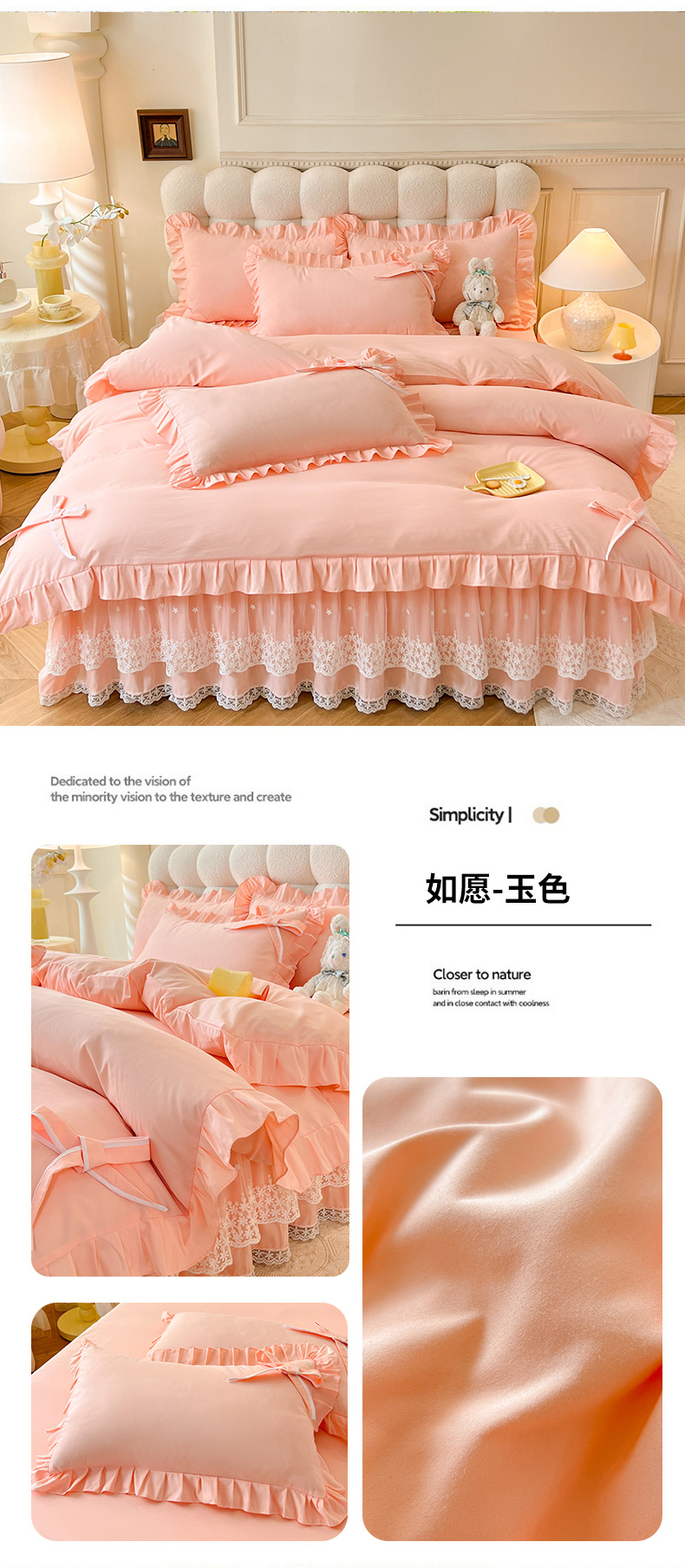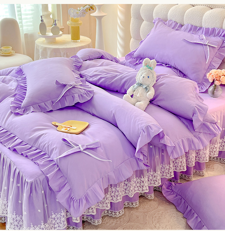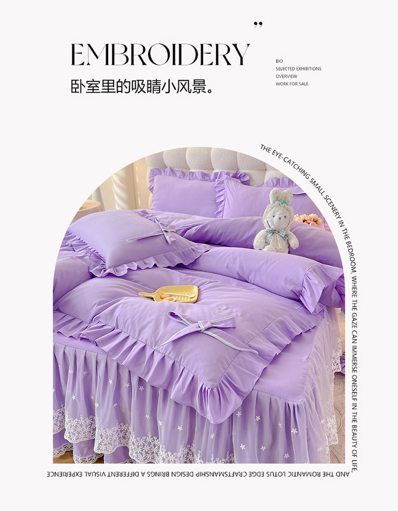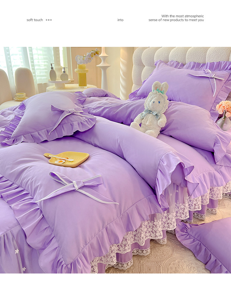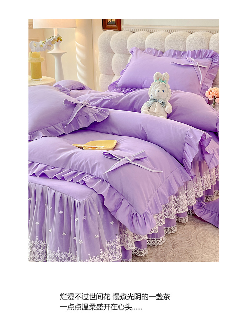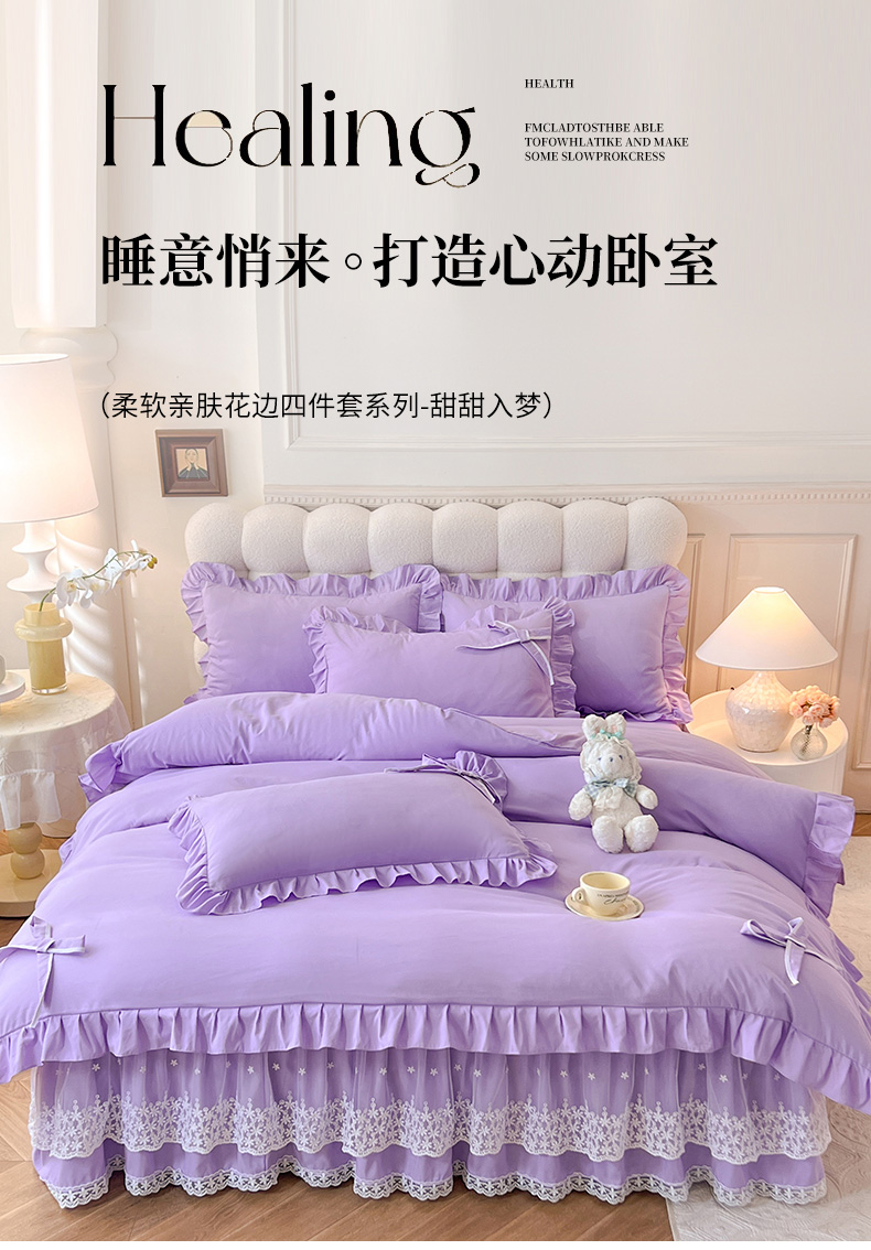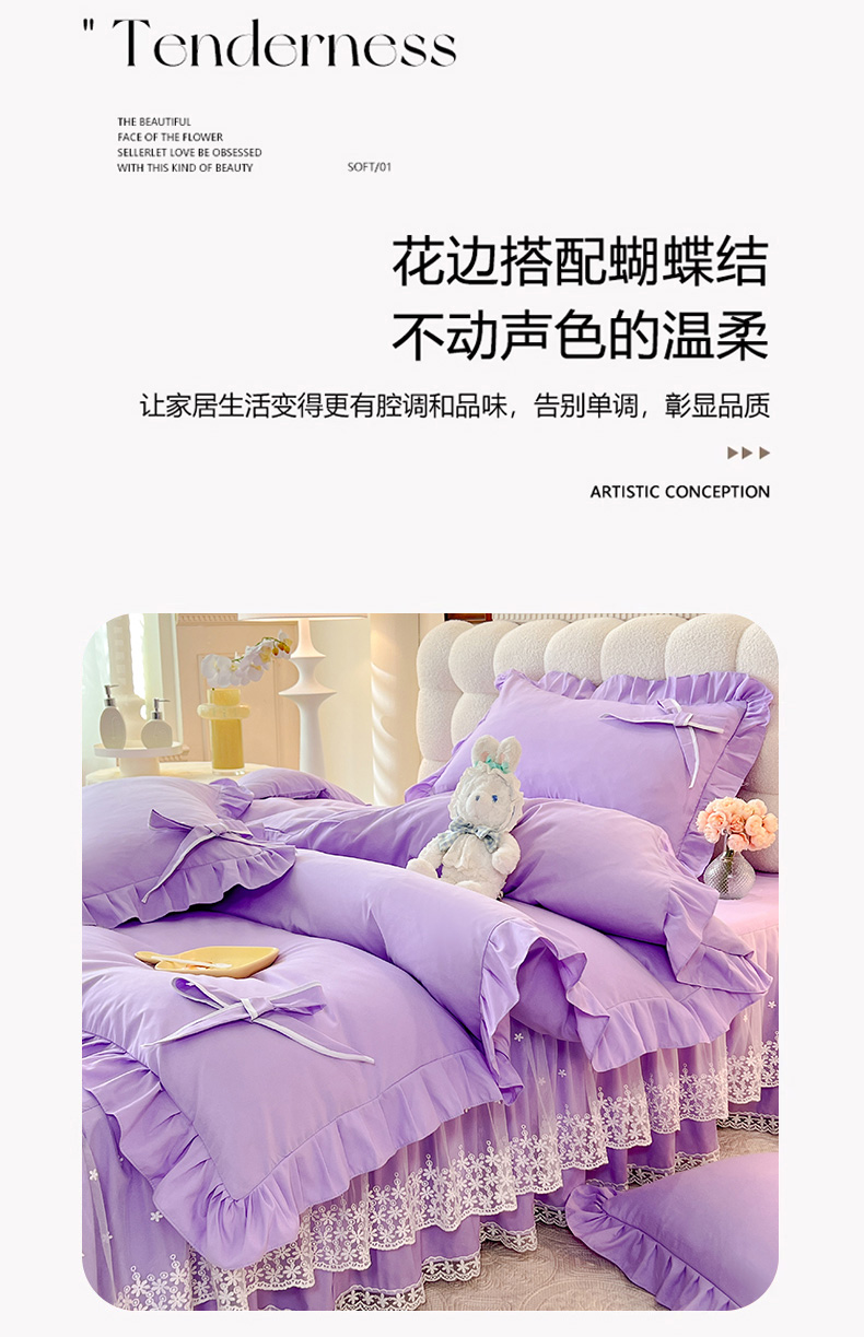 后庭寝室 2025新款亲肤舒适柔软亲肤花边蝴蝶结四件套-如愿 如愿-浅紫