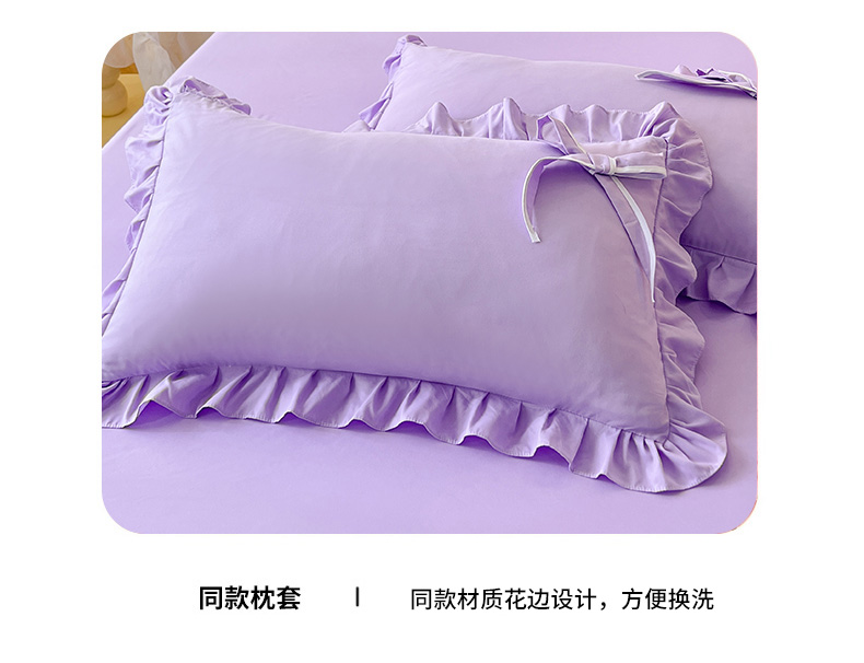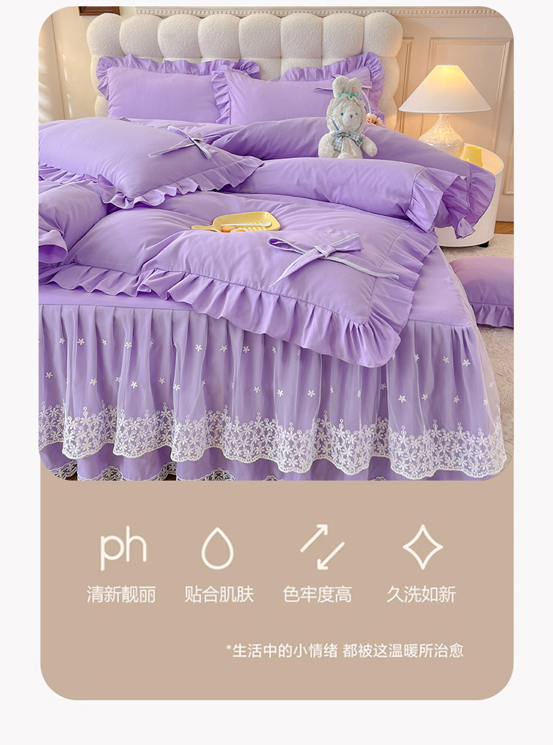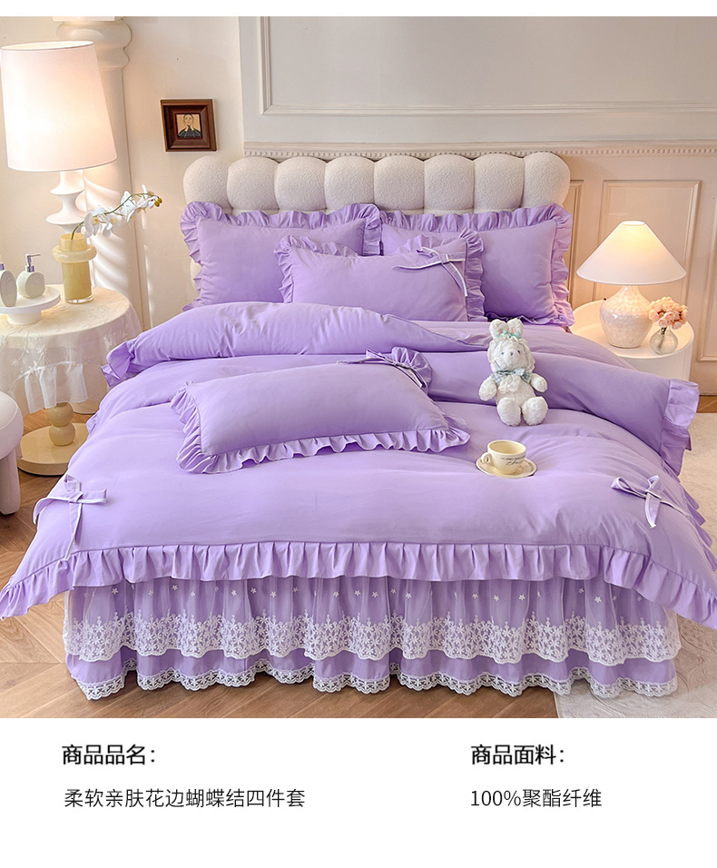 商品名称:后庭寝室 2025新款亲肤舒适柔软亲肤花边蝴蝶结四件套-如愿 如愿-浅紫
