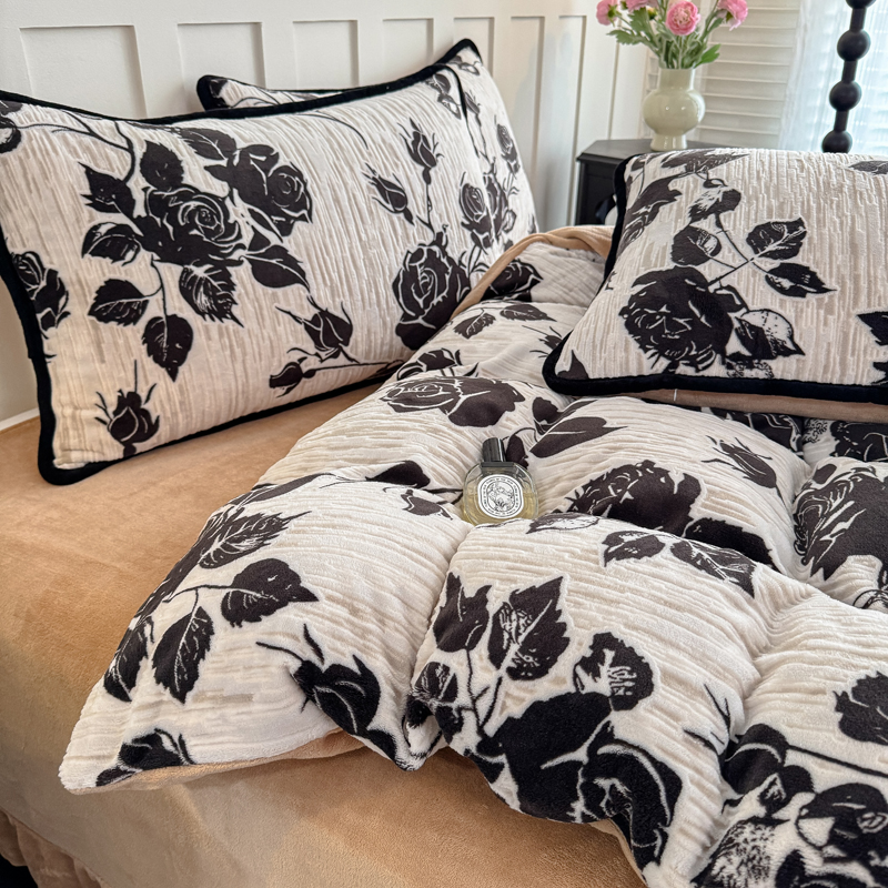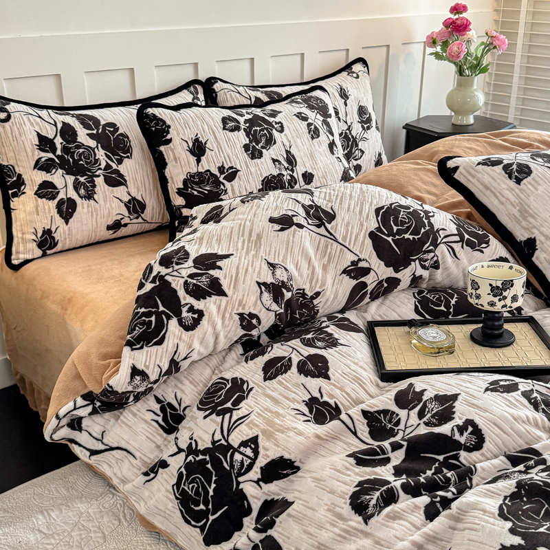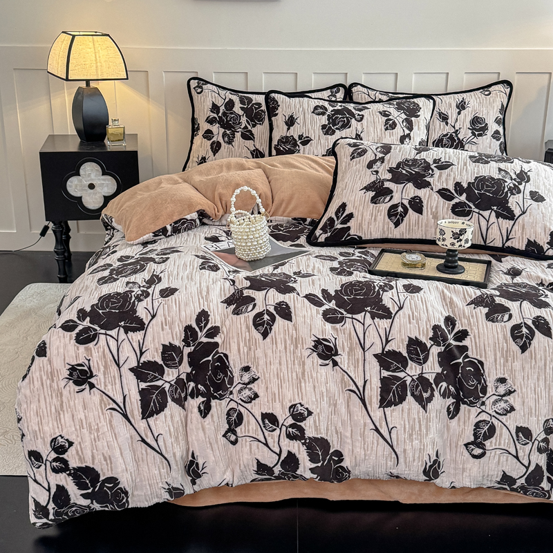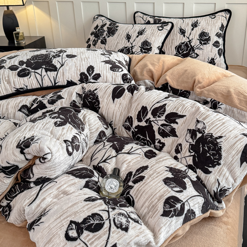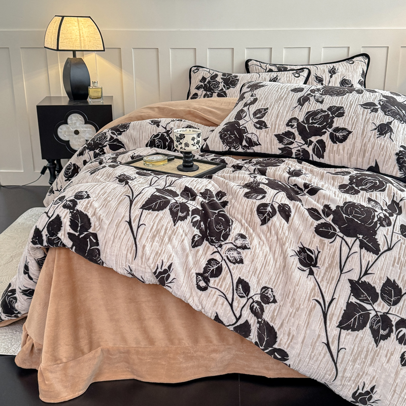 赛丽雅 2025新款包边雕花烂花牛奶绒四件套 夜伴花香