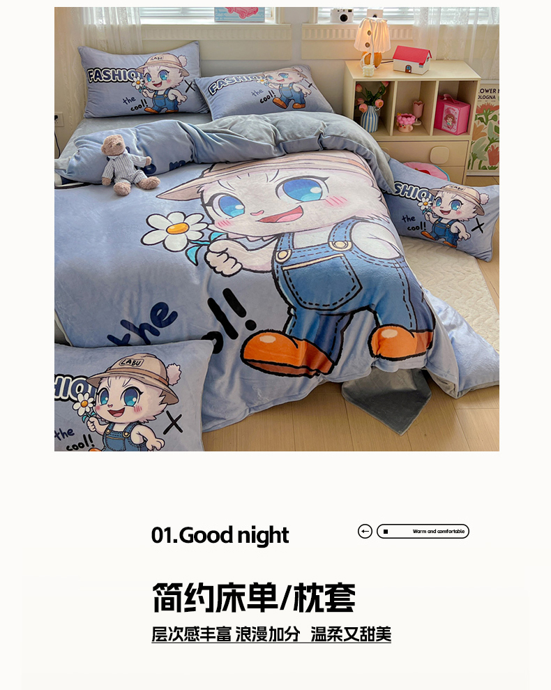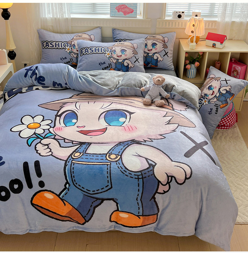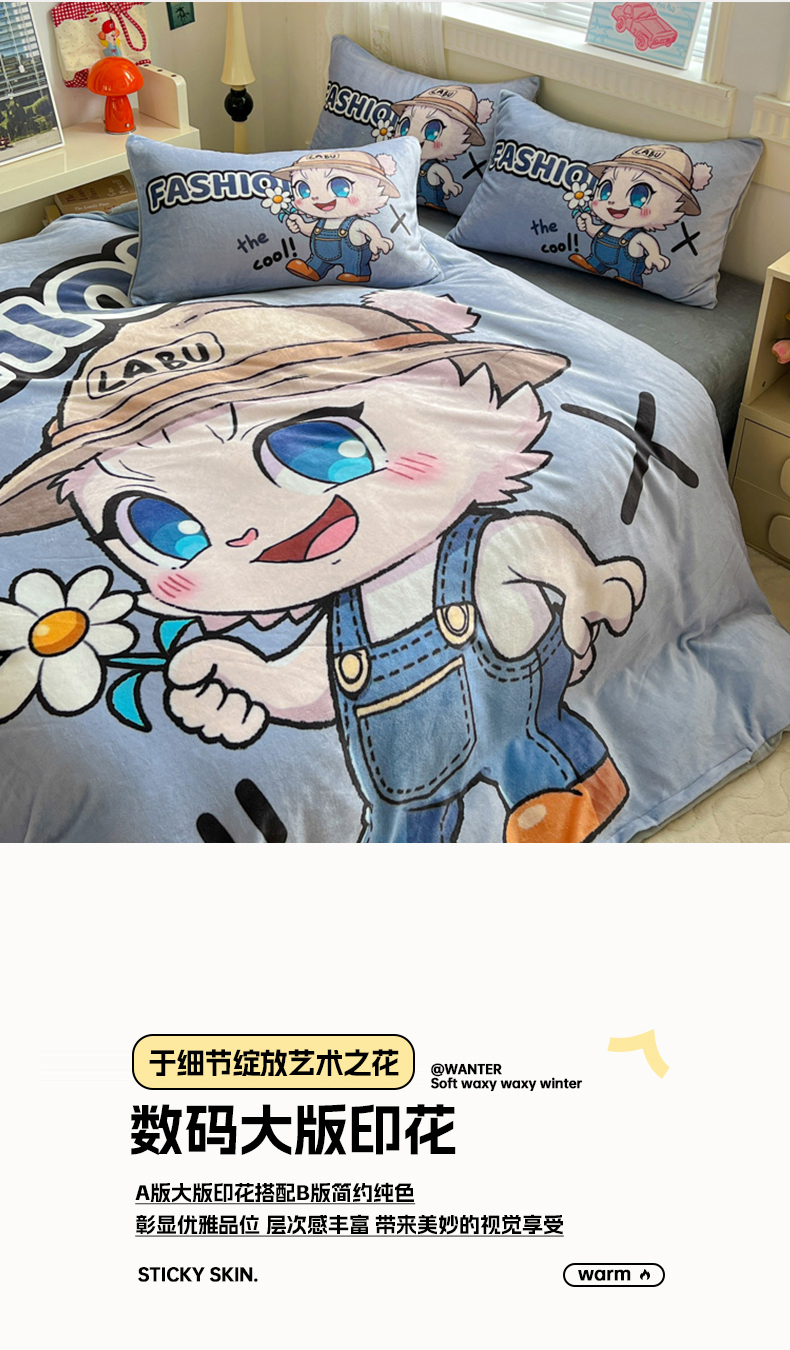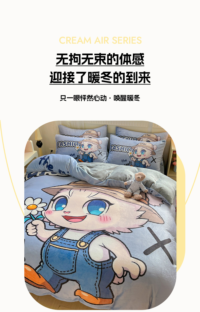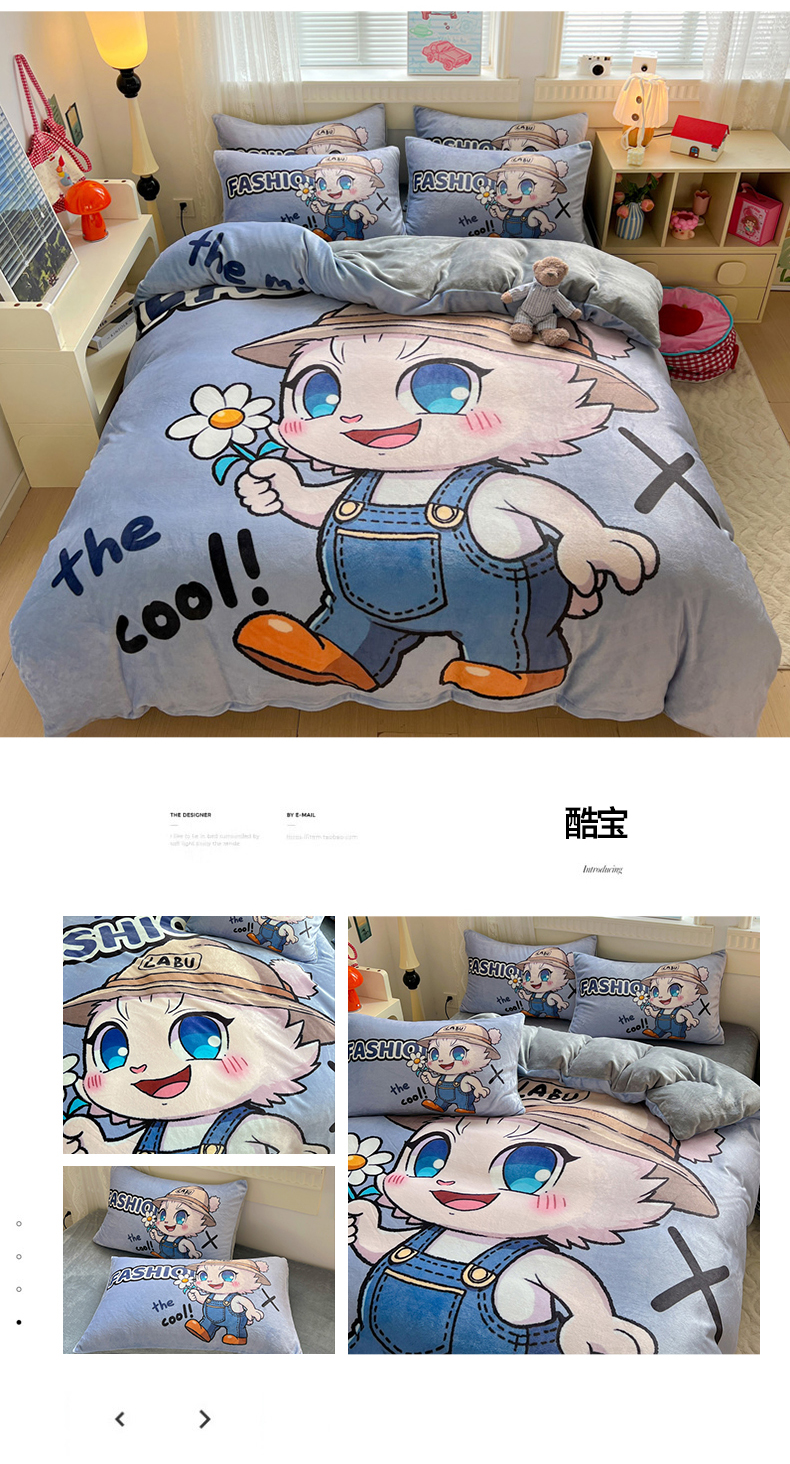 商品名称:喜梦缘 2025年新款大版小版卡通牛奶绒四件套 酷宝