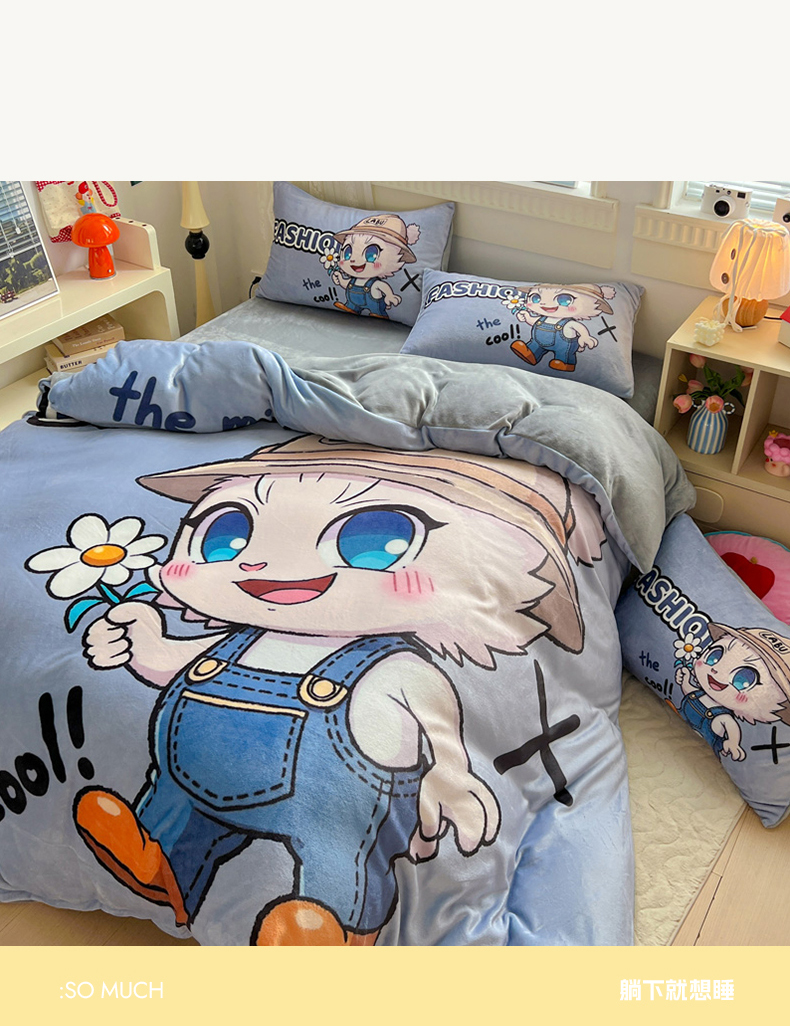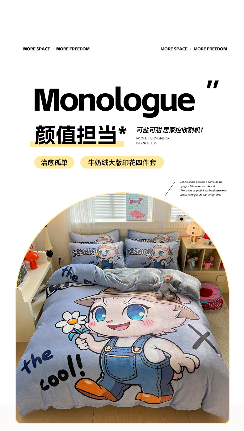 喜梦缘 2025年新款大版小版卡通牛奶绒四件套 酷宝