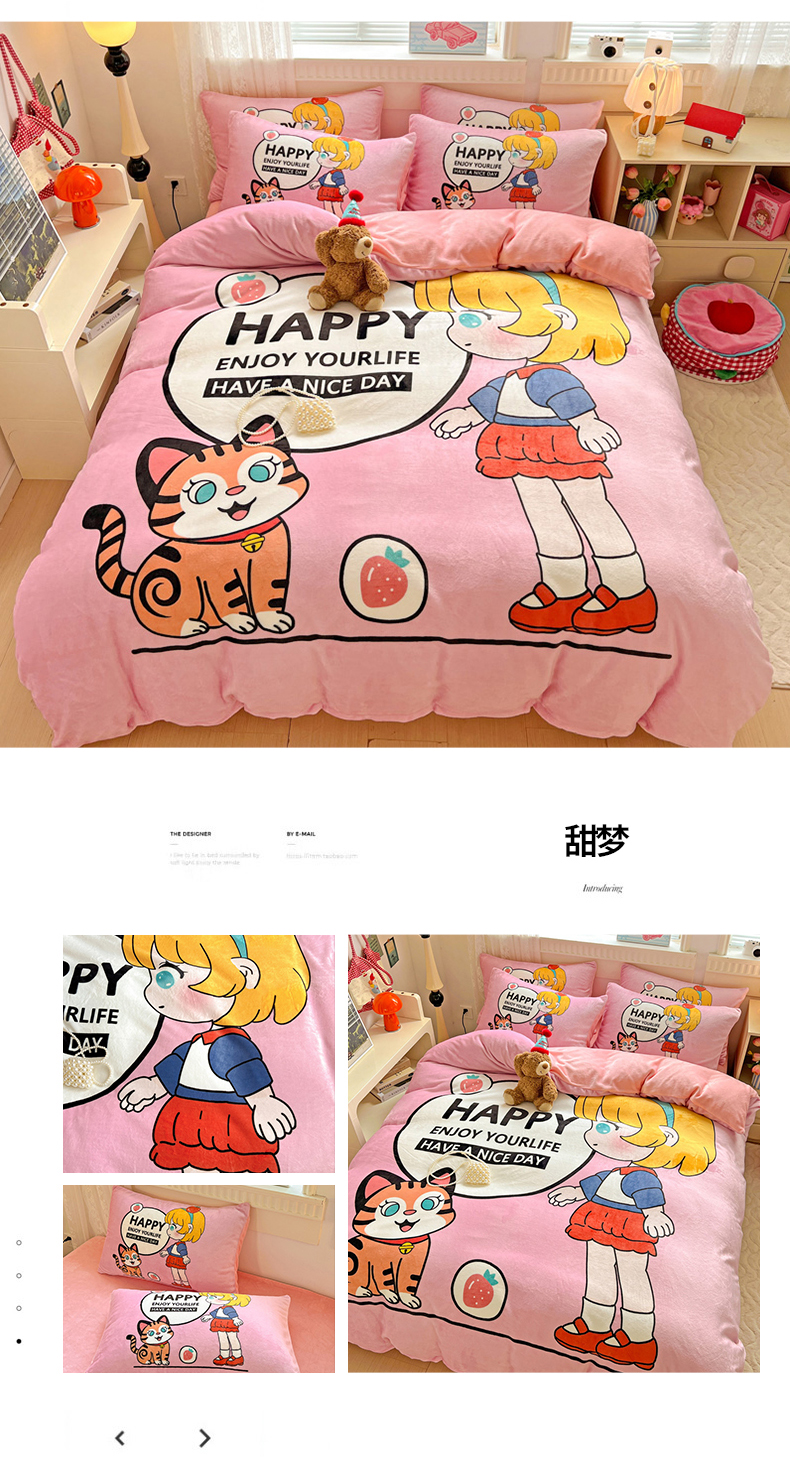 商品名称:喜梦缘 2025年新款大版小版卡通牛奶绒四件套 甜梦
