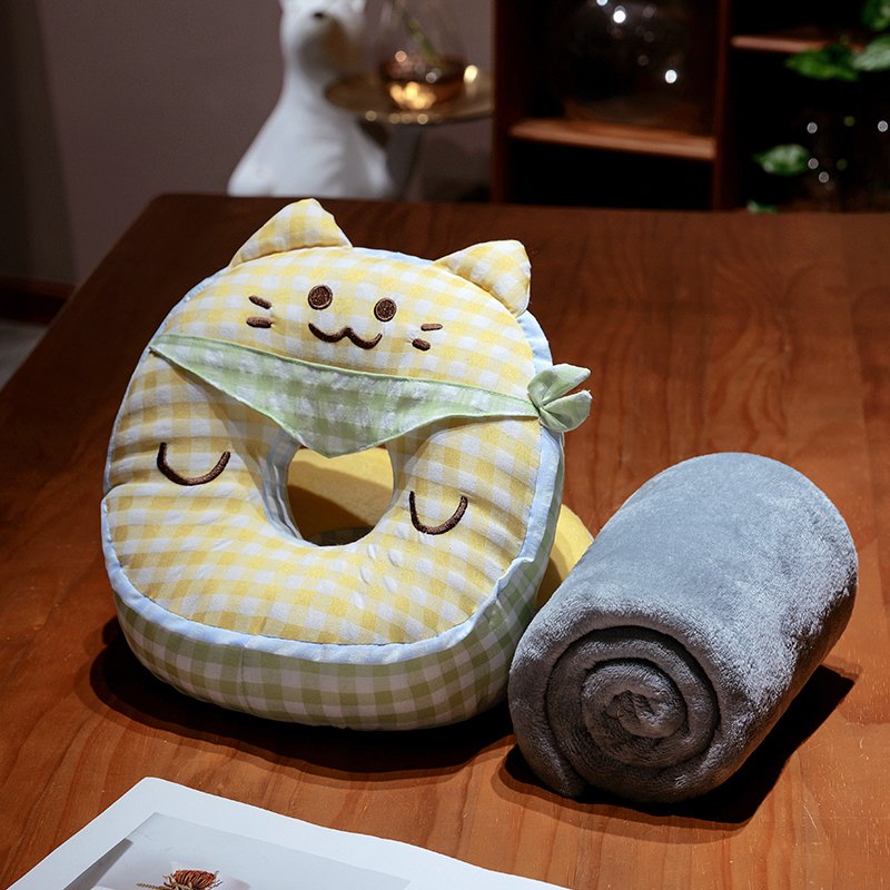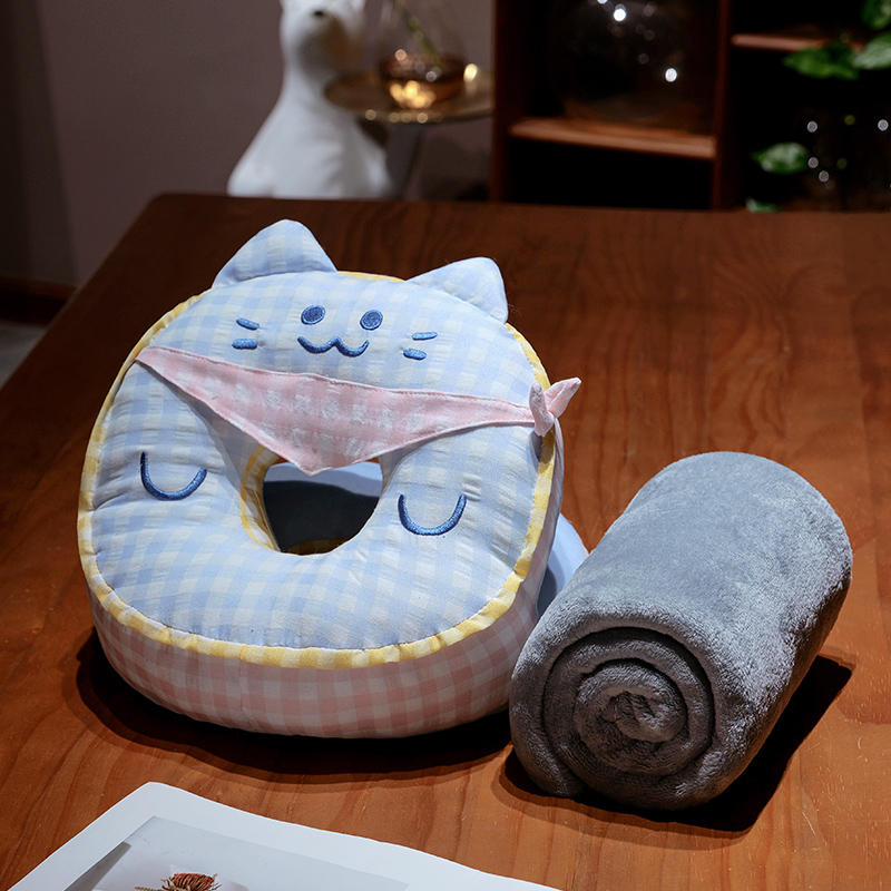 商品名称:仟亿莱 2025新款泡泡纱方巾格子喵双面午睡枕 枕头枕芯 双面方巾蓝猫