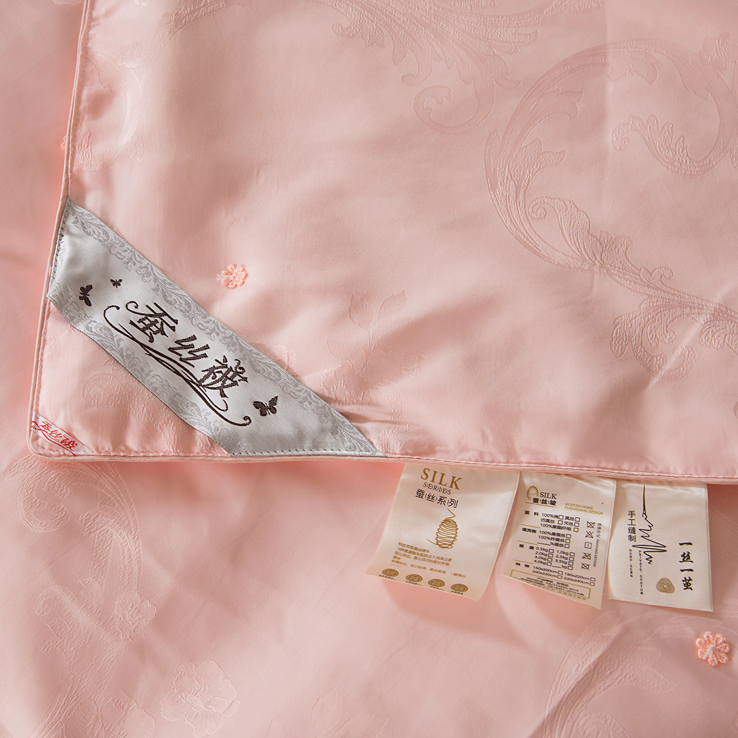 (总)鑫田家纺 2025新款100%桑蚕丝填充蚕丝被夏凉被高档提花面料,白色,绿色,粉色