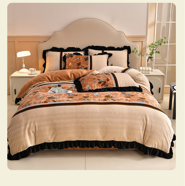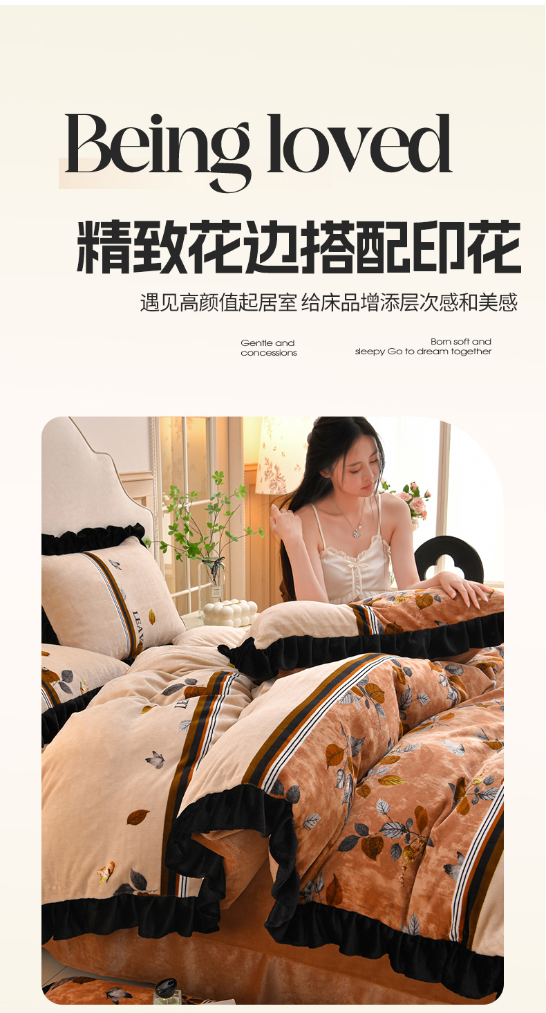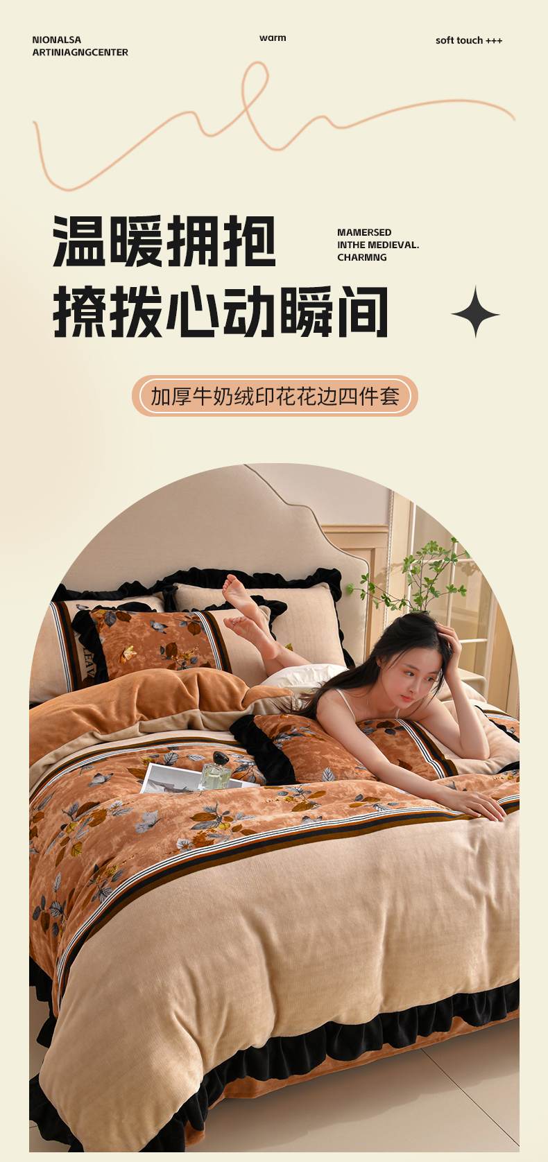 (总)曼尼 2025新款韩版花边牛奶绒四件套
