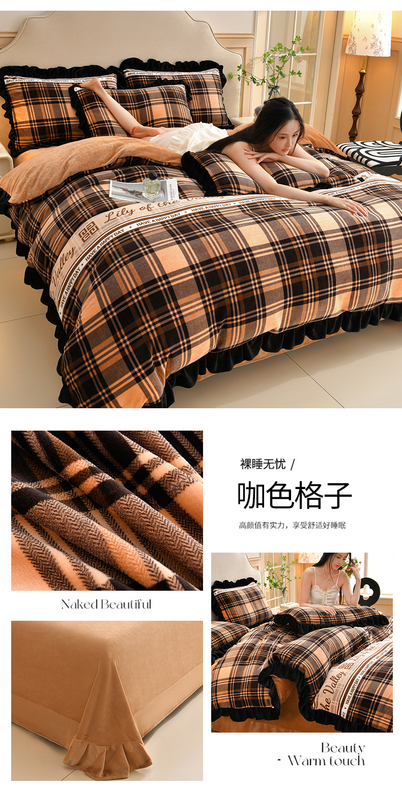商品名称:(总)曼尼 2025新款韩版花边牛奶绒四件套