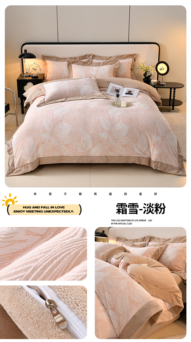 湘雪家居 2025新款高克重雕花牛奶绒四件套 霜雪款-粉玉色