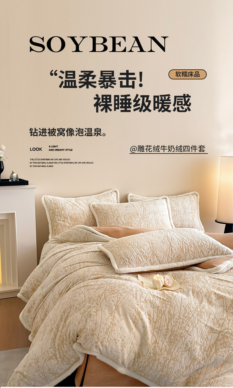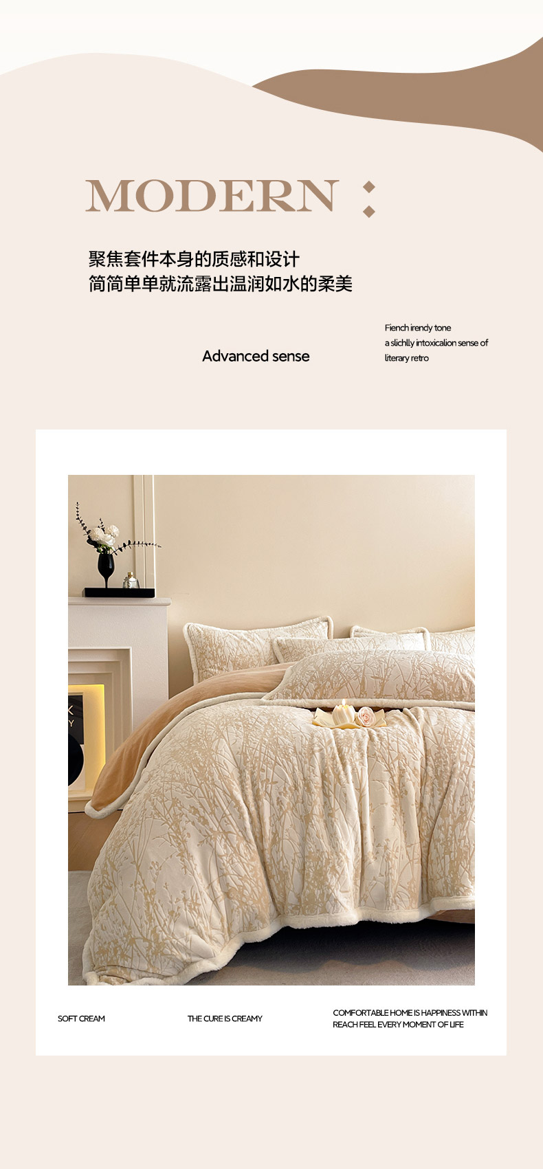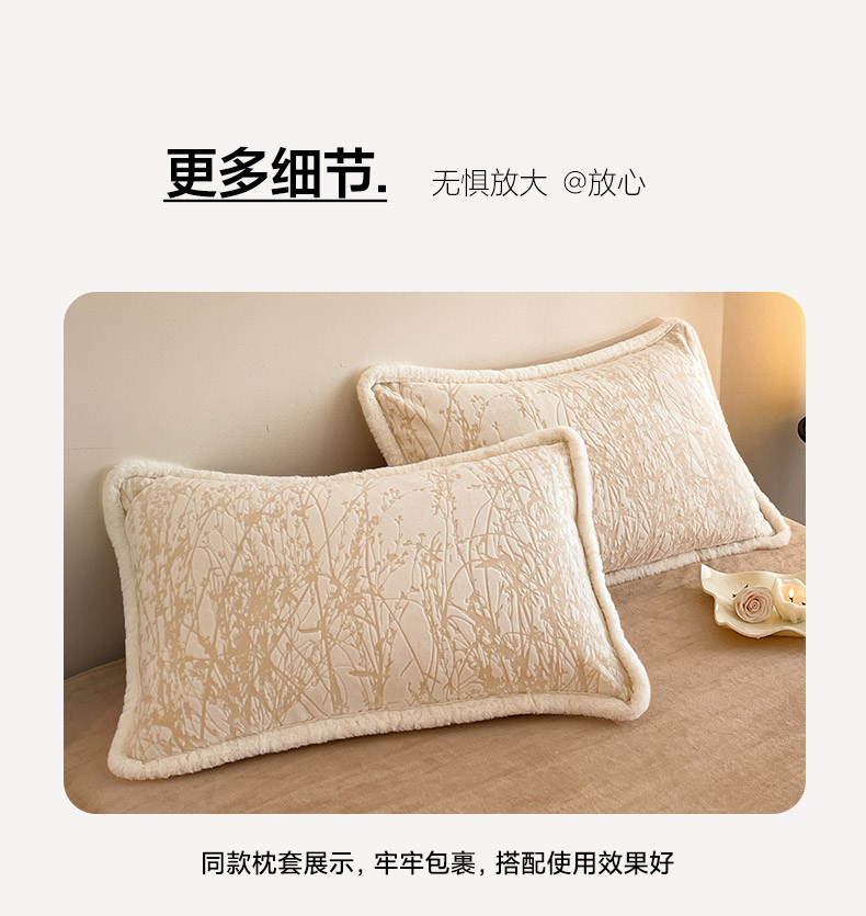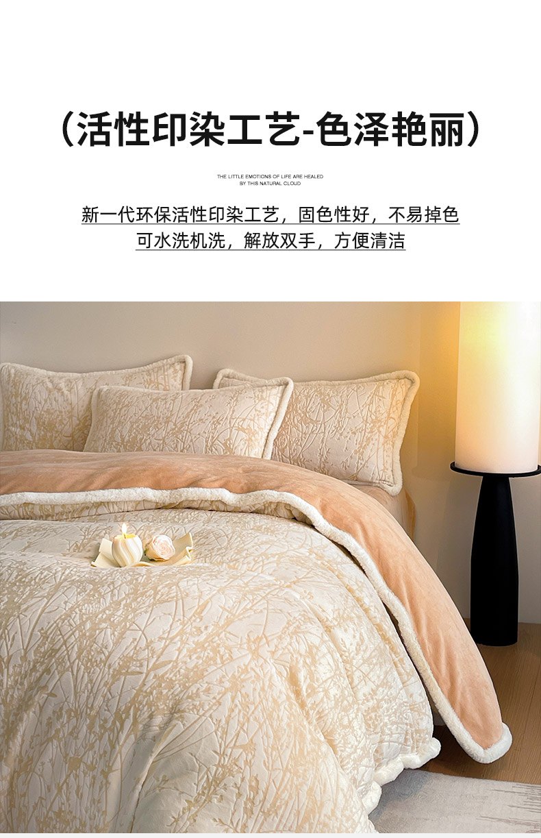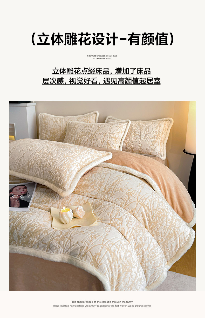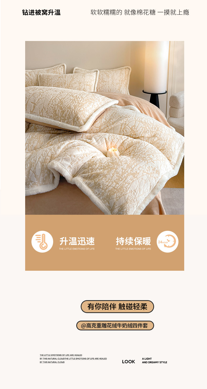 (总)吾诺 兔毛边230克雕花牛奶绒四件套 - 秋意系列,朝花,紫叶,花海,轻羽,飞花,秋意,冬梅,华美,春野