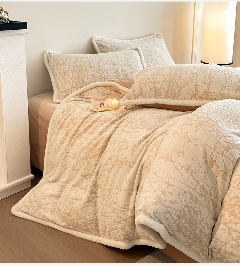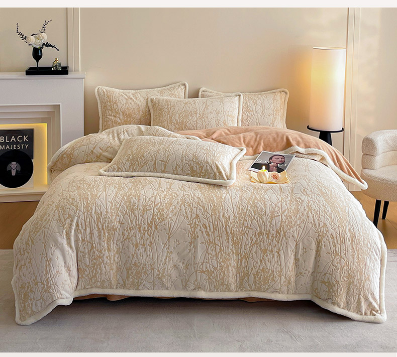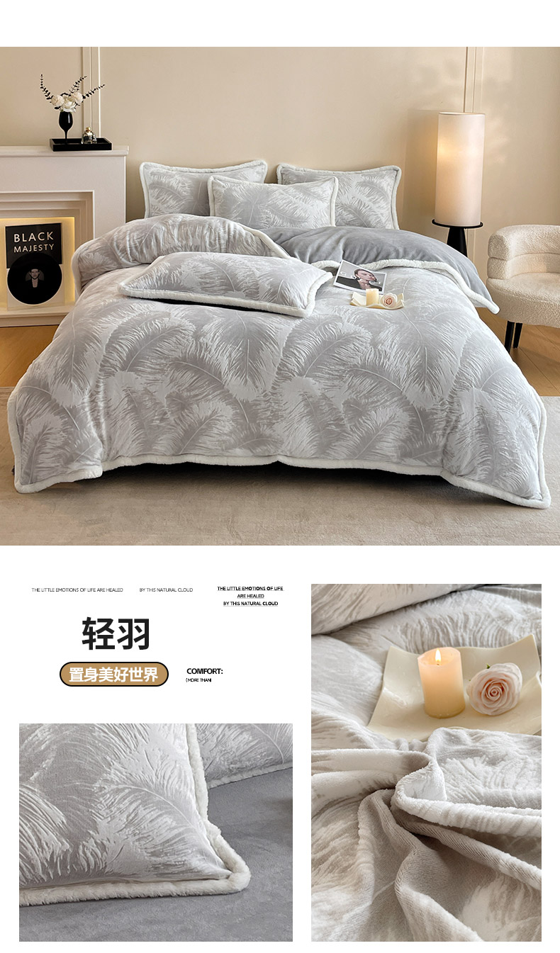吾诺家居 230克兔毛边雕花绒四件套-秋意系列 秋意