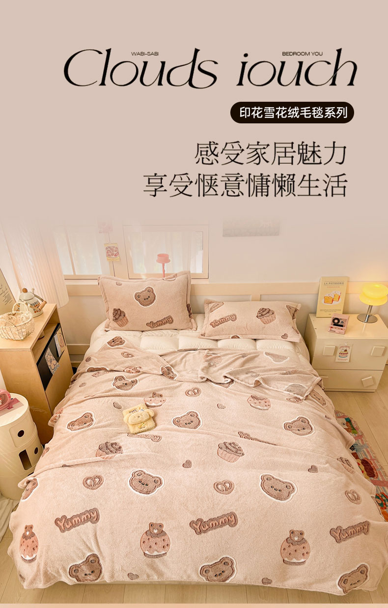 当前位置: 91家纺网 > 商品网购 > 毛毯休闲毯绒毯 > 毛毯 > 川悦生活 2025新款高克重双面雪花绒印花毛毯三件套 毛毯巧克力熊