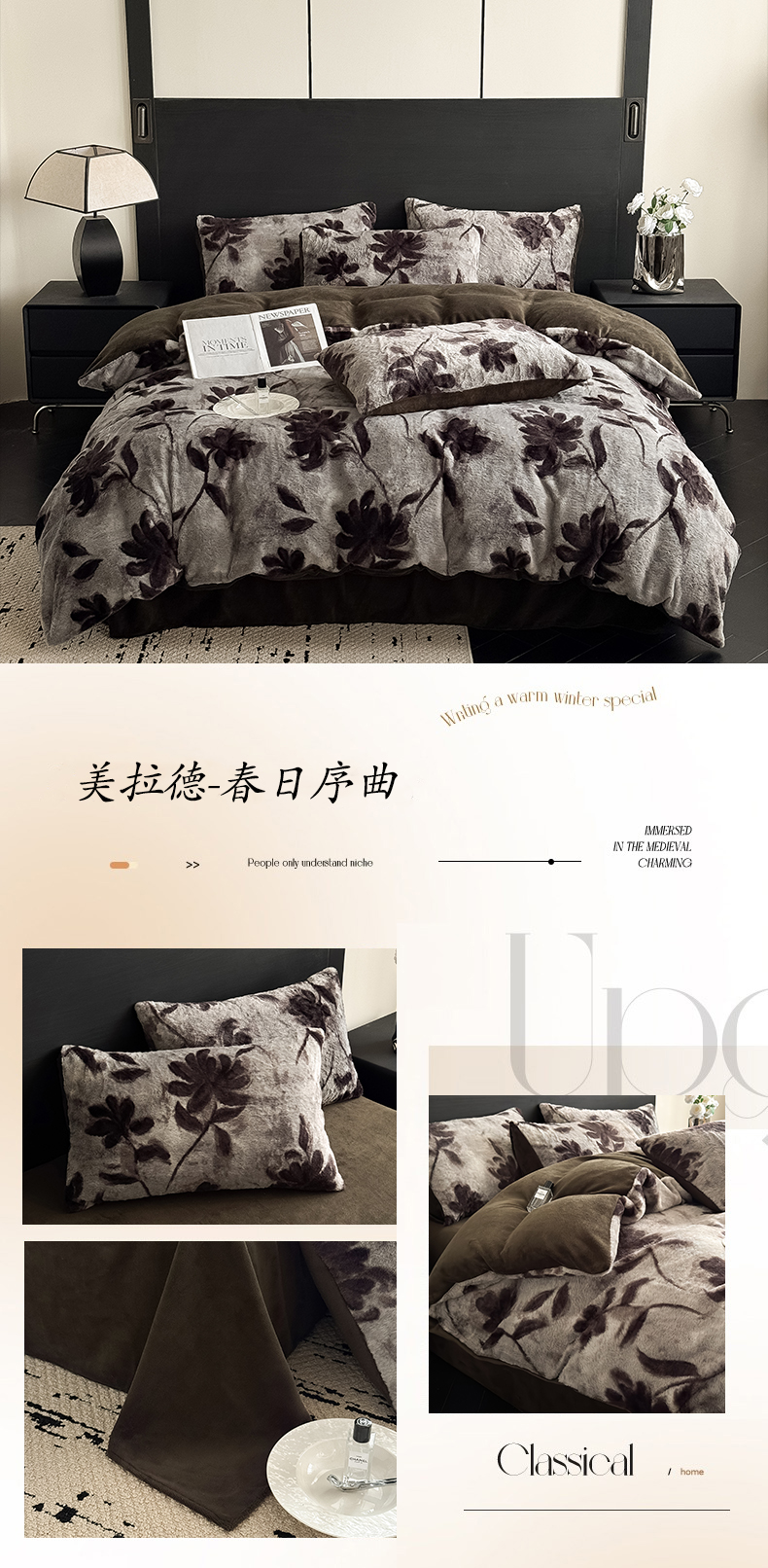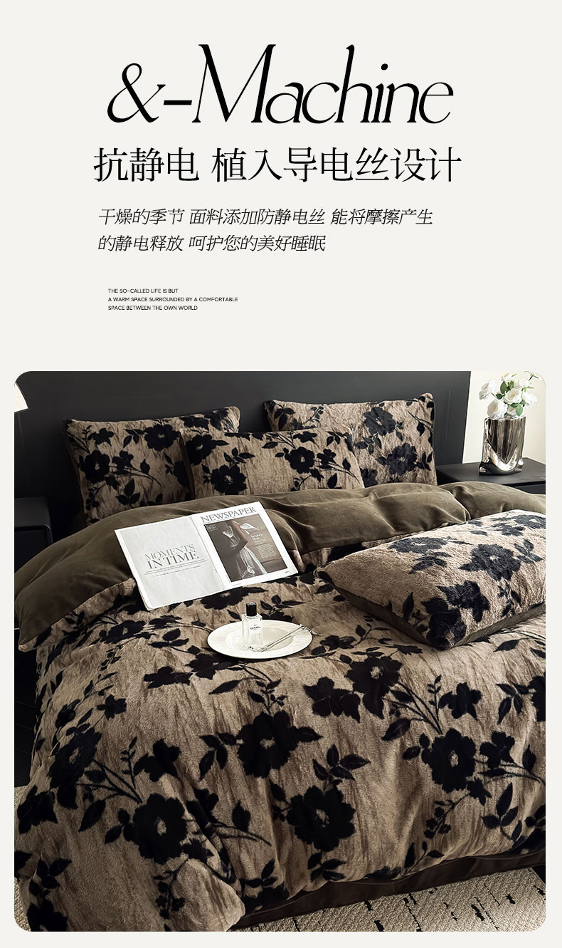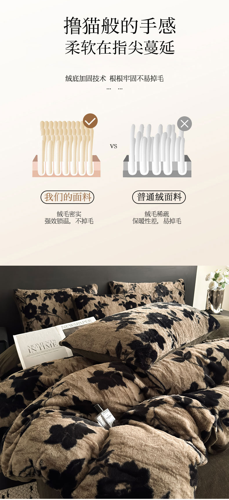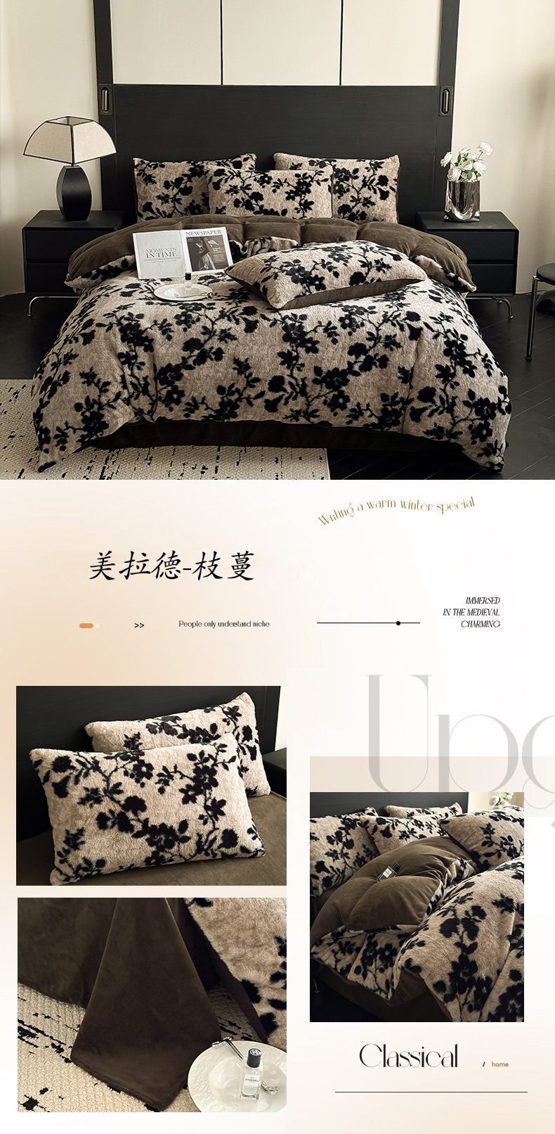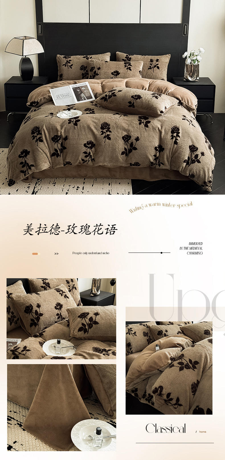商品名称:九花鹿 2025新款A类高克重兔毛绒保暖印花四件套美拉德-漫漫