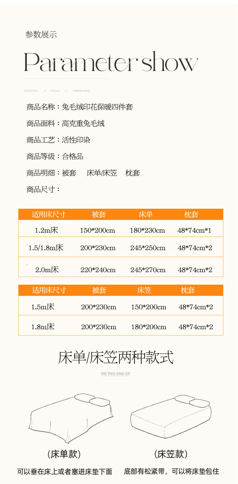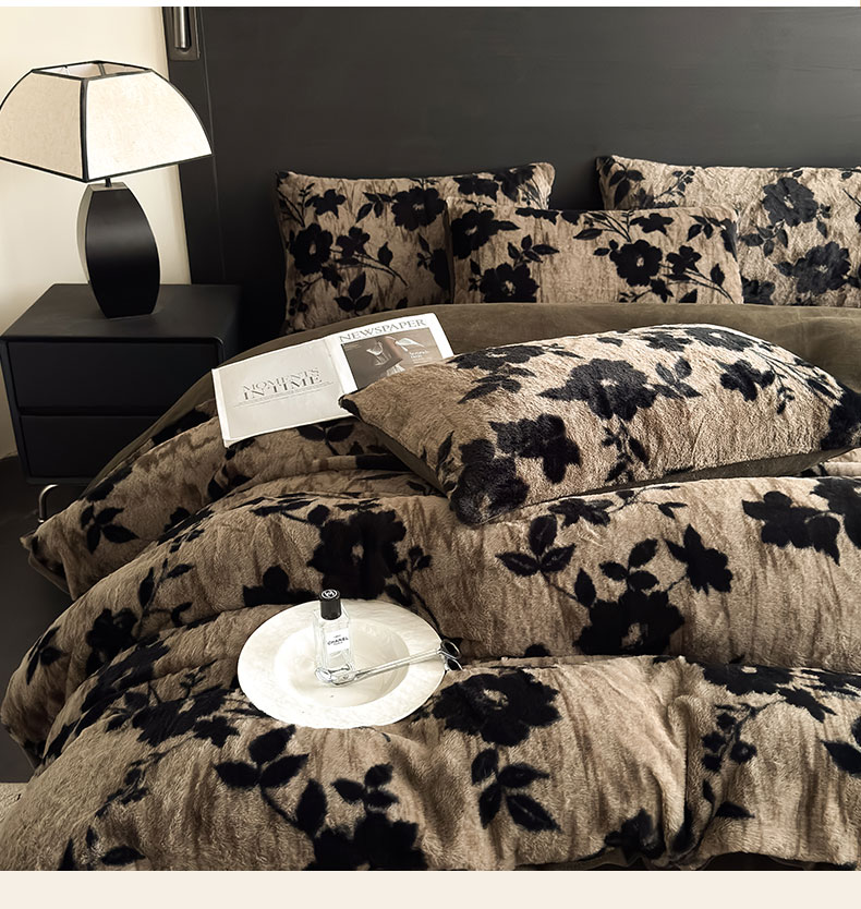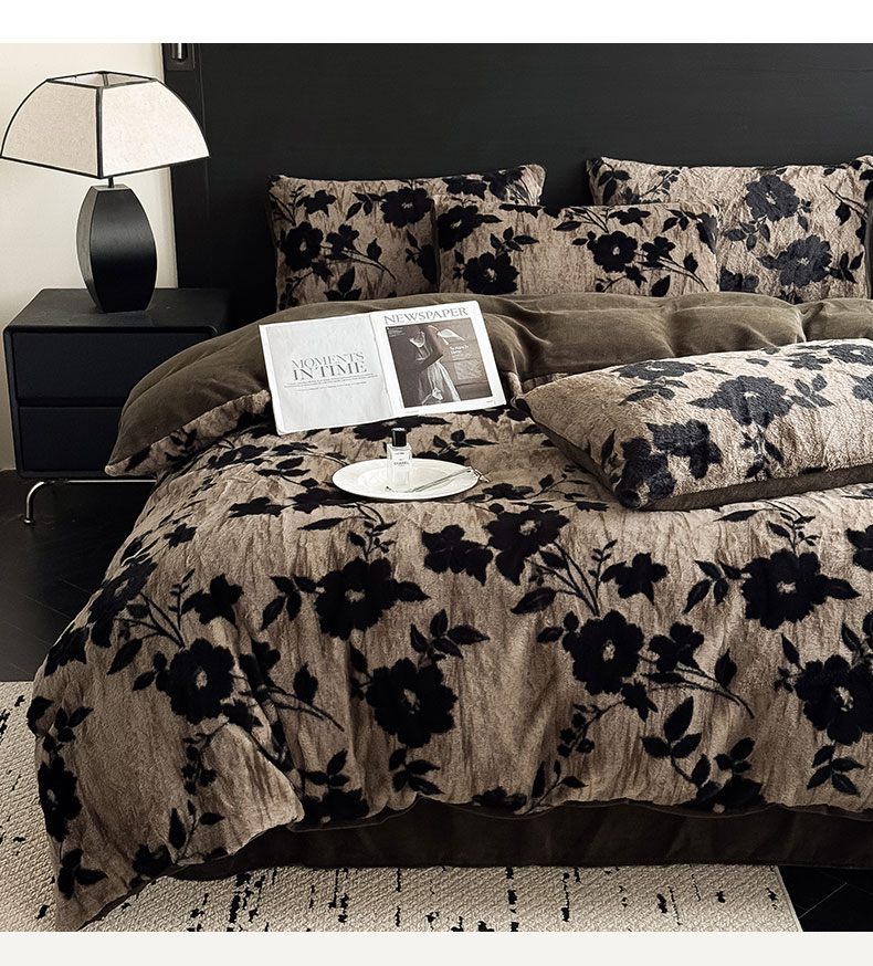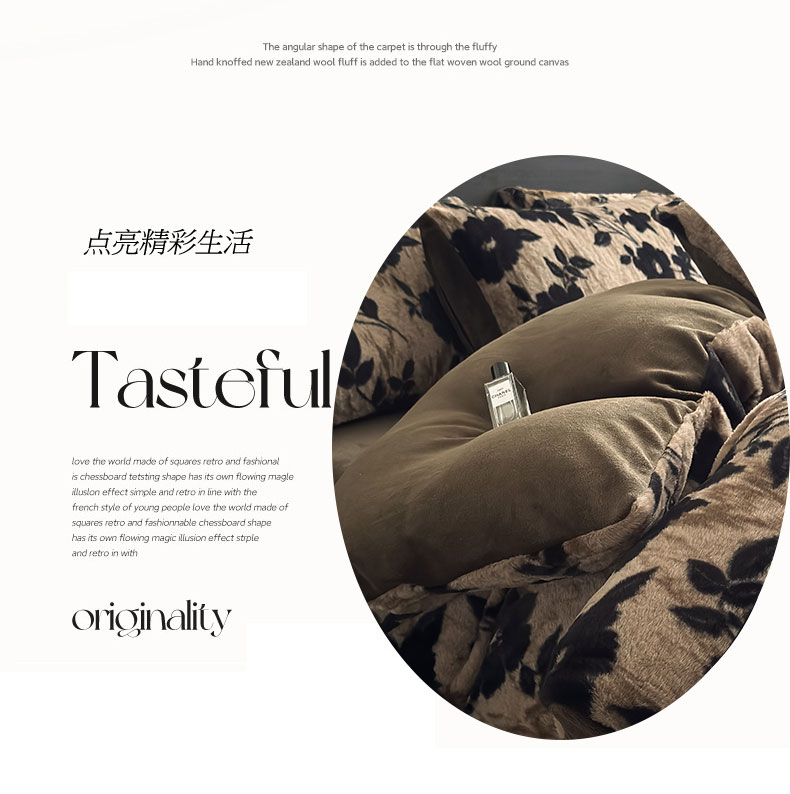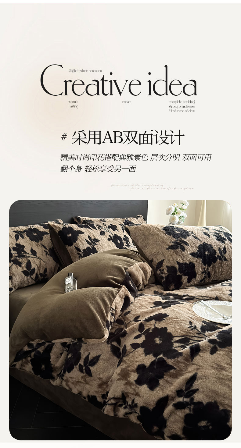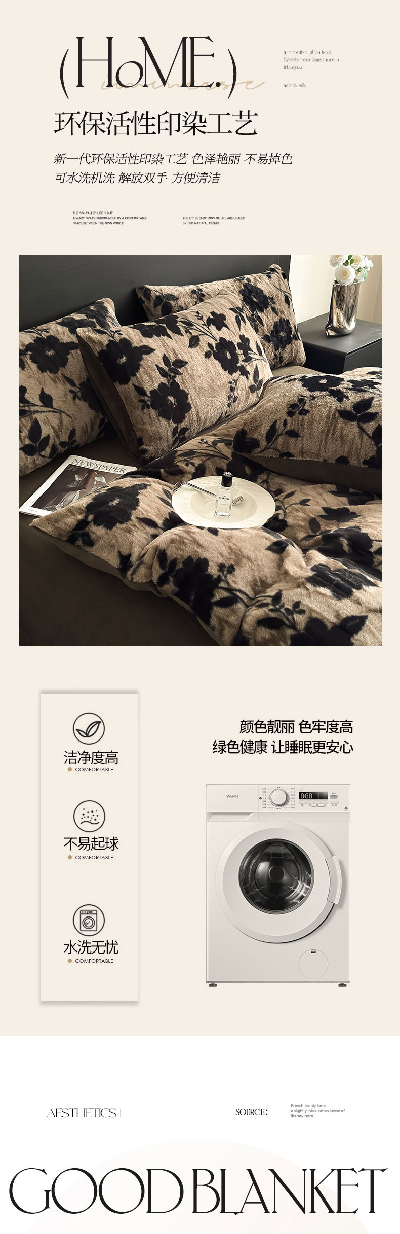 商品名称:九花鹿 2025新款A类高克重兔毛绒保暖印花四件套美拉德-漫漫