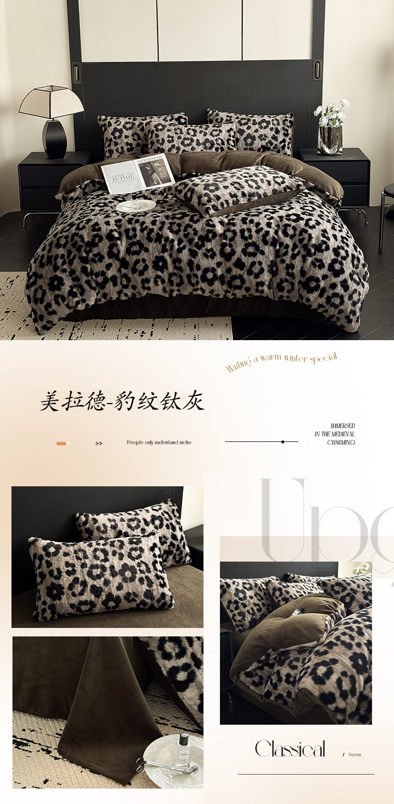 (总)九花鹿 2025新款丹麦皮草绒水貂绒四件套,豹纹-粉,豹纹-灰,豹纹-咖