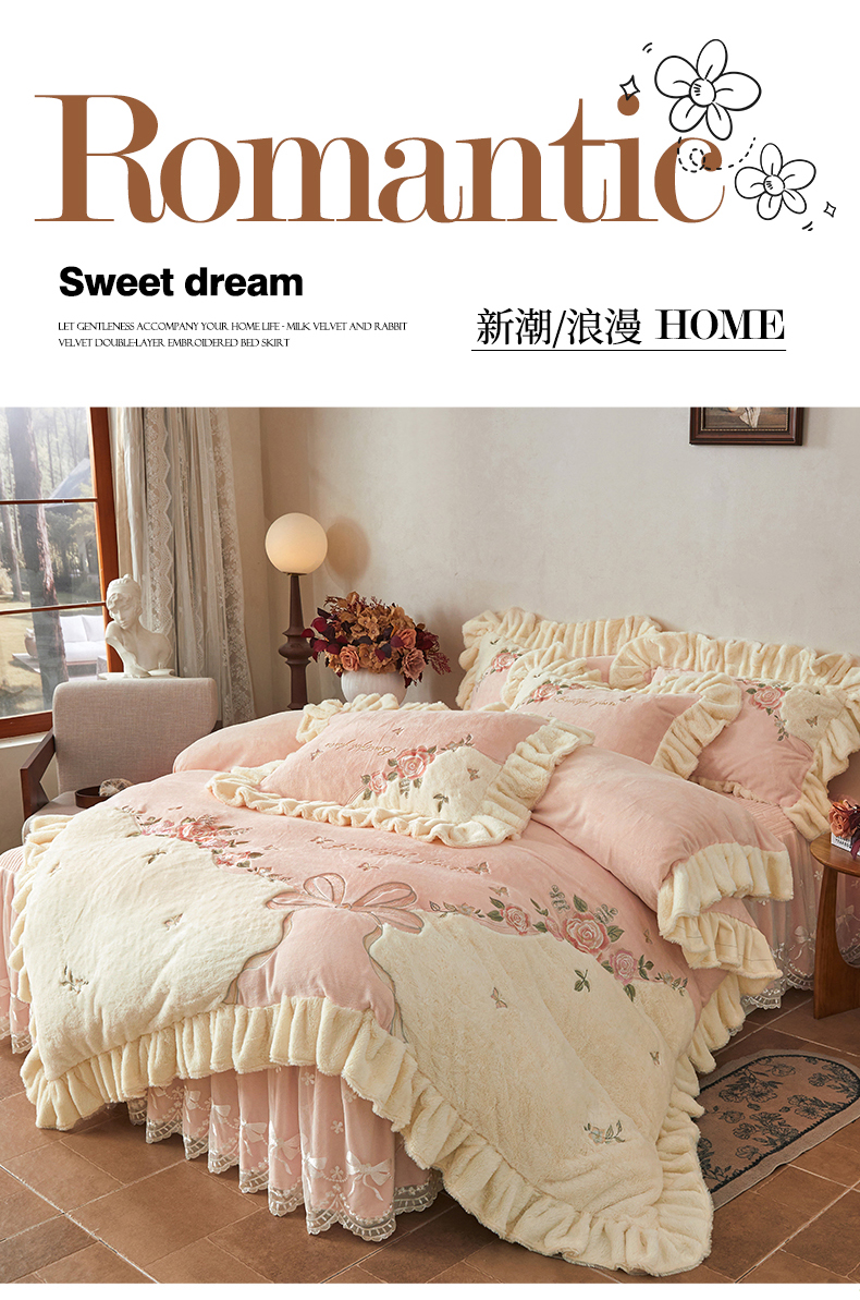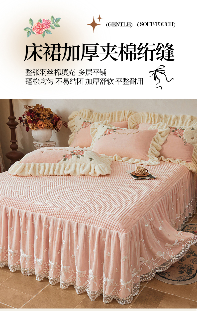 (总)宜凡家纺 2025新款兔绒提花牛奶绒夹棉床裙四件套,爱心 少女粉,爱心 粉紫,爱心 驼色,蝶舞 大红,蝶舞 米色,蝶舞 浅紫,蝶舞 玉色,简爱 苍青,简爱 豆沙紫,简爱 玉色,樱桃 苍青,樱桃 豆沙紫,樱桃 奶油白