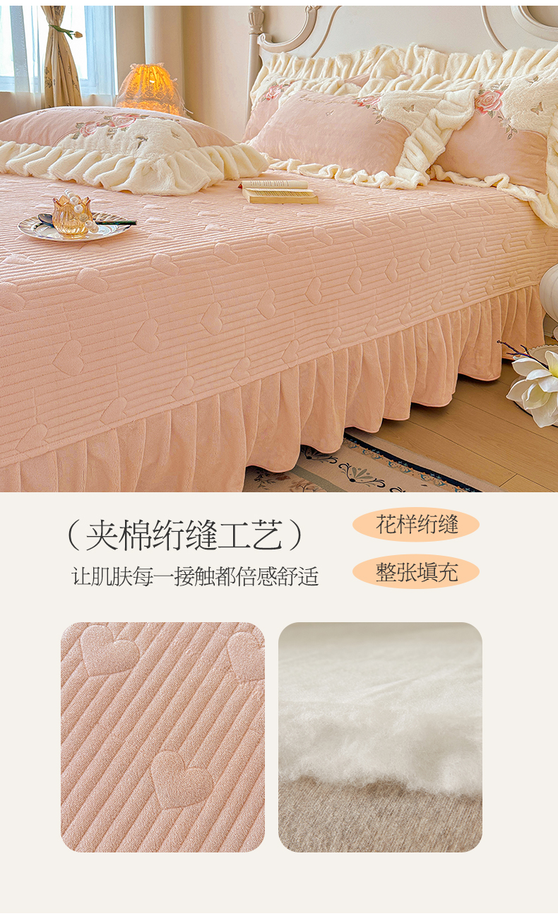 (总)宜凡家纺 2025新款兔绒提花牛奶绒夹棉床裙四件套,爱心 少女粉,爱心 粉紫,爱心 驼色,蝶舞 大红,蝶舞 米色,蝶舞 浅紫,蝶舞 玉色,简爱 苍青,简爱 豆沙紫,简爱 玉色,樱桃 苍青,樱桃 豆沙紫,樱桃 奶油白