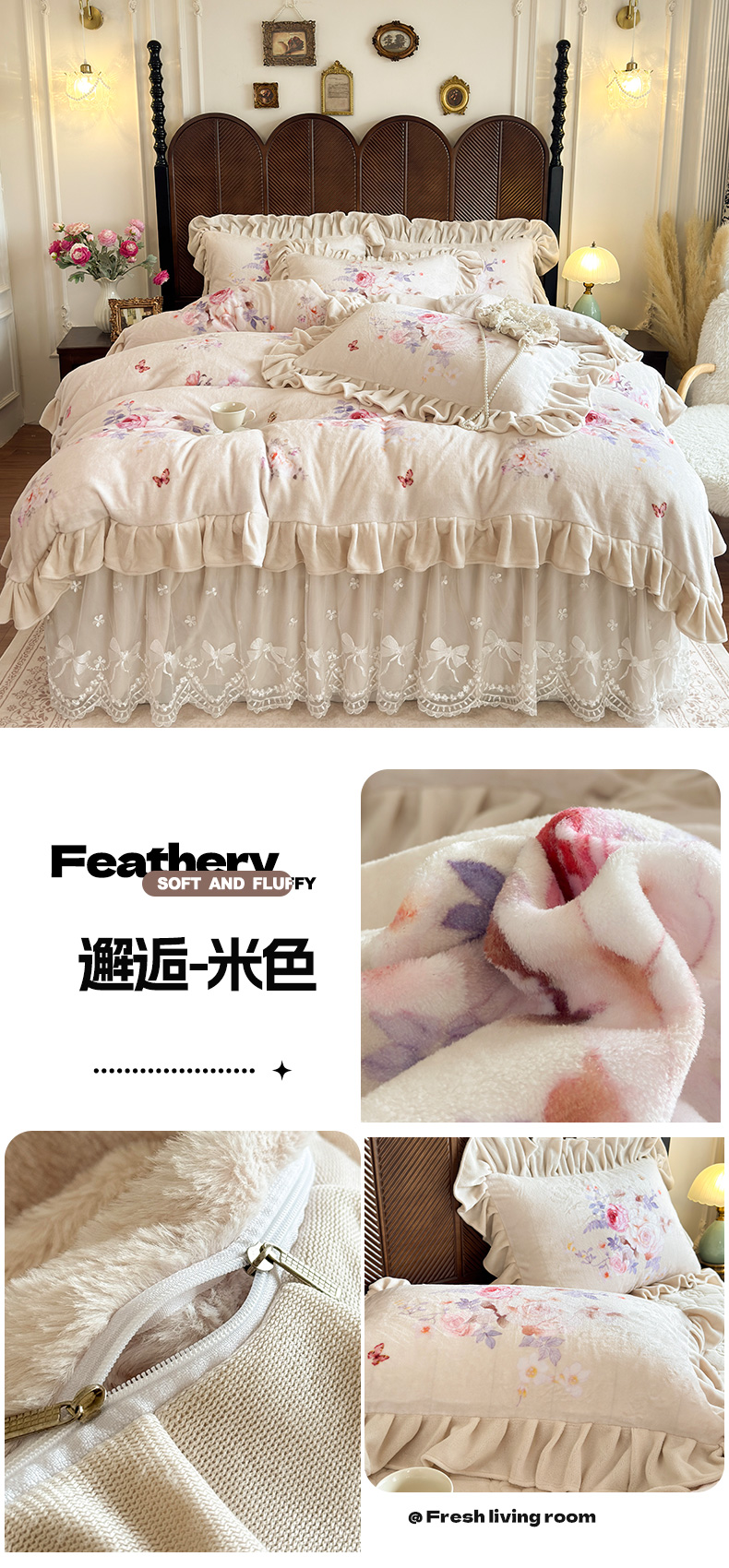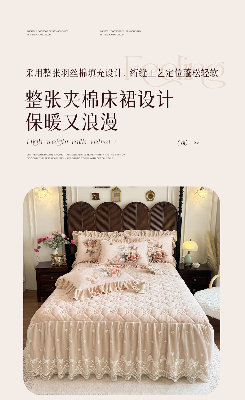 (总)宜凡家纺 2025新款兔绒提花牛奶绒夹棉床裙四件套,爱心 少女粉,爱心 粉紫,爱心 驼色,蝶舞 大红,蝶舞 米色,蝶舞 浅紫,蝶舞 玉色,简爱 苍青,简爱 豆沙紫,简爱 玉色,樱桃 苍青,樱桃 豆沙紫,樱桃 奶油白