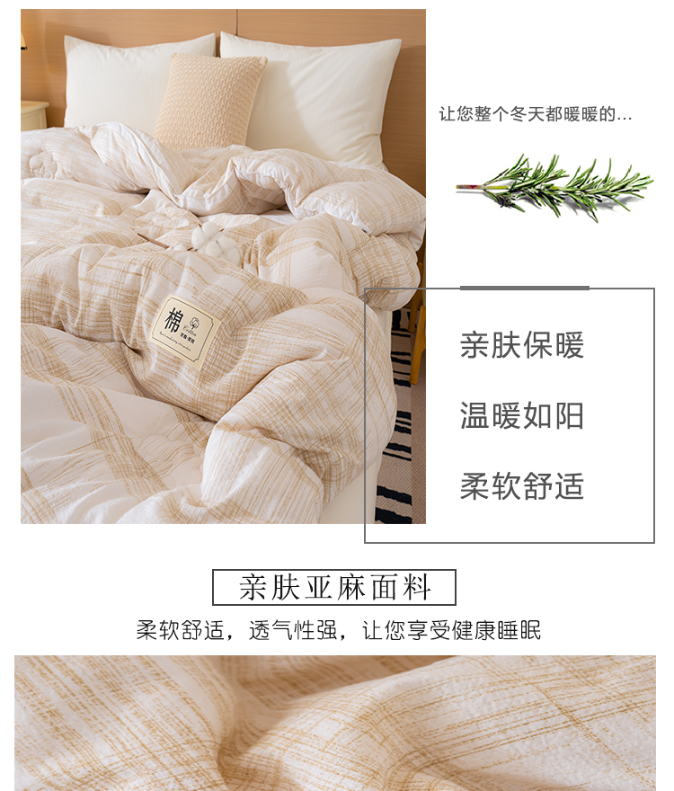 • 91家纺网 家纺一手货源 找家纺 蓝冰家纺 2025新款亚麻棉花冬被 浅灰格子