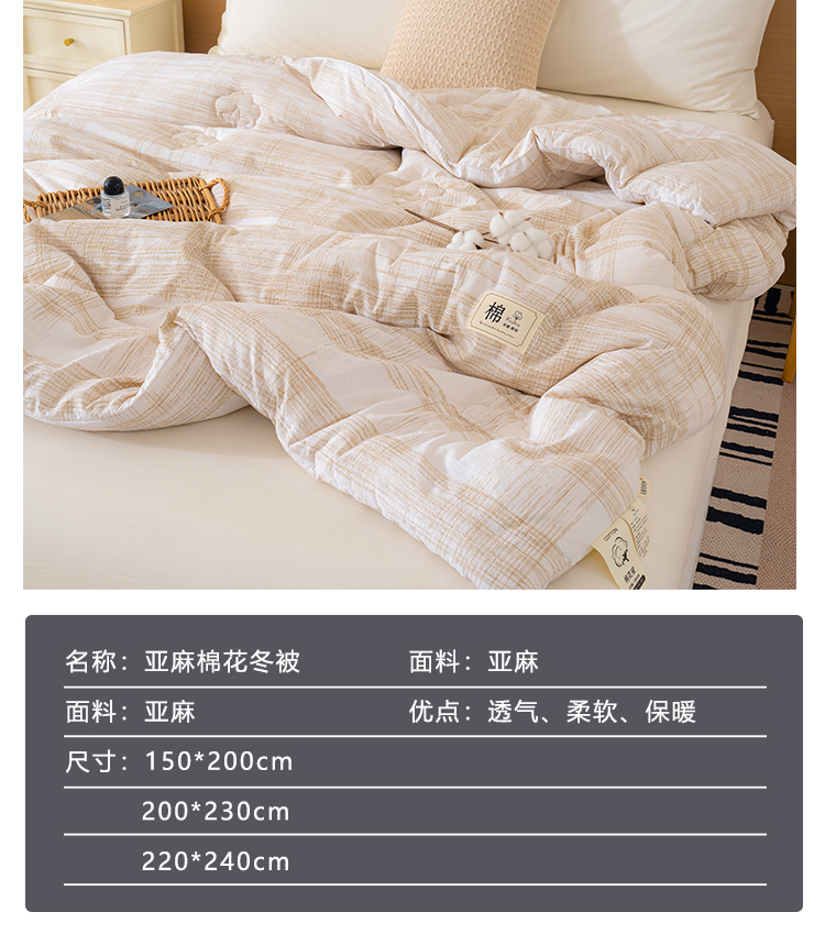当前位置: 91家纺网 > 商品网购 > 被子 > 冬被 > 蓝冰家纺 2025新款亚麻棉花冬被 浅灰格子