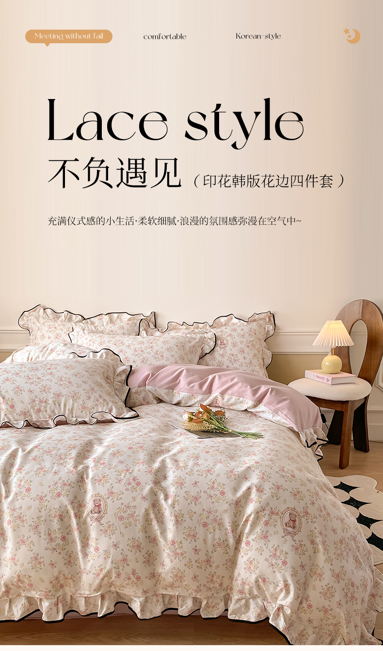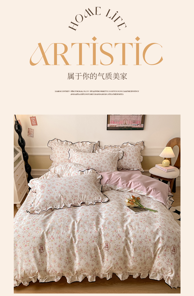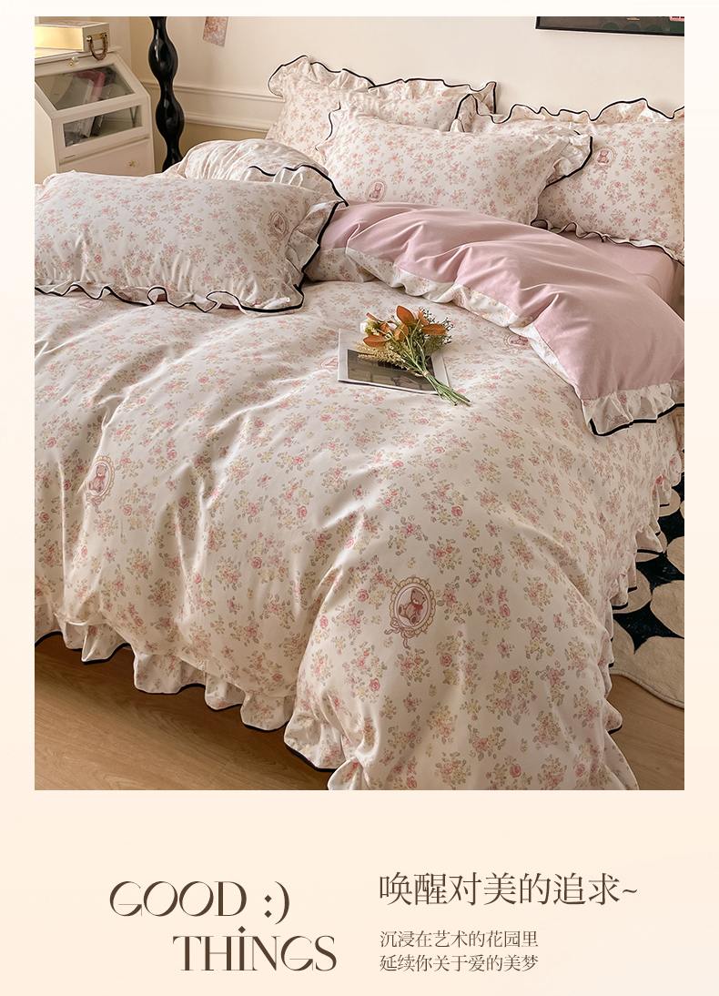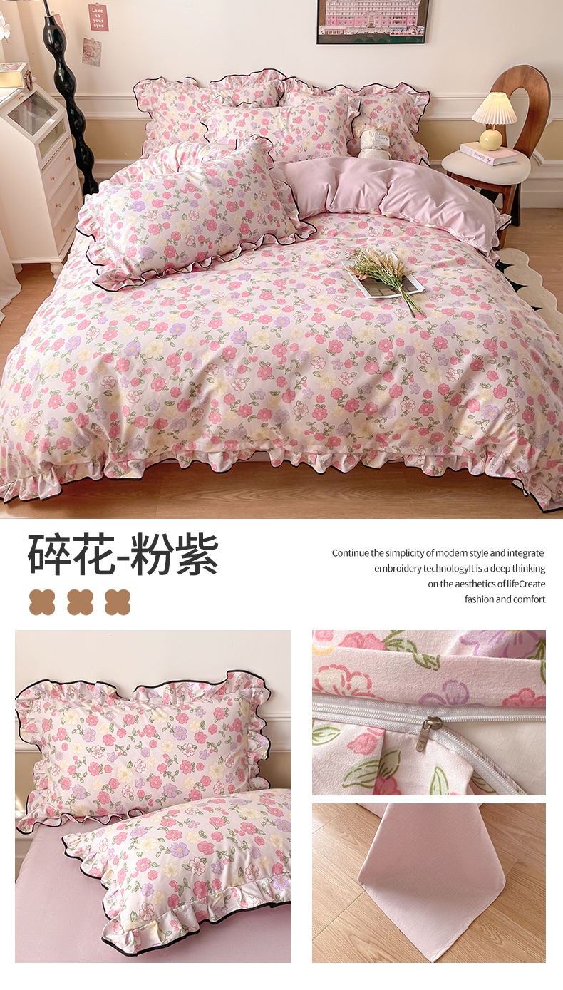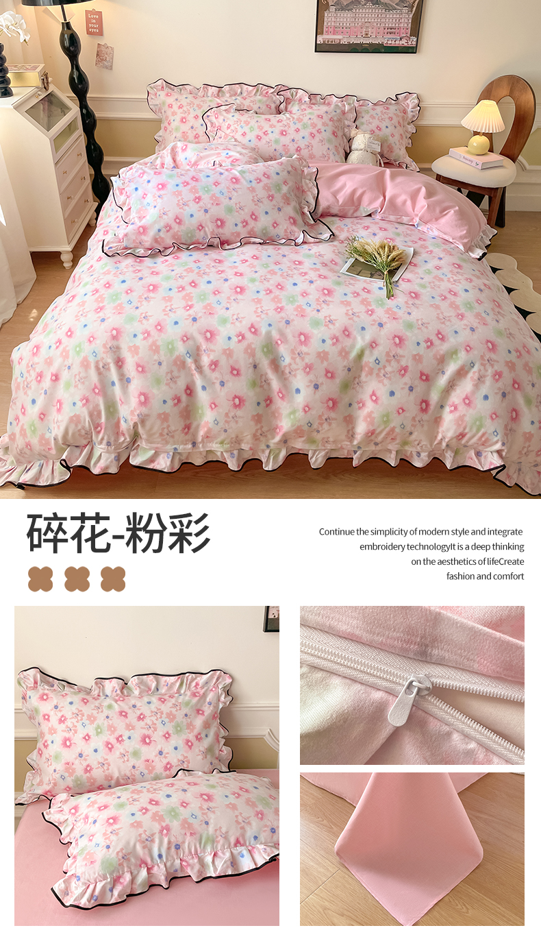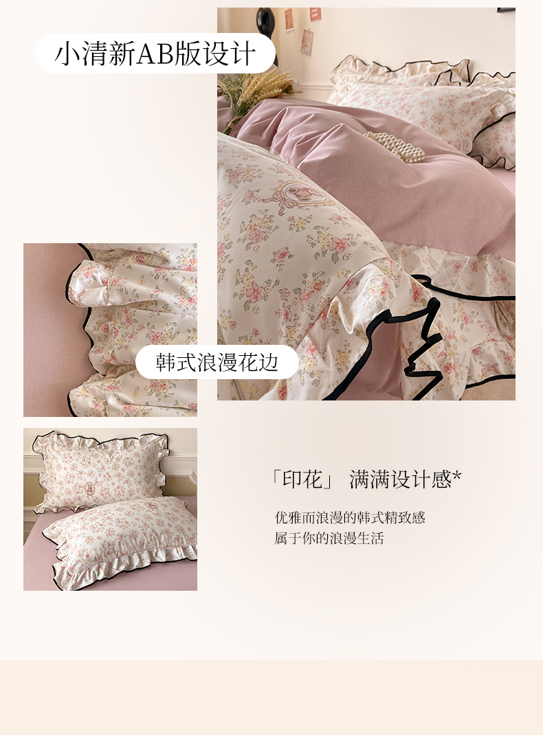 义博家纺 2025新款韩版花边印花四件套四件套 碎花-浅粉
