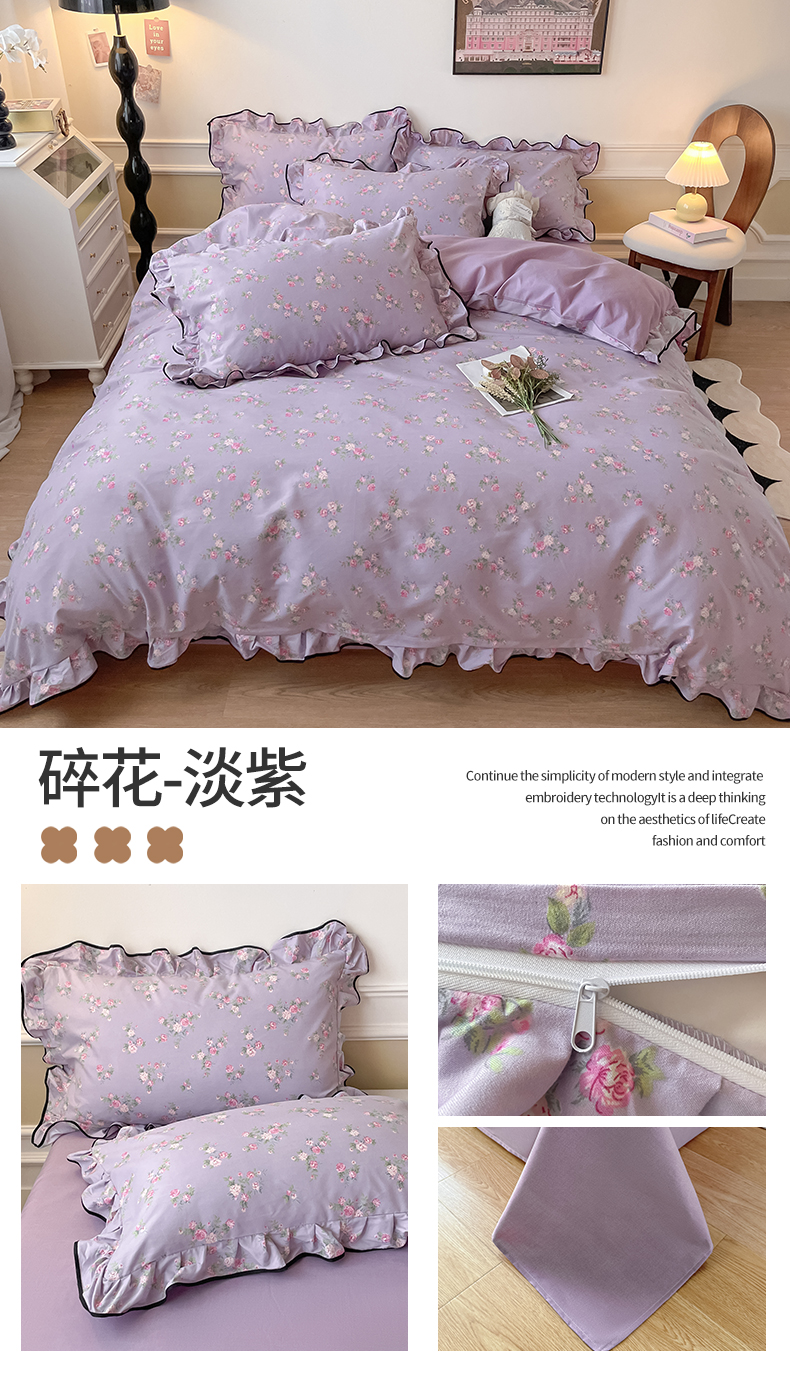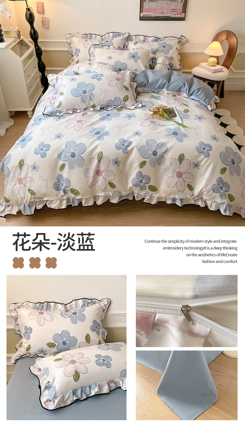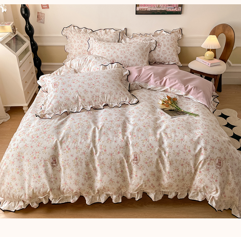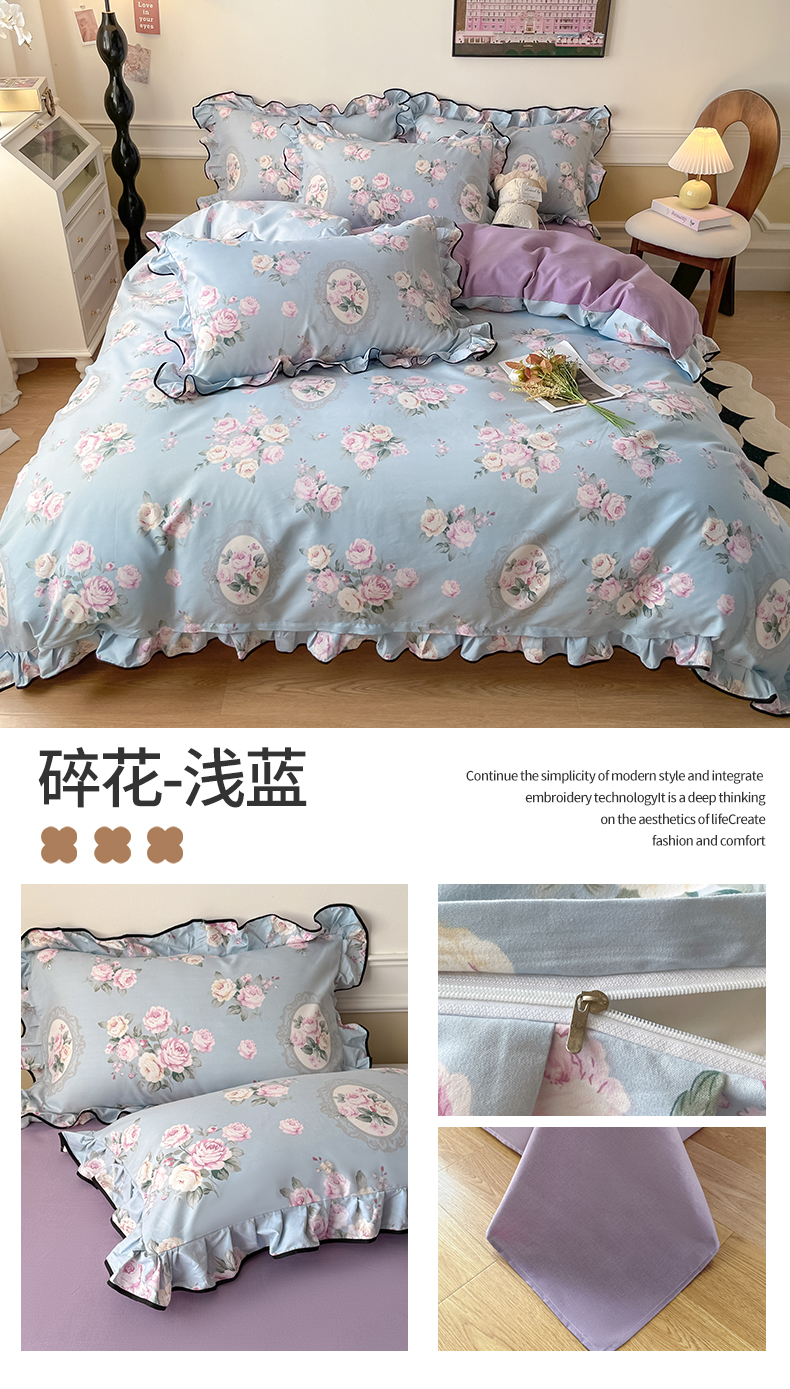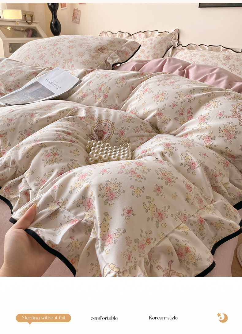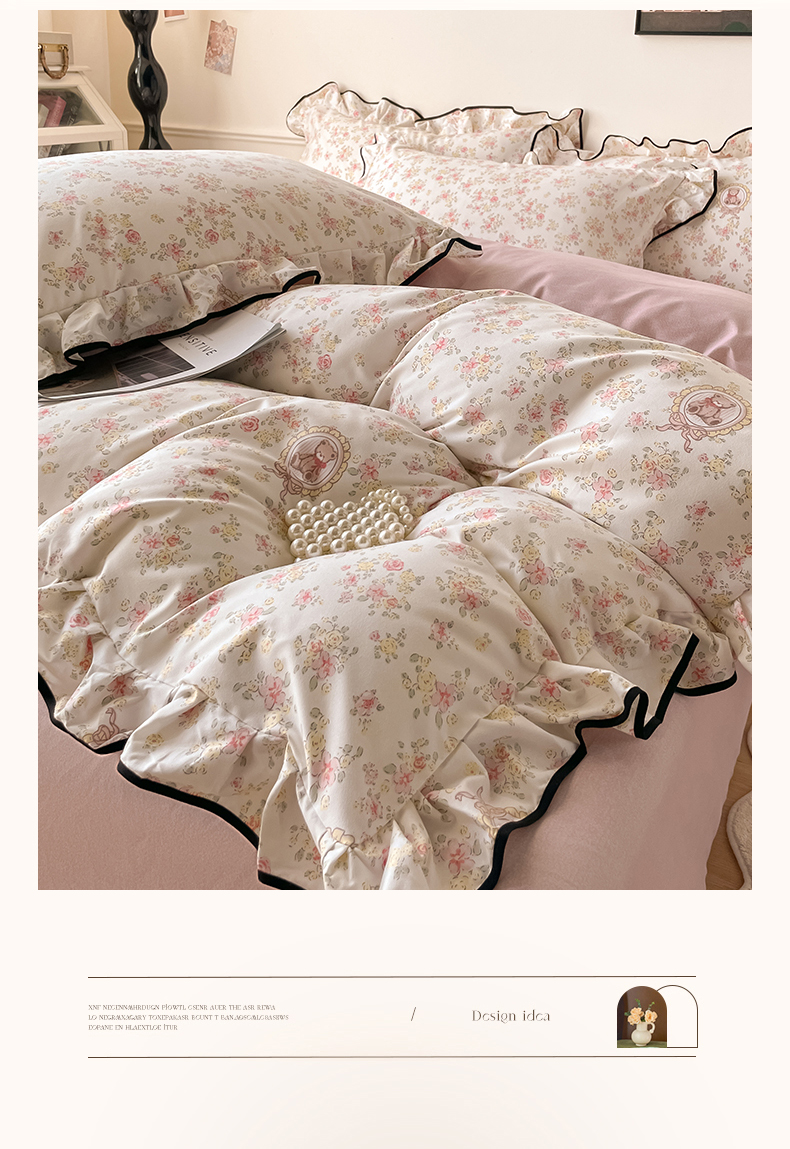 义博家纺 2025新款韩版花边印花四件套四件套 碎花-浅粉