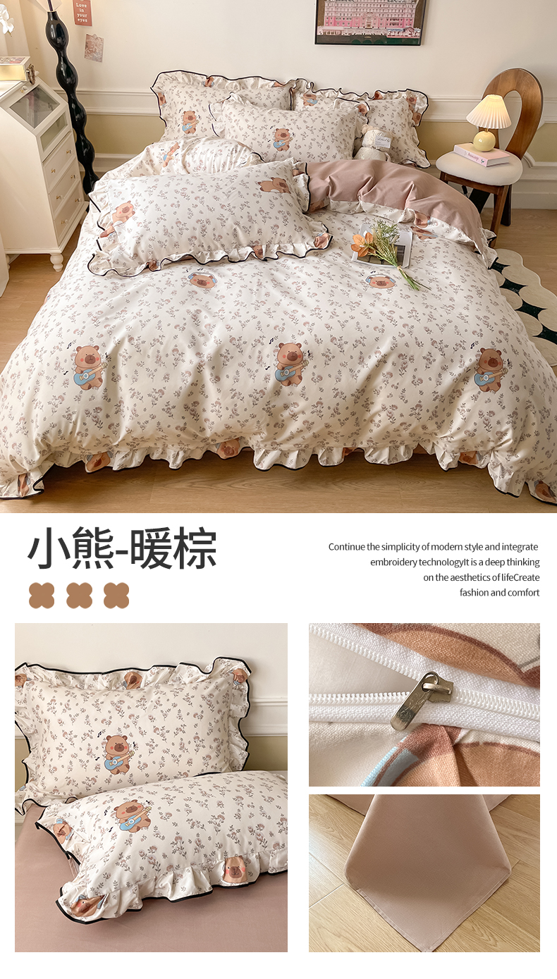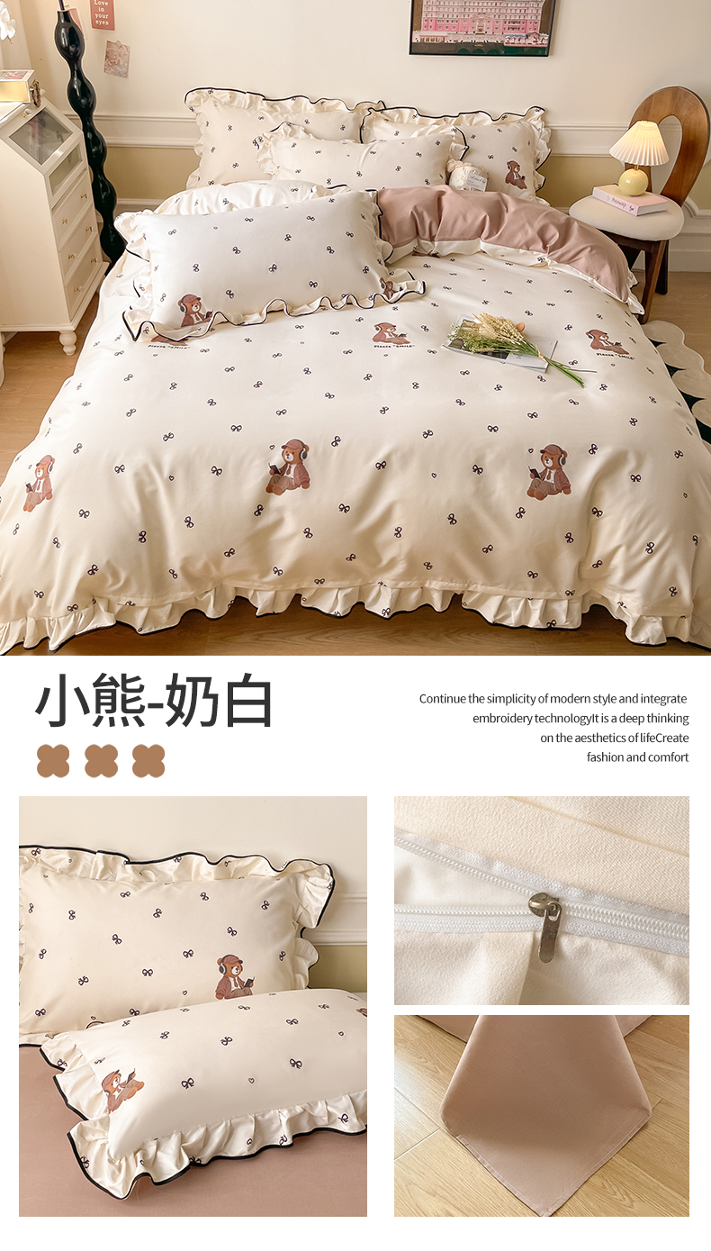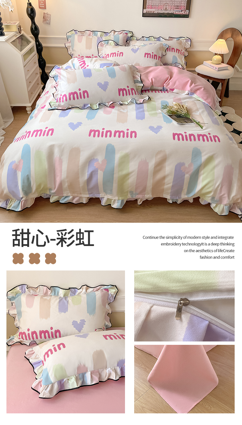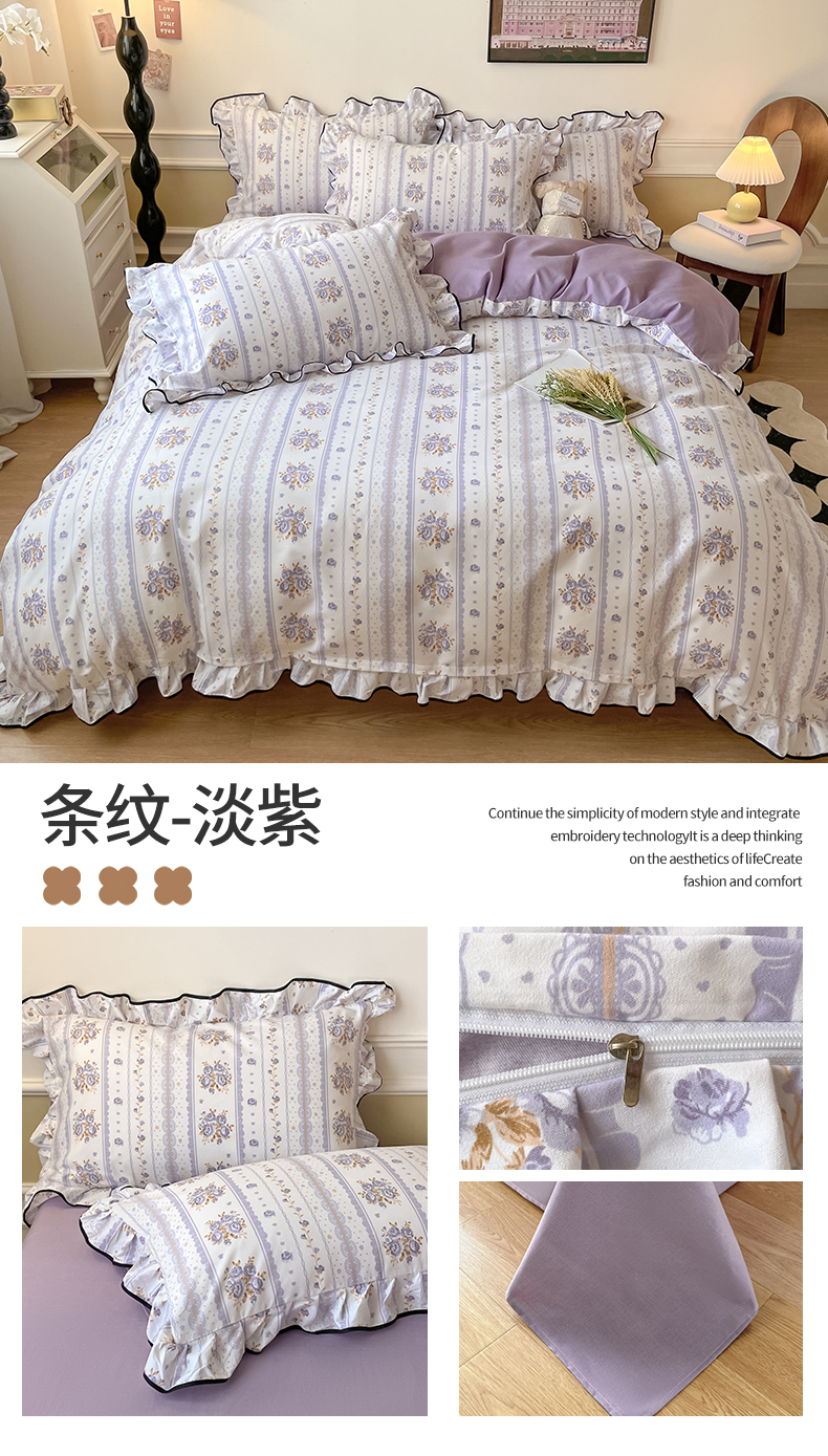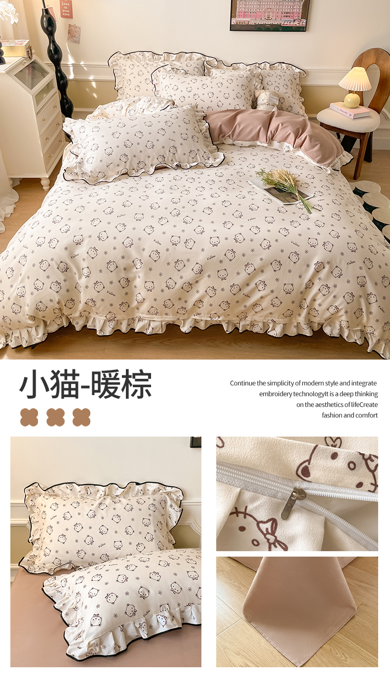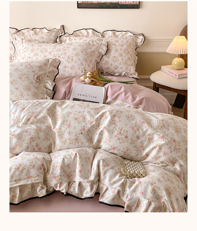 义博家纺 2025新款韩版花边印花四件套四件套 碎花-浅粉